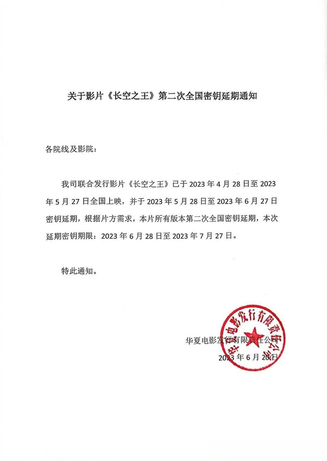 #长空之王密钥二次延期#电影《长空之王》密钥二次延期,延长上映至7月27日,据