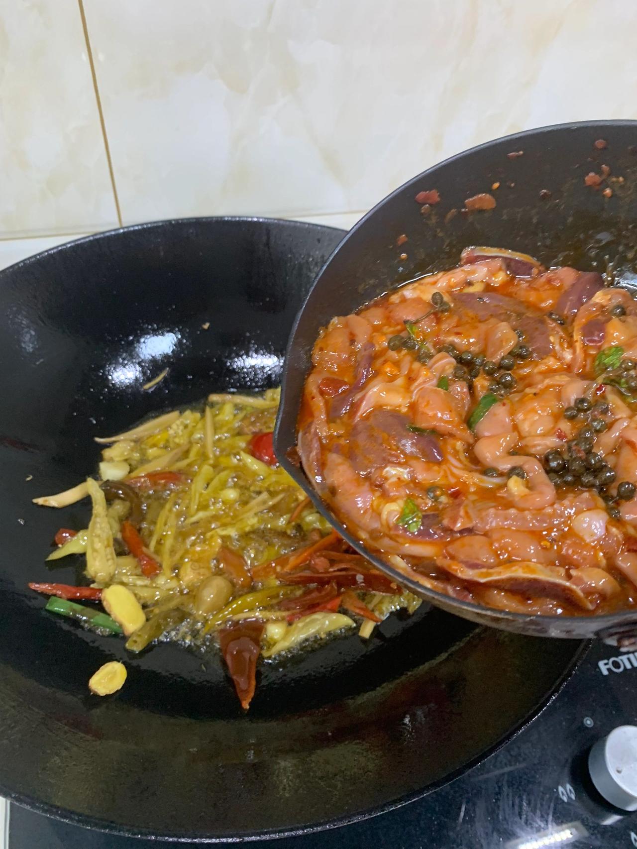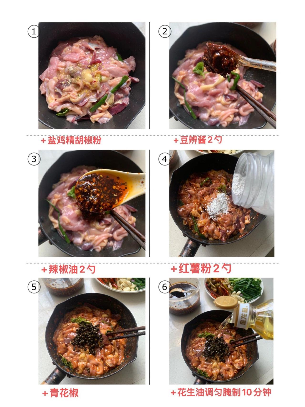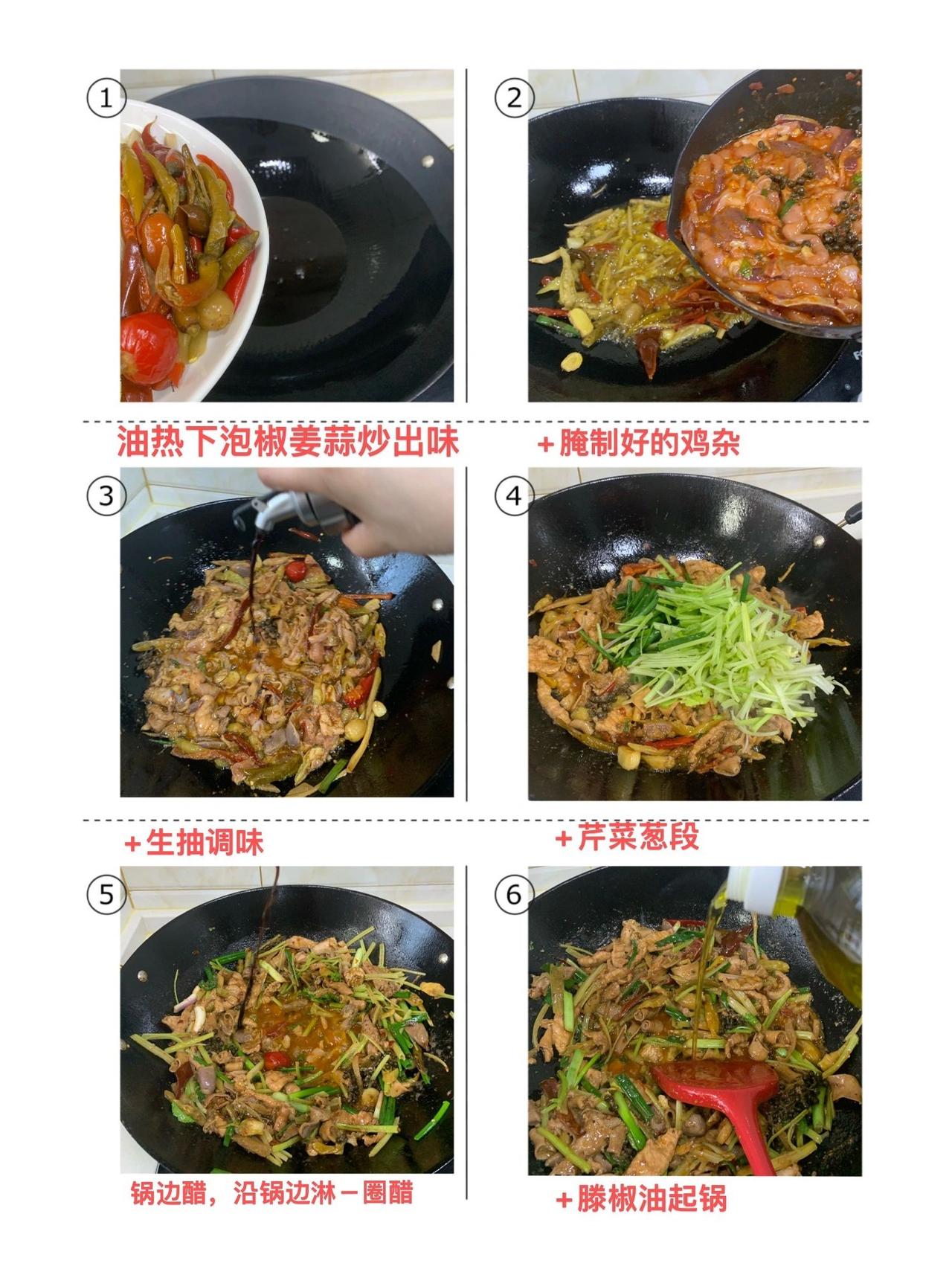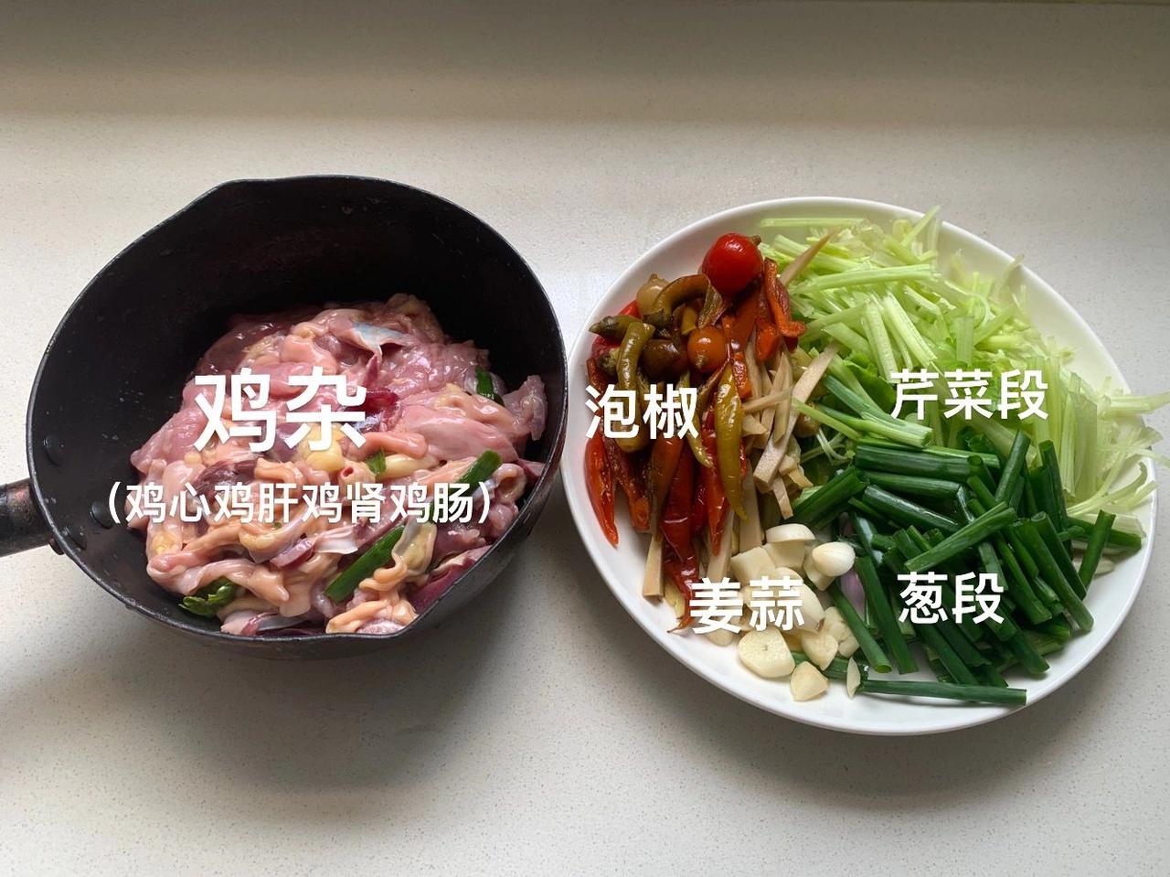 酸辣泡椒鸡杂,老妈做了30年的方法,快来学 小时候,人家都爱吃鸡,我就爱吃鸡杂,人家爱吃鱼,我爱吃鱼头。我是我们家老大,先天八字中土多(土对应脾胃)脾胃不好,加上是家里第一个孩子,奶奶走得早,父母没有喂养经验,导致脾胃更虚弱,我小时候吃花生瓜子都不消化,容易胃胀痛 所以老妈总是尽可能的做我喜欢的菜,每次家里杀鸡,老妈都会拿根筷子去河边翻鸡肠子。其实那会条件也不允许,但是老爸老妈已经给了我所有他们能给的爱,感恩父母!我现在也为人父母了,所以喜欢做饭,把这份简单的爱传承给我的孩子! 食材:鸡杂、泡椒、姜蒜、芹菜、葱段 做法: 1、鸡杂按图片详解腌制10分钟 2、多点油+姜蒜泡椒翻炒,多炒一会,炒出泡椒味 3、+腌好的鸡杂翻炒,+生抽调味(快手一点容易炒老) 4、芹菜葱段炒匀,淋上锅边醋 5、+藤椒油起锅 这个菜只要腌好了,基本不会失败。没有泡椒,泡野山椒也可以!