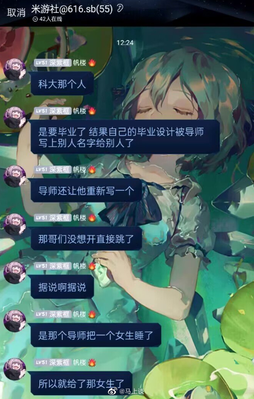 诶呀 4 2023-06-22 07:12 即使导师把科研成果送给企业(可能是卖给企业了),影响学生毕业论文的发表吗?阻碍学生毕业吗?——如果有,可以向教育部投诉。如果没有,为什么要自杀? 苹果树 回复 06-22 07:30 本科有个屁科研成果,论文连发表的要求都达不到