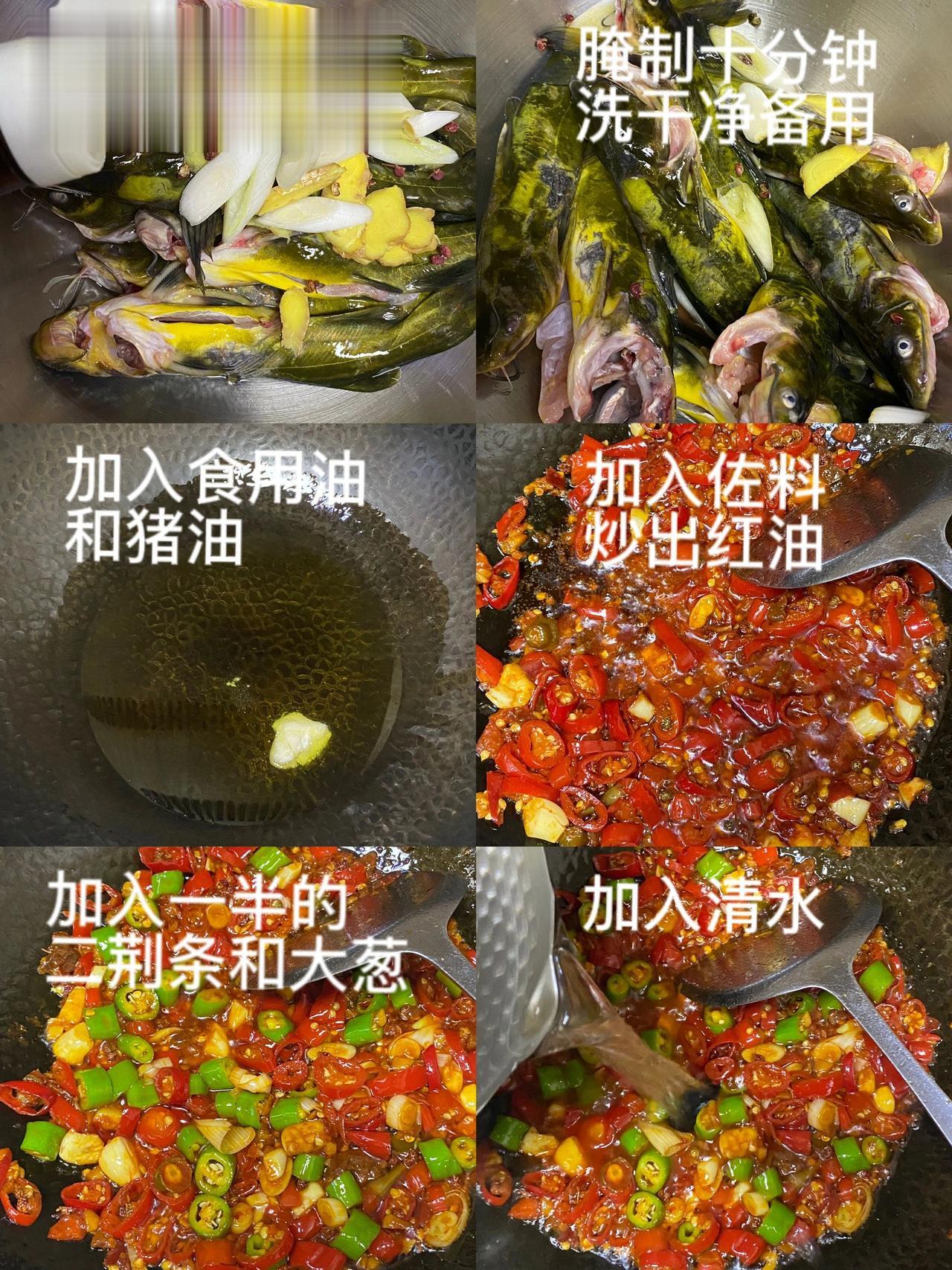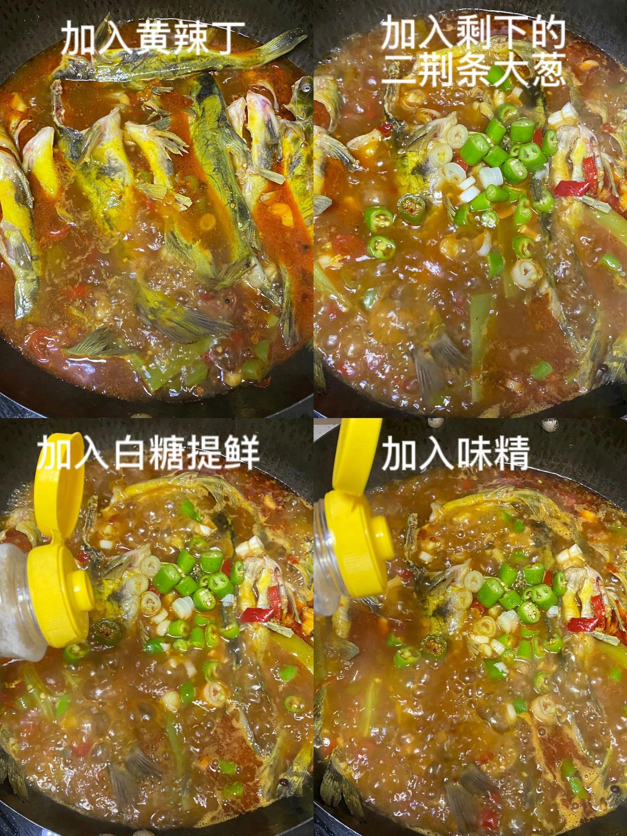 喜欢吃黄辣丁的朋友们一定要自己动手试试,自己做的真的超好吃,做法简单,喜欢吃鱼又害怕刺多的,黄辣丁再适合不过了,肉质也很嫩,吃不了重口的,可以做酸菜味的黄辣丁哟,也很好吃,都给我冲 泡椒黄辣丁小贴士:1、黄辣丁洗的时候要小心,头部有刺,注意别扎手 2、加入清水时估计可以没过鱼和蔬菜的量即可 3、一定要食用油➕猪油,混合油炒出来很香