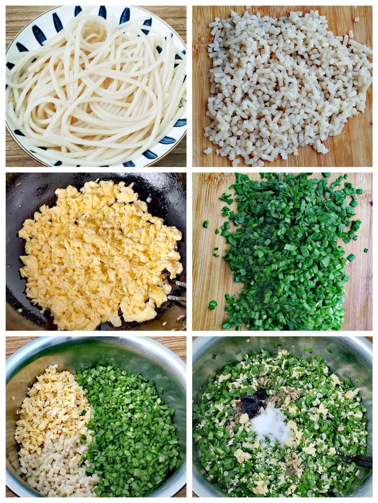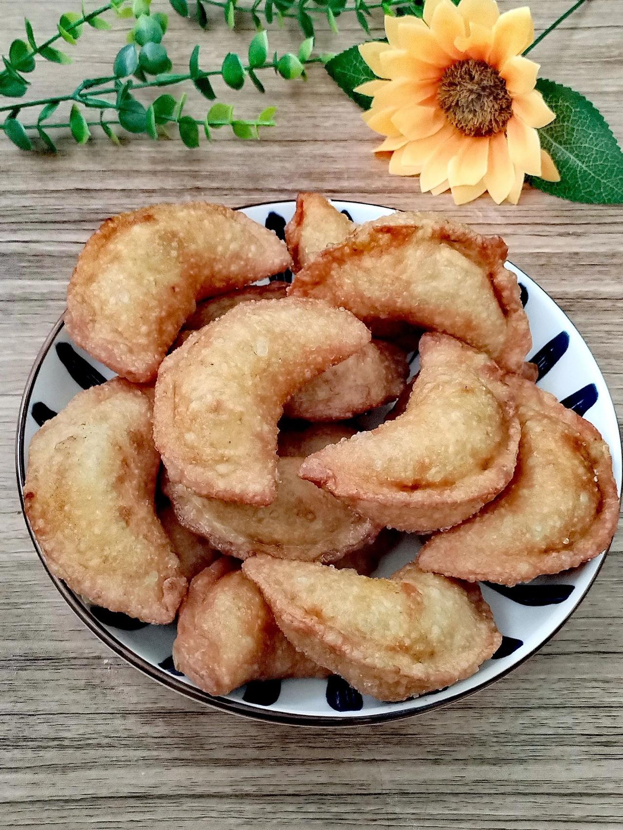 小时候的味道超级好吃,每年端午节妈妈都会做一大盆,一顿都要炫好几个 巨巨巨好吃,外皮酥脆,凉了也不硬 详细做法:1、需要500克面粉,用250ml热水烫其中三分之二的面,再倒入150ml温水边倒边搅拌,搅拌至无干面粉。加入15克的食用油,用手和成光滑的面团。让面团松弛半小时。 2、准备100克红薯粉条,用温水泡一个小时,沥干水分切碎。3、准备300克的韭菜洗净干净控水,切碎放入盘中待用。 4、碗中打入4个鸡蛋搅散,油热倒入锅中炒至金黄色的鸡蛋碎即可。 5、韭菜、粉条、鸡蛋均放入一个盆中,倒入适量的香油搅拌均匀。再放入20克的盐,一勺蚝油,适量的胡椒粉和鸡精。再次搅拌均匀即可。 6、将醒好的面团搓成长条,揪成核桃大小的面剂。整理一下擀成手掌大小的面皮即可包馅。 7、油温七成热,下入包好的菜角,中小火炸至两面金黄即可捞出。