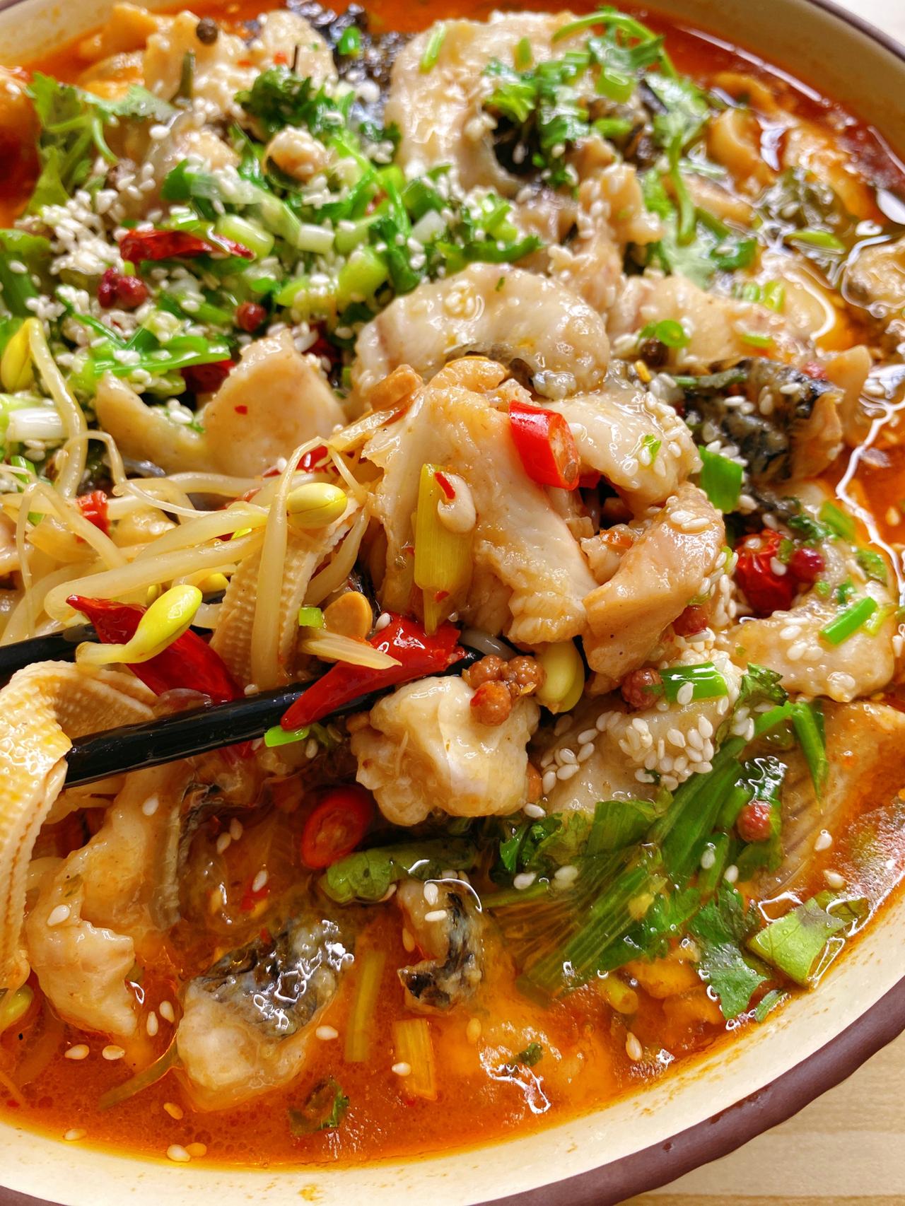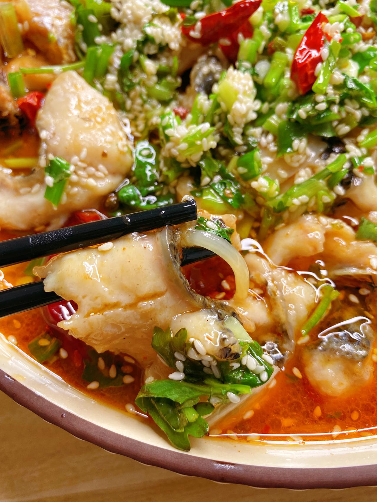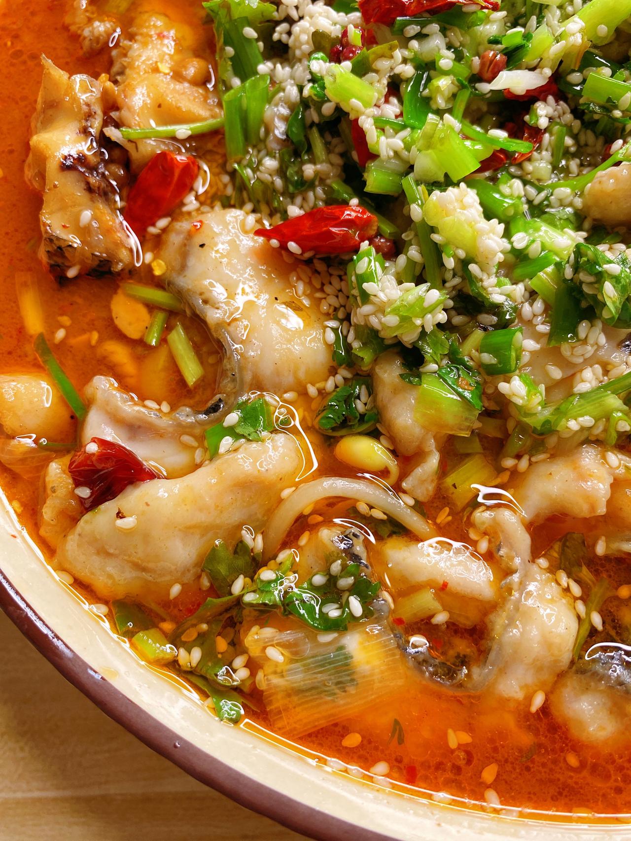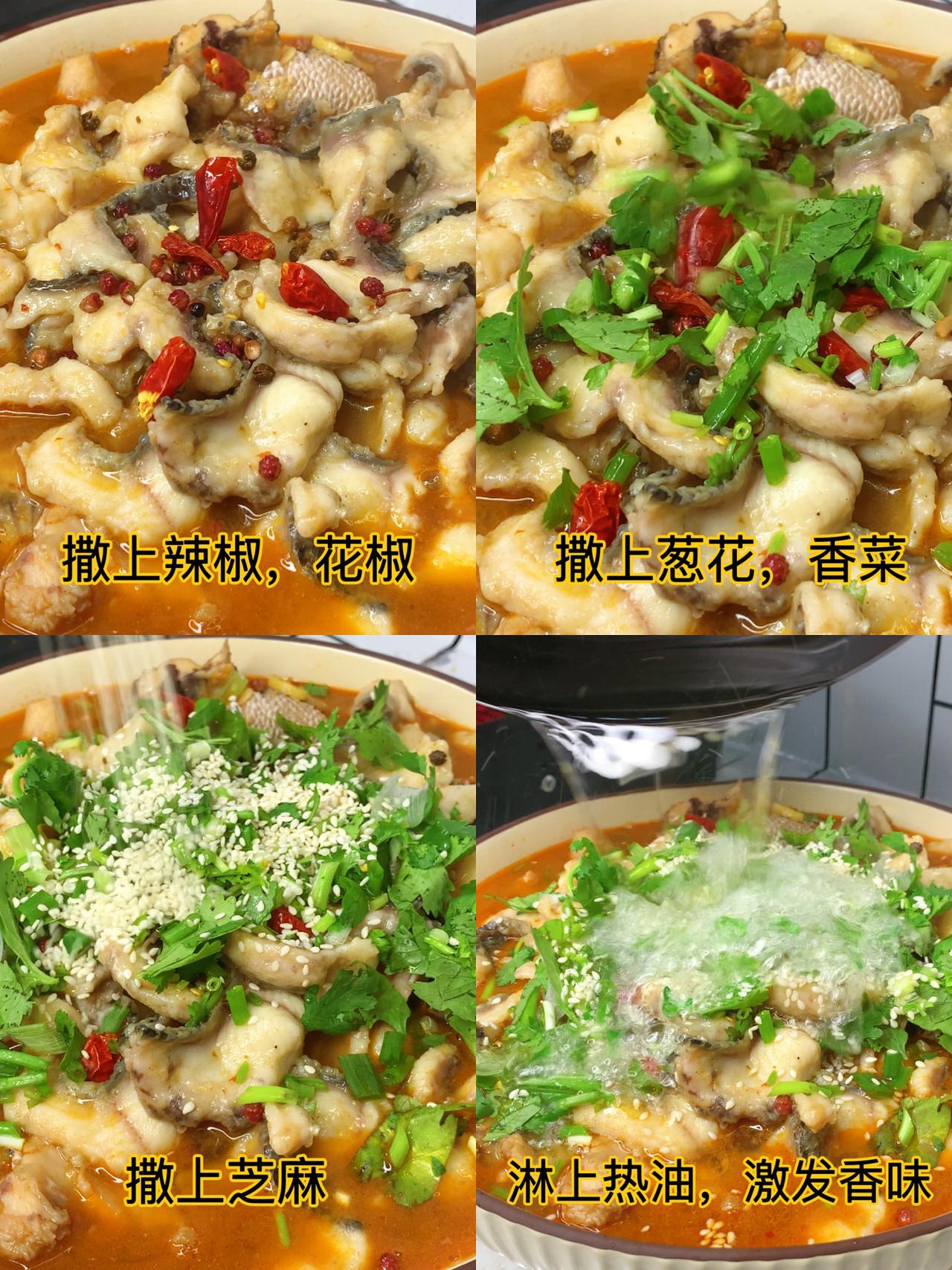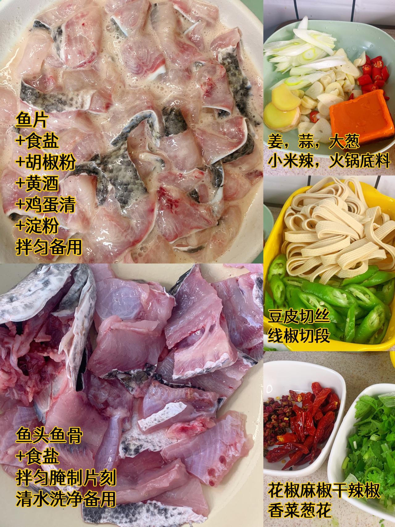 啊啊啊水煮鱼这样做真的巨好吃,麻辣鲜香 这么好吃的水煮鱼不会还有姐妹没吃过吧,真的巨巨巨好吃,迫不及待分享给大家 食材:黑鱼一条,或者直接用黑鱼片,豆芽,豆皮,葱姜蒜,香菜,线椒。 腌鱼片调料:胡椒粉少许,2勺料酒或黄酒,2勺淀粉,一个鸡蛋清。 汤底调料:花椒或麻椒1勺,火锅底料一块,干辣椒十几个,一小撮葱段,2勺生抽,几片姜,1小勺胡椒粉,适量盐 制作步骤:1、鱼片加入2勺淀粉+2勺料酒+1个鸡蛋清+1勺盐,揉捏抓匀,直到出鱼的胶质,腌制大约20分钟 2、姜蒜葱切末,干辣椒切段 热锅油温五成,加入葱姜蒜末和一半的花椒煸炒,再加入火锅底料炒出红油,再加入沥干水分的鱼头鱼骨翻炒(没有的就直接加入开水),加2勺生抽,加小半勺盐煮开 3、将豆皮,豆芽和线椒段放入锅中,烫熟后捞出铺在盘底 4、锅中加入鱼片,轻轻搅散,烫熟后倒入盘中。 5、鱼片上撒上葱末,花椒,香菜,白芝麻,辣椒段 6、起锅烧热油淋入盘中 水煮鱼这样做真的巨好吃,鲜香麻辣,鱼肉嫩滑,而且做起来也简单
