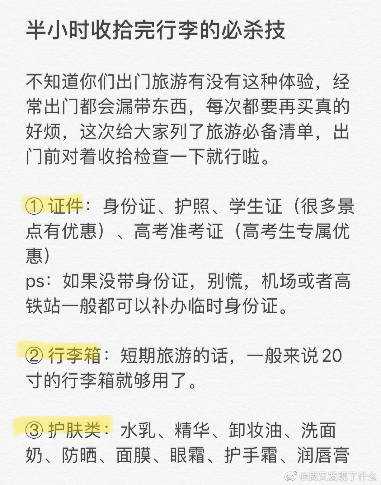 半小时收拾完行李的清单,再也不怕漏东西了。