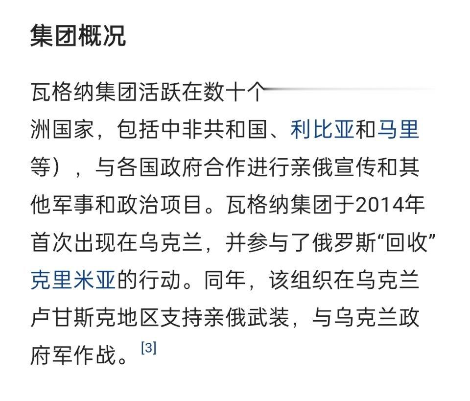 瓦格纳集团(PMC Wagner),是俄罗斯国内的私人 军事公司,创始人为俄罗斯著名商人叶夫根尼·普里戈任,军事首领为乌特金。