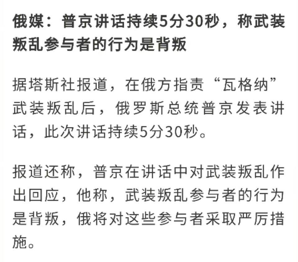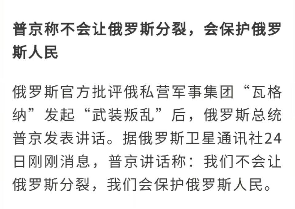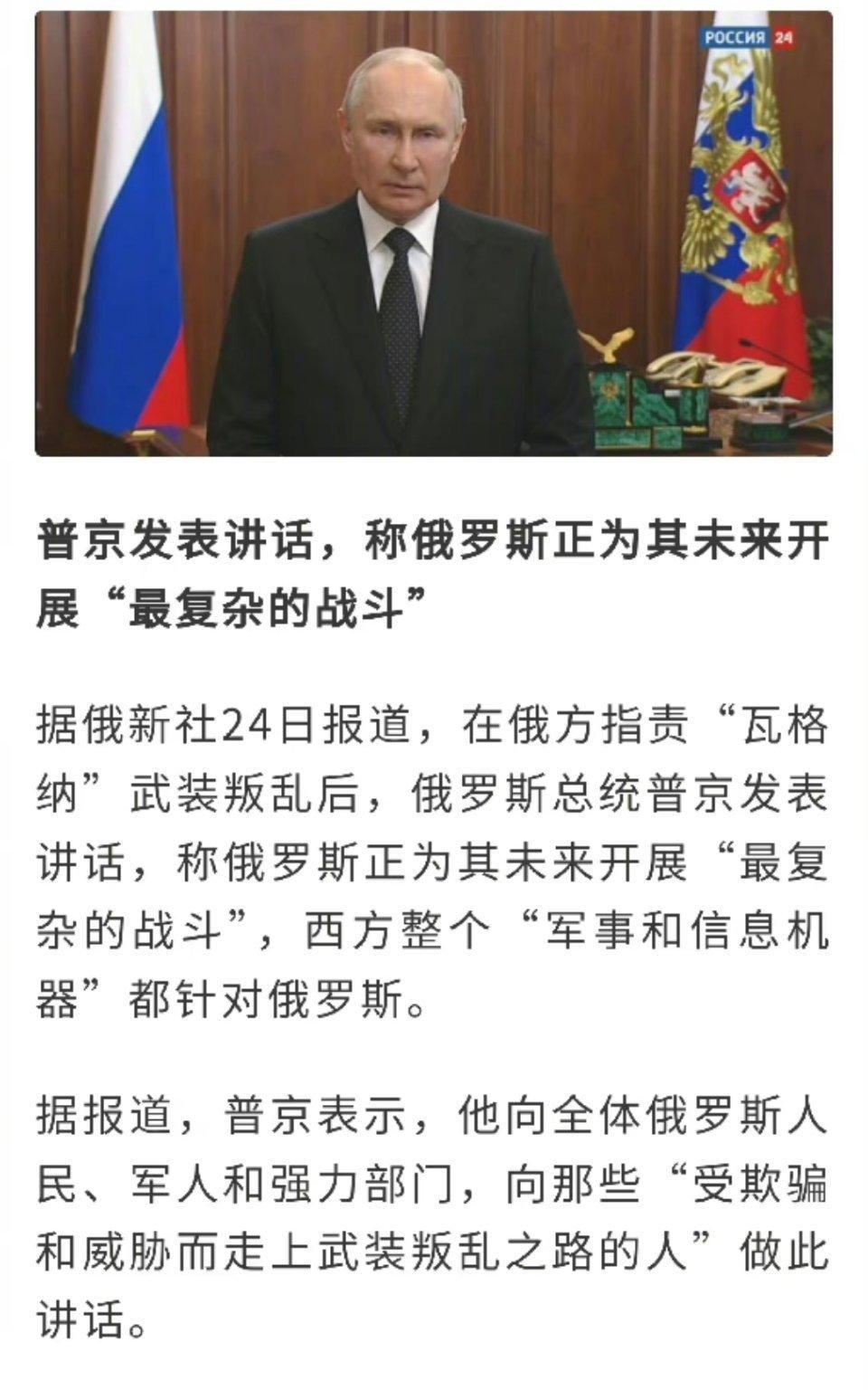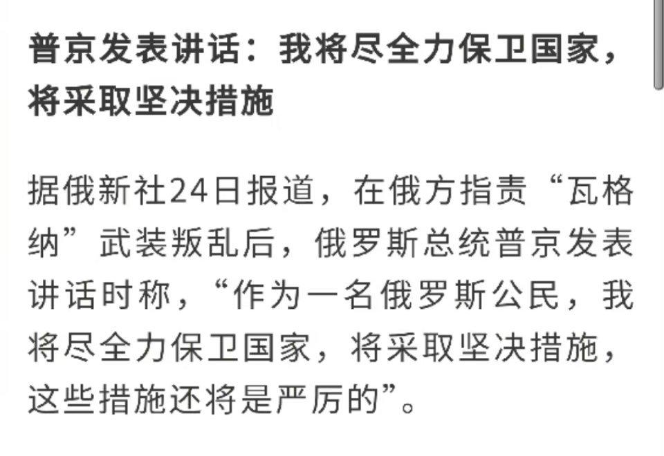 #普京指责瓦格纳负责人叛国#普京发表讲话,说了很多,谁也没想到乌克兰还没拿下,俄罗斯先内乱了,如今俄方真的是内忧外乱,是不是俄乌战争会迅速结束?另外,俄方还是得注意车臣方面…