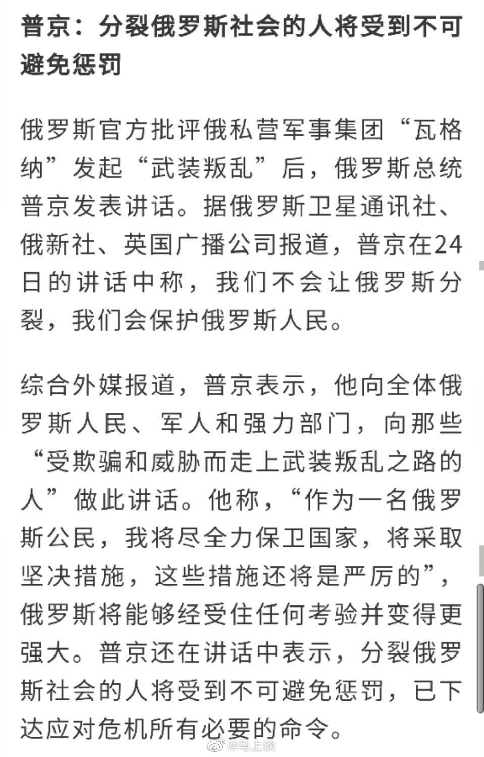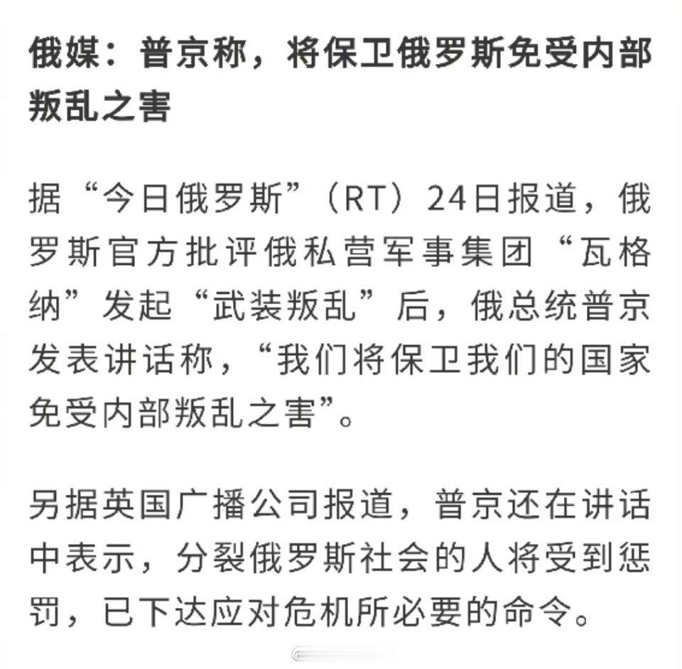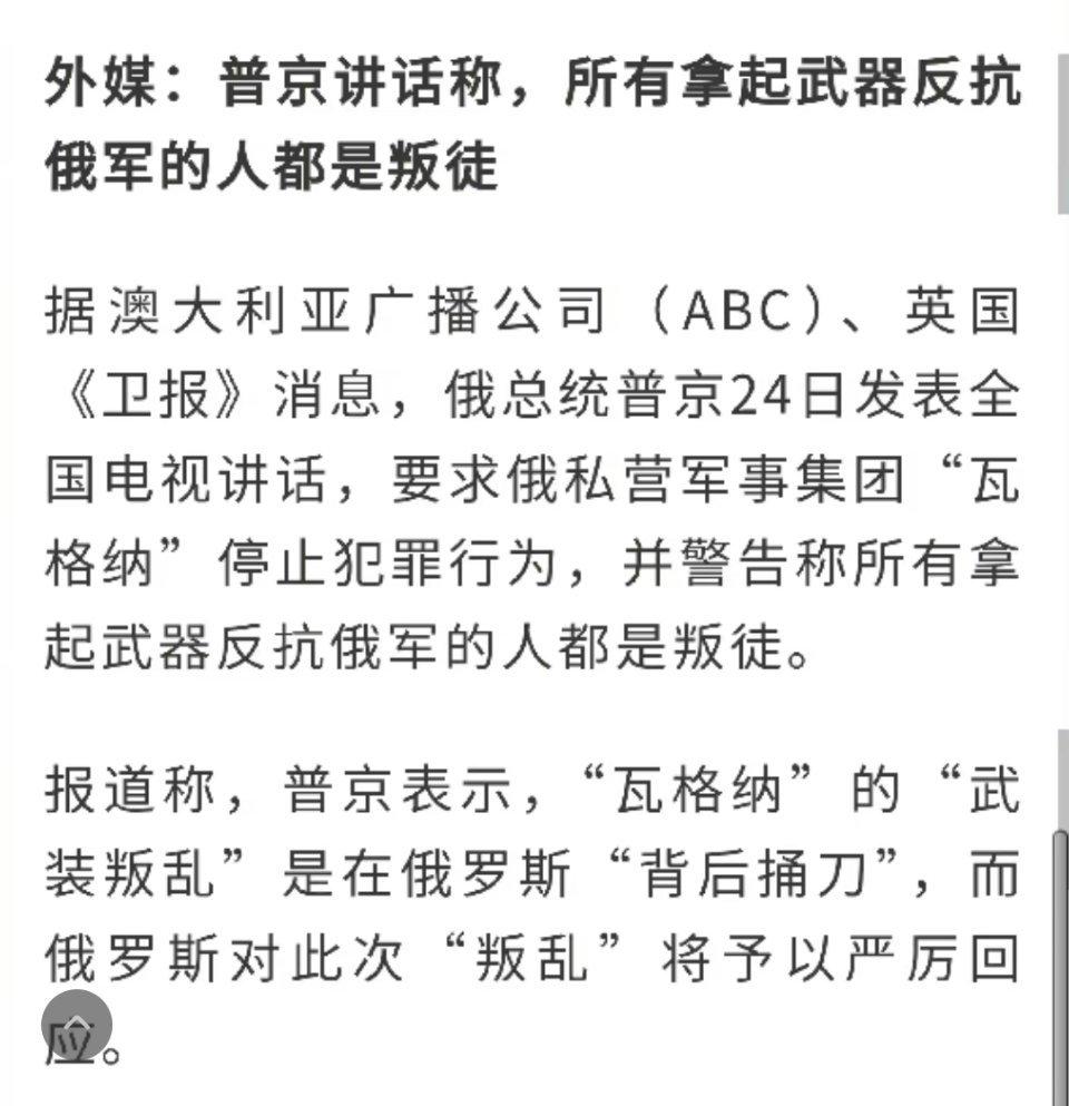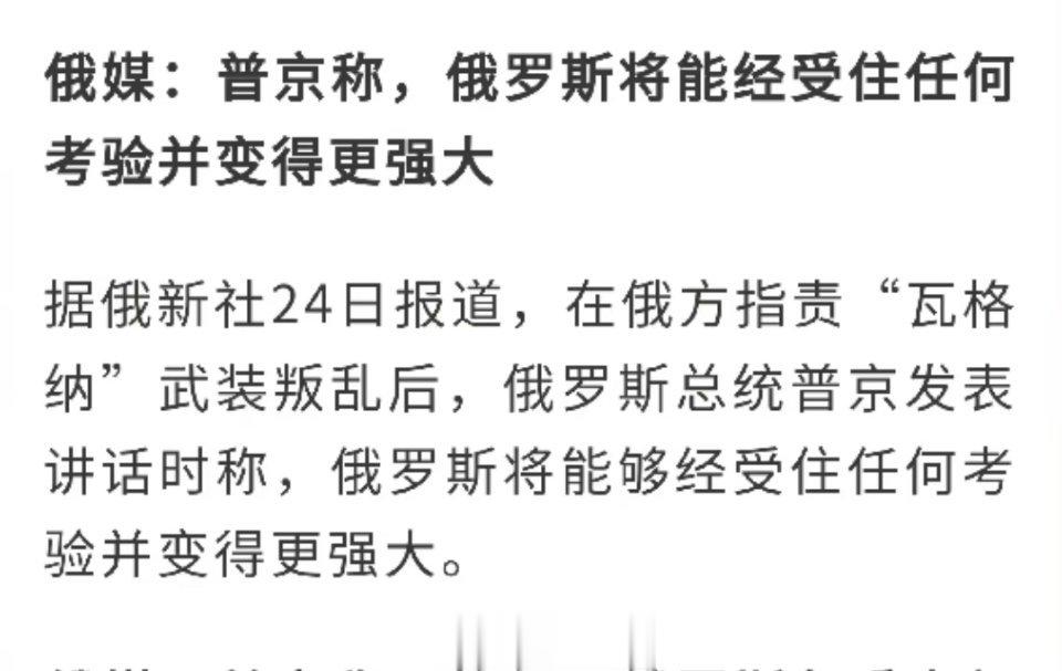 #普京指责瓦格纳负责人叛国#普京发表讲话,说了很多,谁也没想到乌克兰还没拿下,俄罗斯先内乱了,如今俄方真的是内忧外乱,是不是俄乌战争会迅速结束?另外,俄方还是得注意车臣方面…
