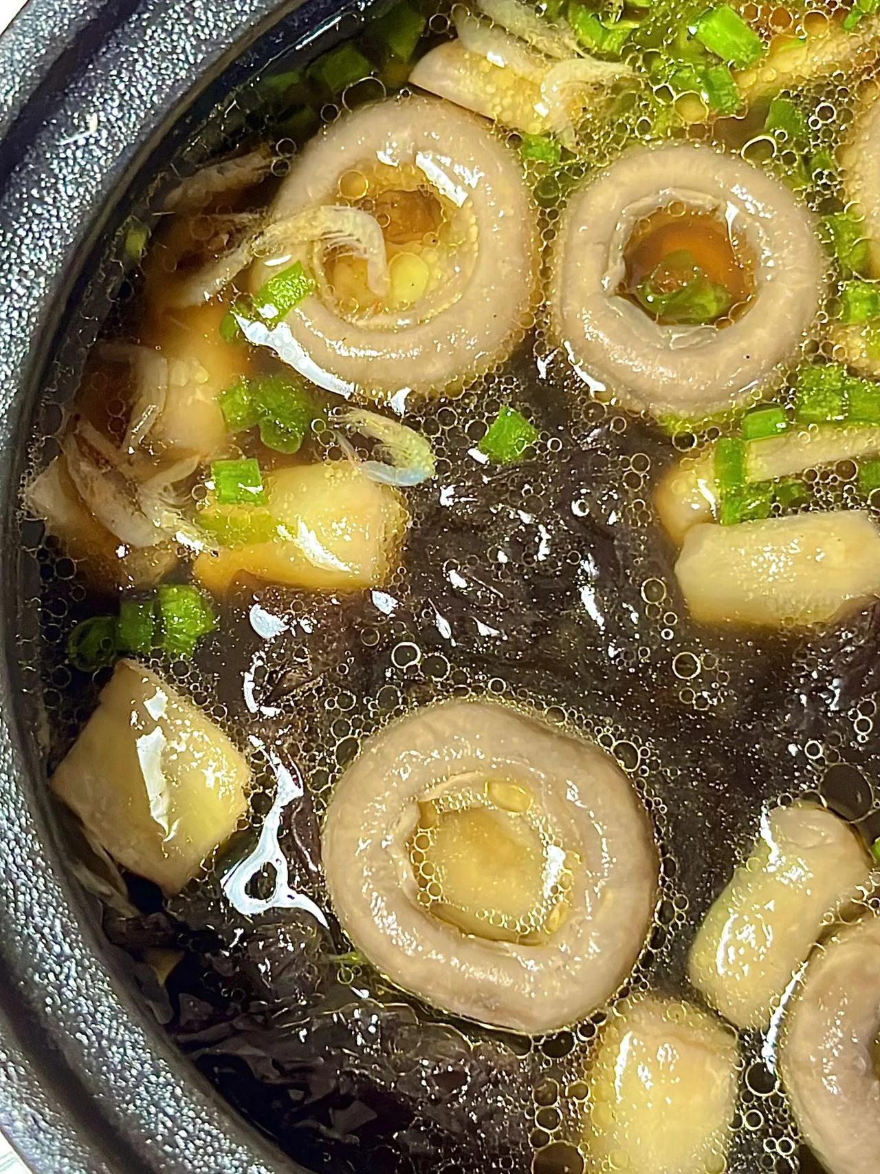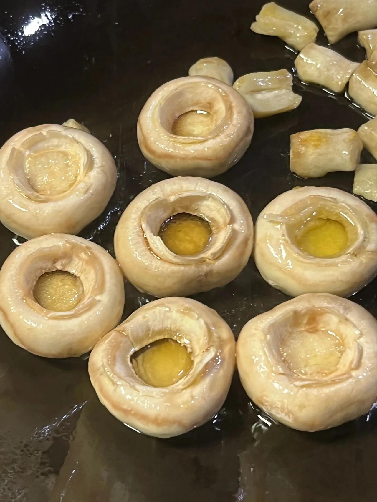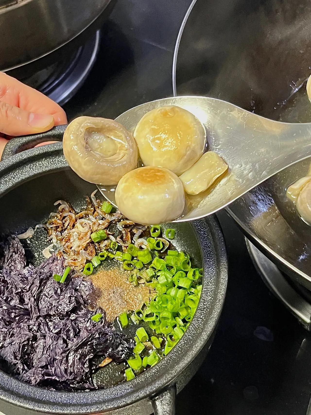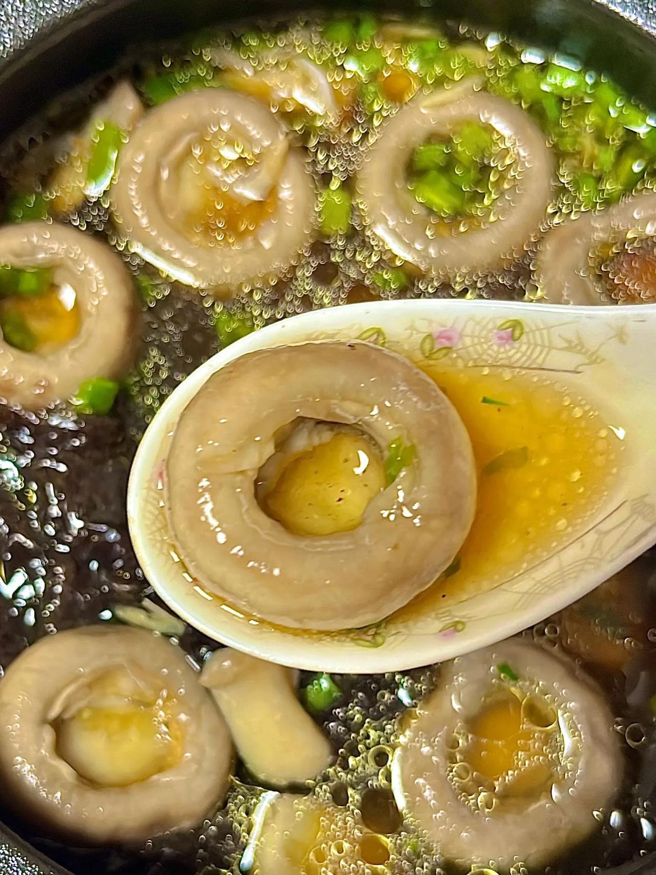 今天喝口蘑紫菜汤,太鲜了! 做法: 1、碗里放紫菜、虾皮、葱花儿、香油、生抽、白胡椒和少许盐; 2、把口蘑口朝上煎出汁水,再加一碗水烧开盛到碗里即可。