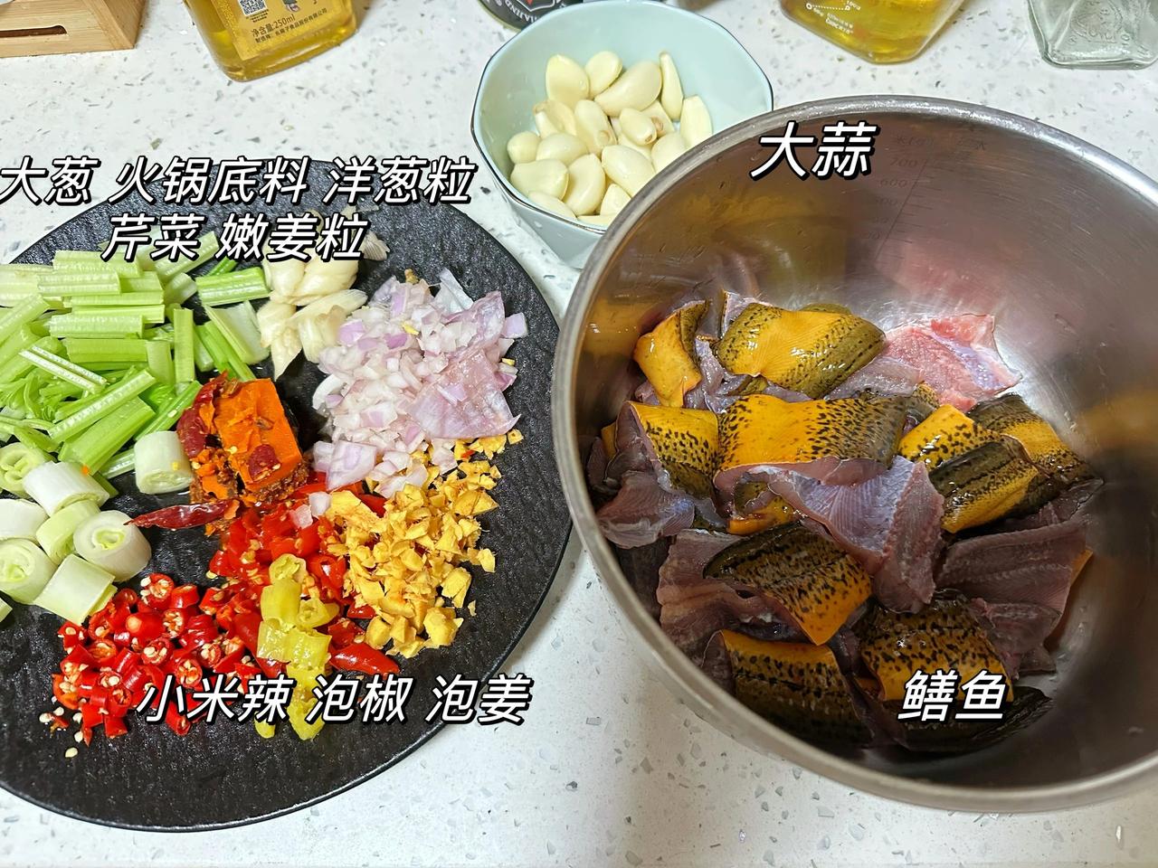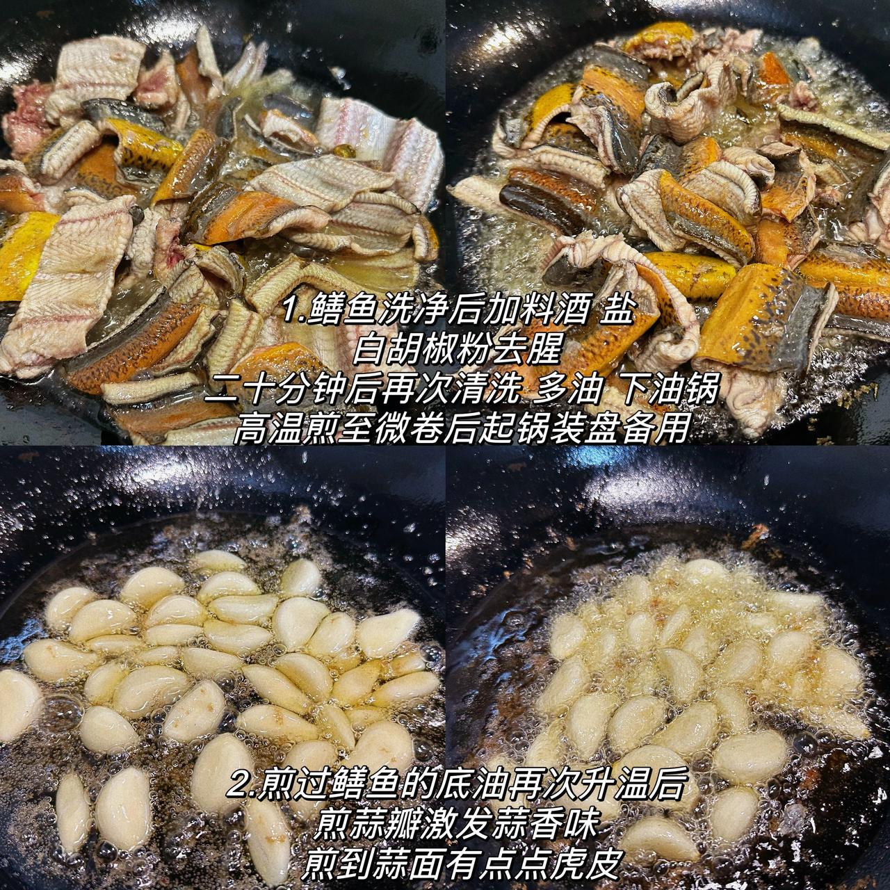 大蒜烧鳝鱼 还以为很难吗!No! 超爱吃鳝鱼,但是很少做,这次回老家买了些土鳝鱼,做一个简单的家常版大蒜烧黄鳝吧 我们老家那边一般是用大蒜青豌豆来烧鳝鱼,或者大蒜莴笋烧鳝鱼,今天都没有这些配料,那就用大蒜和芹菜来做吧~做法一样 换菜不换方法 鳝鱼非常有营养,然后夏天又是非常适合吃大蒜,所以大蒜烧鳝鱼这道菜一定要学起来~