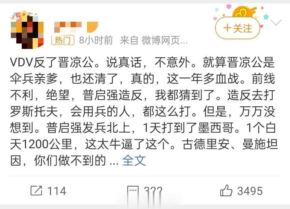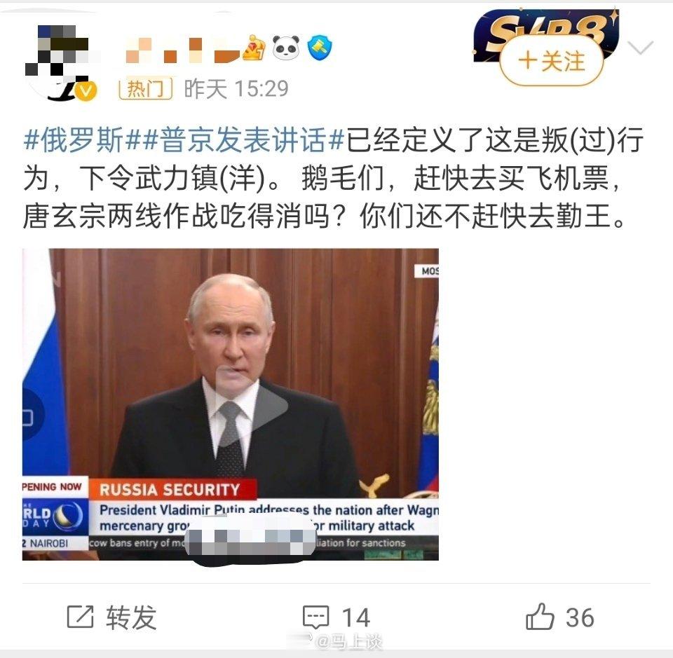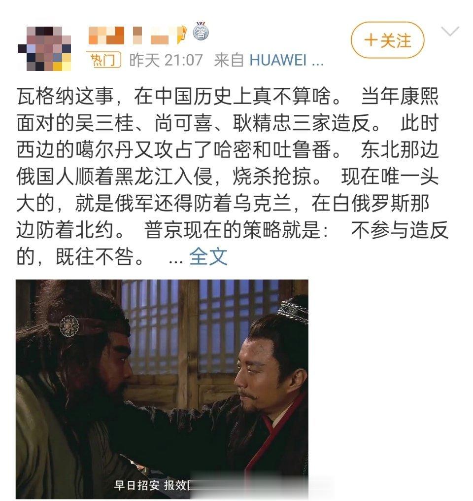 短短24小时,普京已经当了晋凉公、唐玄宗、梁武帝、建文帝、康熙…普里戈任也当了一回安禄山史思明、侯景、朱棣、吴三桂…西方间谍翻看着中国社交平台热帖,不断感叹中国历史博大精深…😋