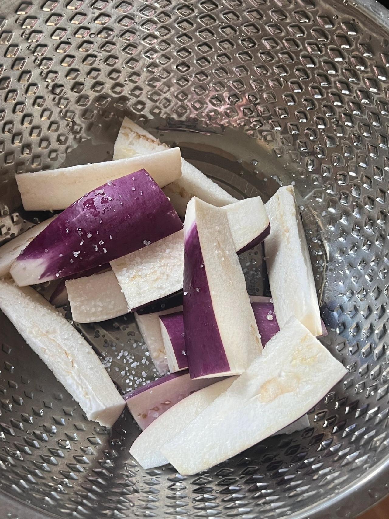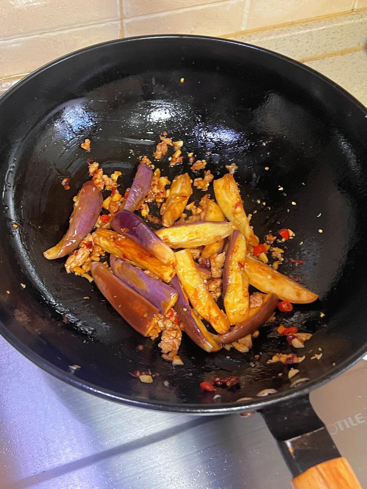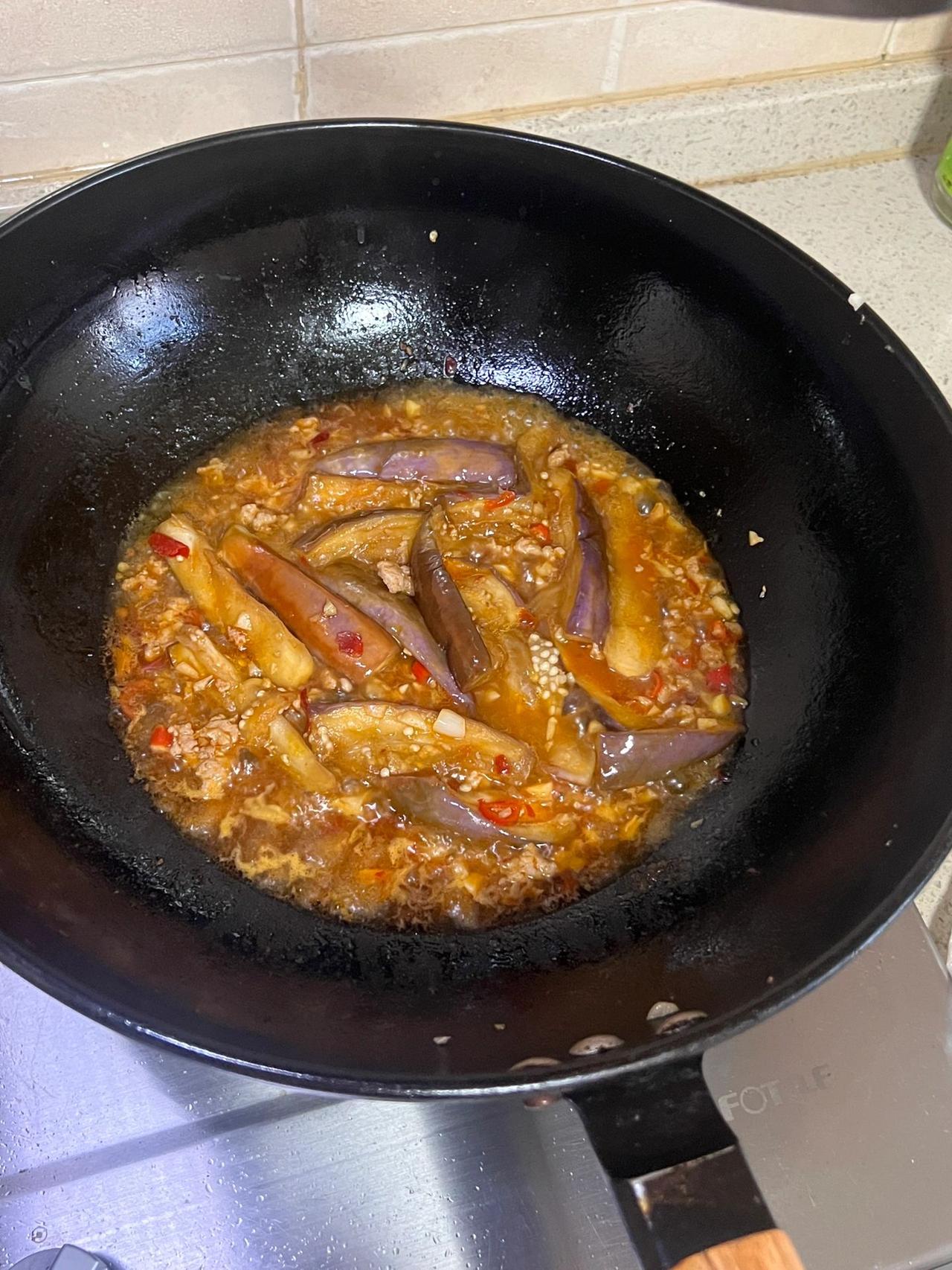 肉末茄子这样做也太费米饭太好吃了 夏天一到,餐桌上瓜果蔬菜全来啦,今天给大家分享一道应季的茄子做法,香香辣辣,真的太费米饭啦 所需材料:茄子、大蒜、小米辣、肉末、郫县豆瓣酱 做法如下:1、茄子洗净切段,放入盆中撒上少许盐腌出水分后沥干备用。小米辣和大蒜切碎备用,再准备点肉末。 2、起锅烧油先开小火把肉末的油脂煸炒出来,炒到肉末变色后倒入小米辣、大蒜和茄子改中火一起翻炒。 3、炒到茄子稍稍变软后,改小火加入适量郫县豆瓣酱炒出红油,让每一根茄子充分裹匀酱料。 4、加入纯净水与茄子齐平,开中火让汤汁煮2-3分钟后再添入适量的蚝油和白糖提鲜,最后改大火收汁,起锅装盘,一道香香辣辣的的肉末茄子就做好了。 做法是不是超级简单,这样做出来的肉末茄子至少是是三碗饭打底呀,记得收藏起来试试哦