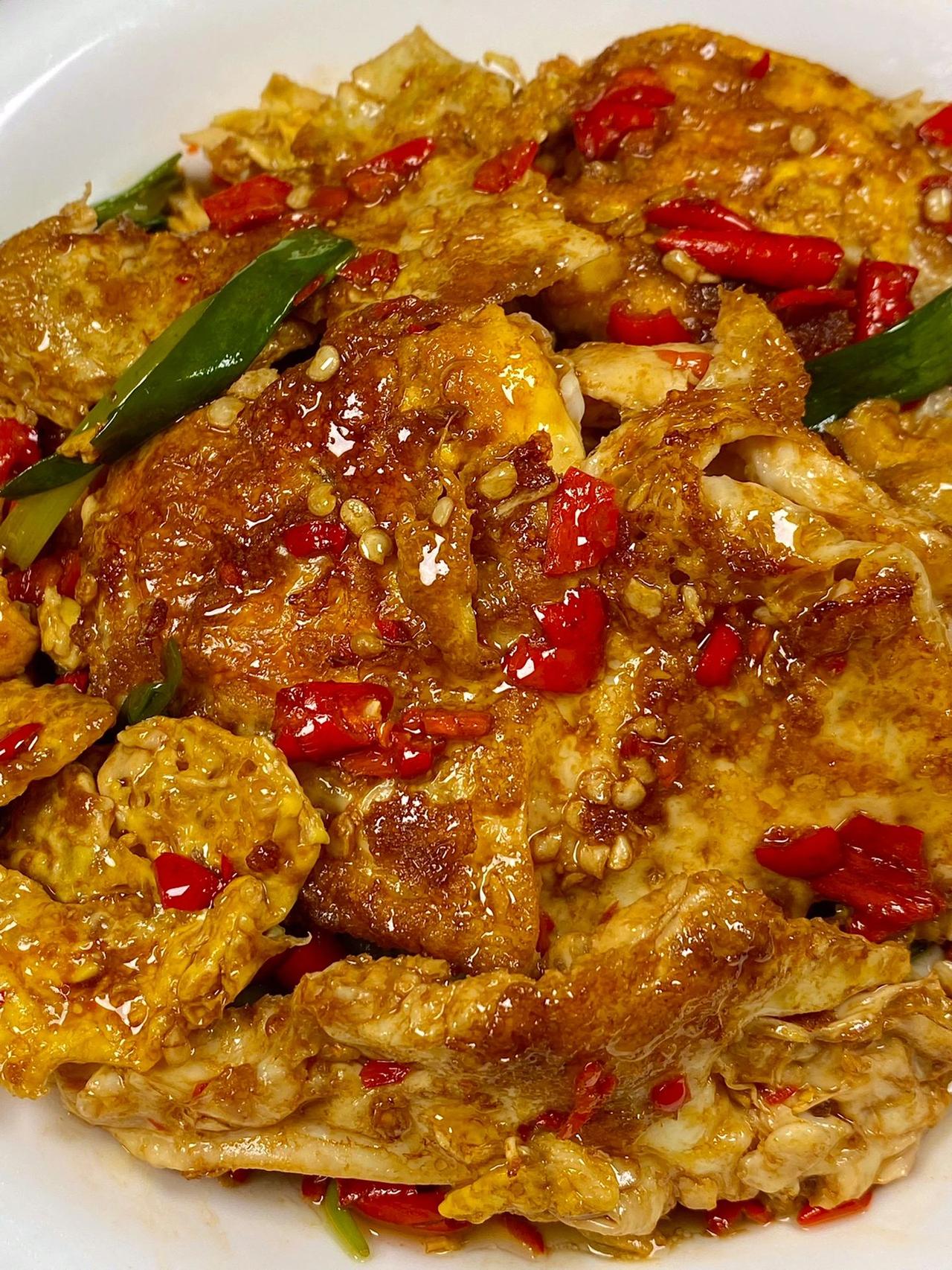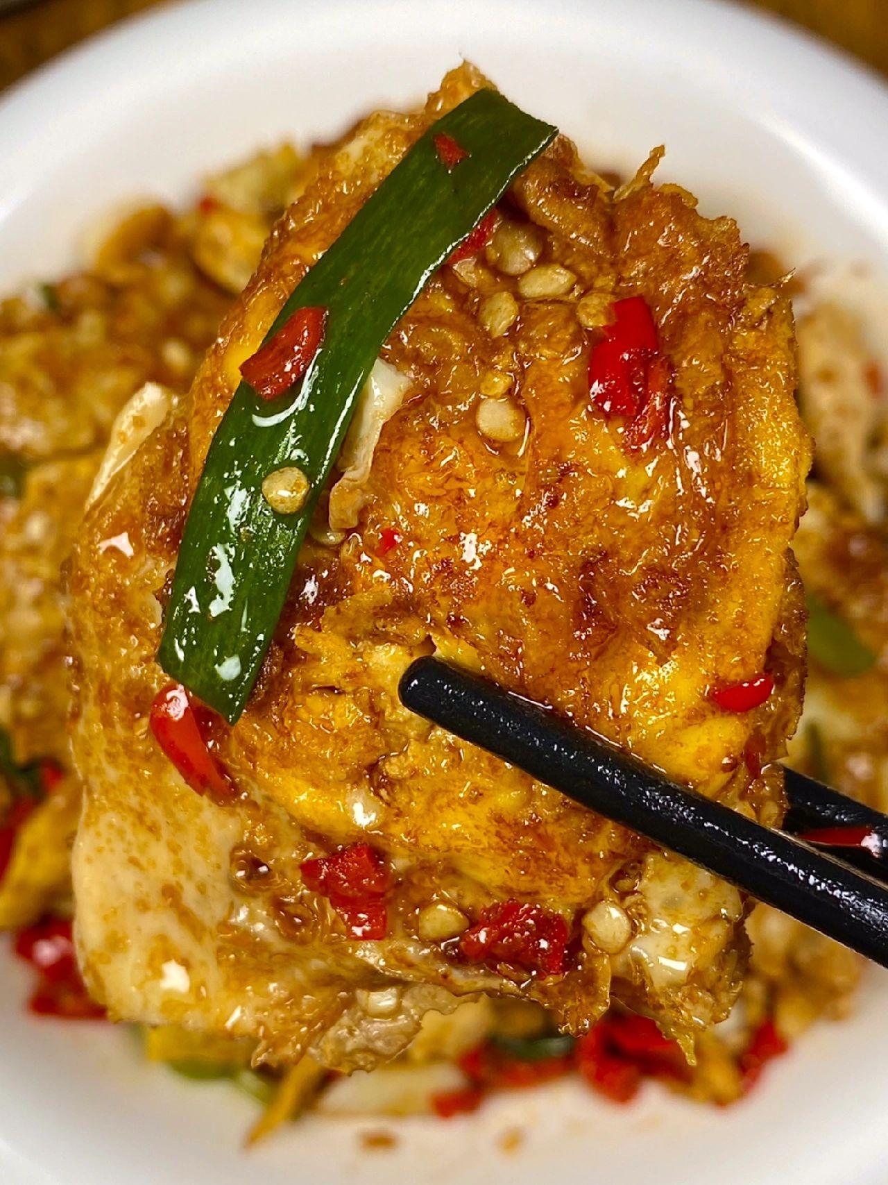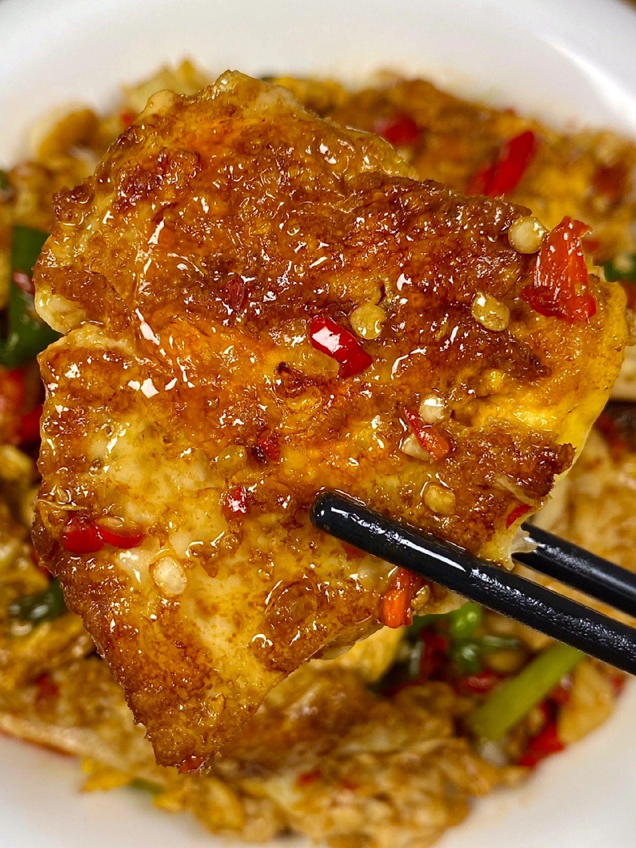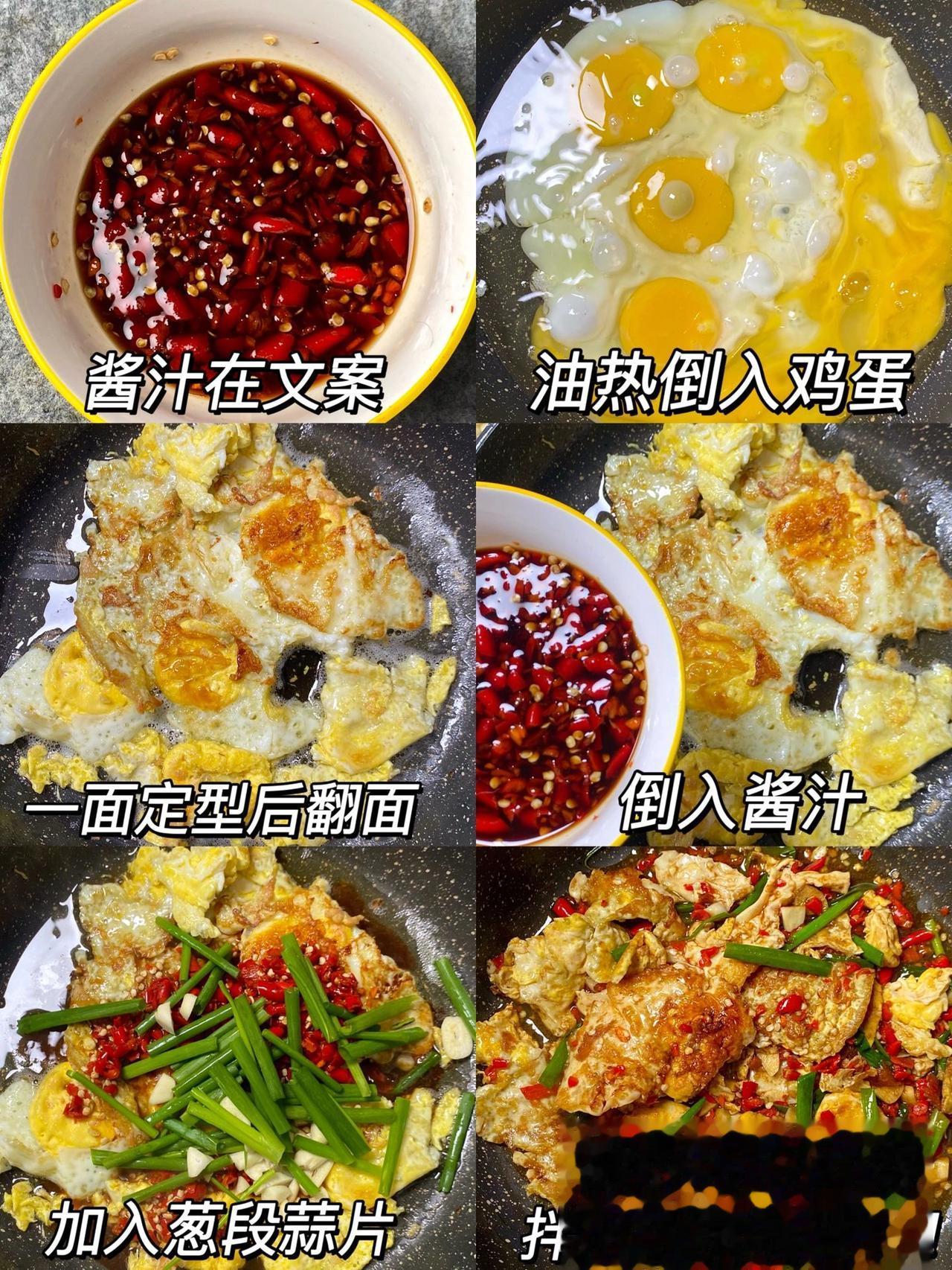 今天我姑做的这道油醋爆蛋嘎嘎滴好吃!! 巨下饭!就这一道菜可以让我多炫两碗米饭哈哈,真的香 每一块蛋都吸满了酱汁,香香辣辣的,拌饭巨巨巨香 食材:鸡蛋、剁椒、蒜、葱 酱汁:3勺生抽➕2勺醋➕1勺剁椒➕1勺蚝油➕适量白糖搅匀备用 做法如图所示哦~