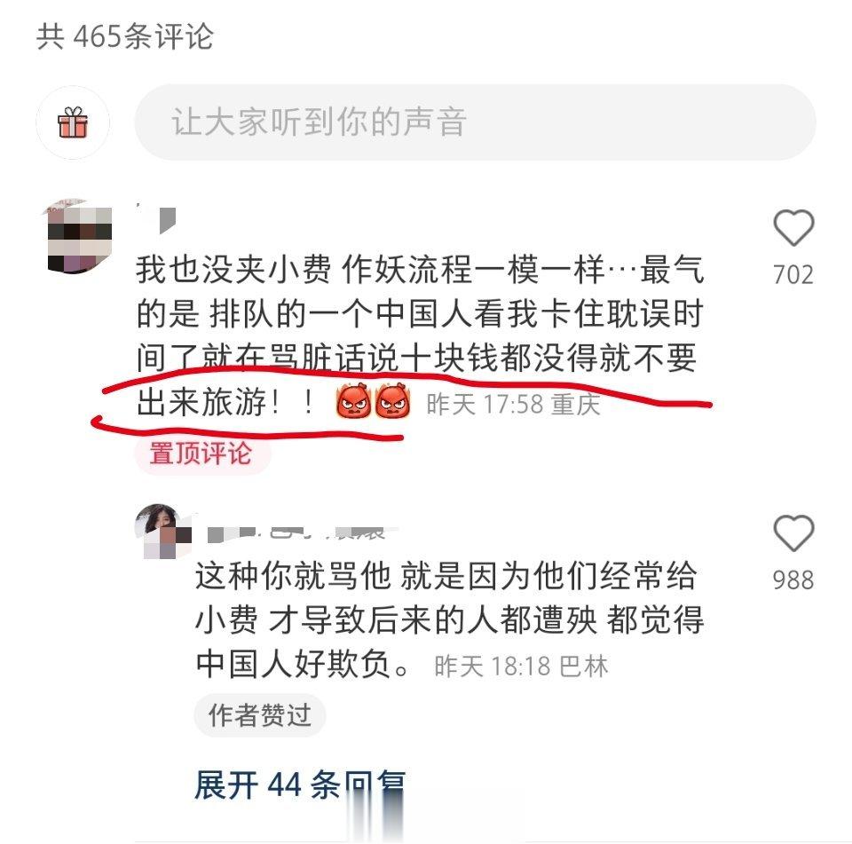 一网友越南出入境不肯给小费,结果还被另一中国游客骂:“十块钱都没得,就不要出来旅游!”怎么会有这种人?[微笑][微笑][微笑]