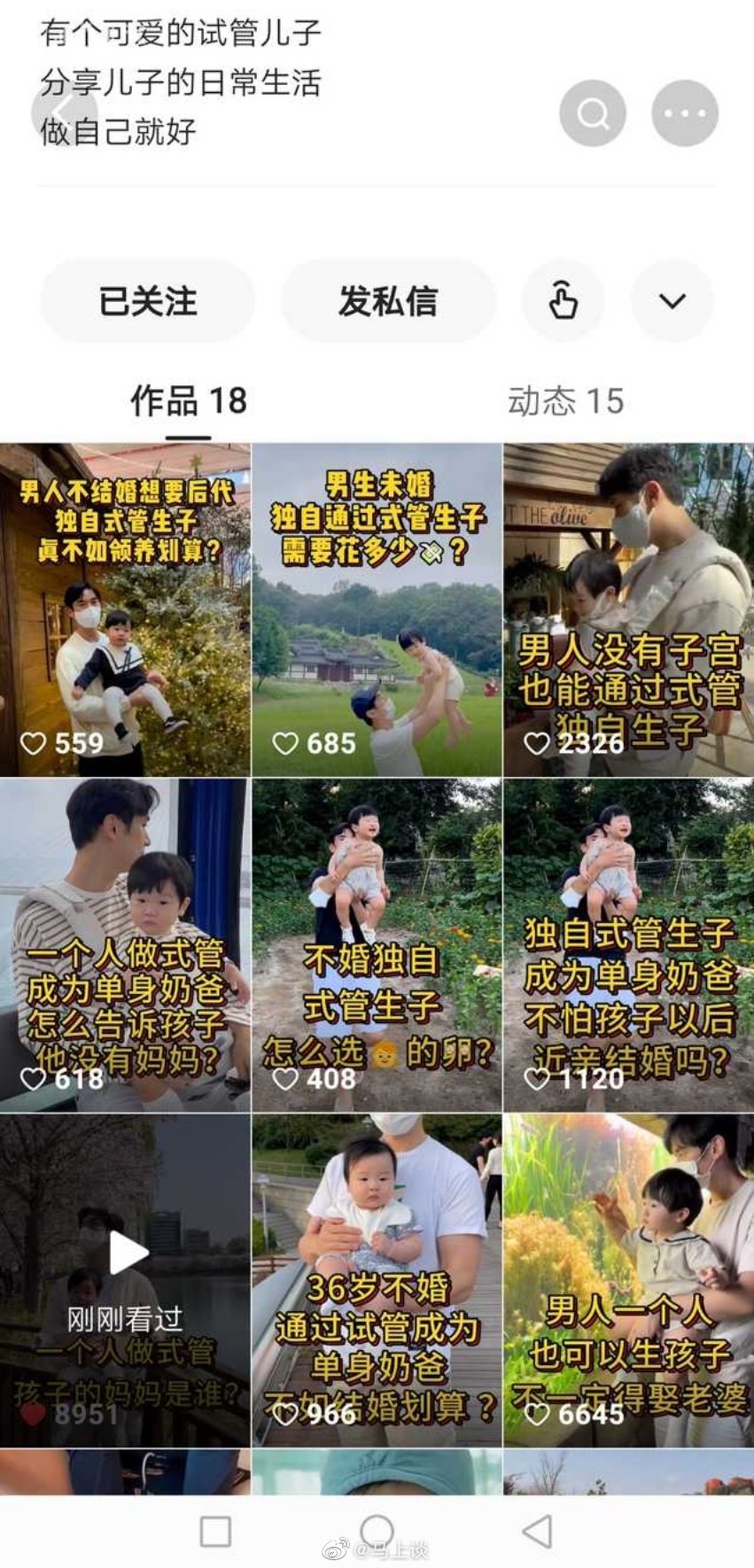 用户23xxx28 回复 07-03 18:34 国内做不了,只有国外能做。男方还要找代孕,代价是相当得大,至少正常结婚生子的费用的两倍。还面临法律和代孕人疾病的风险。所以这只是那些特有钱的喜欢孩子的拉拉同志的选择。