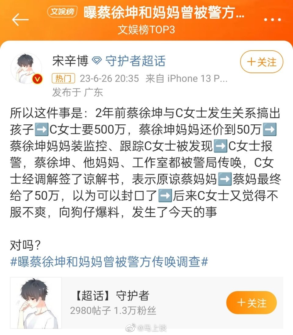 #曝蔡徐坤和妈妈曾被警方传唤调查#一地鸡毛,但32岁一夜20出头男明星,开口500万,最后50万成交,过了三年又爆给狗仔,这会不会是套?[doge]
