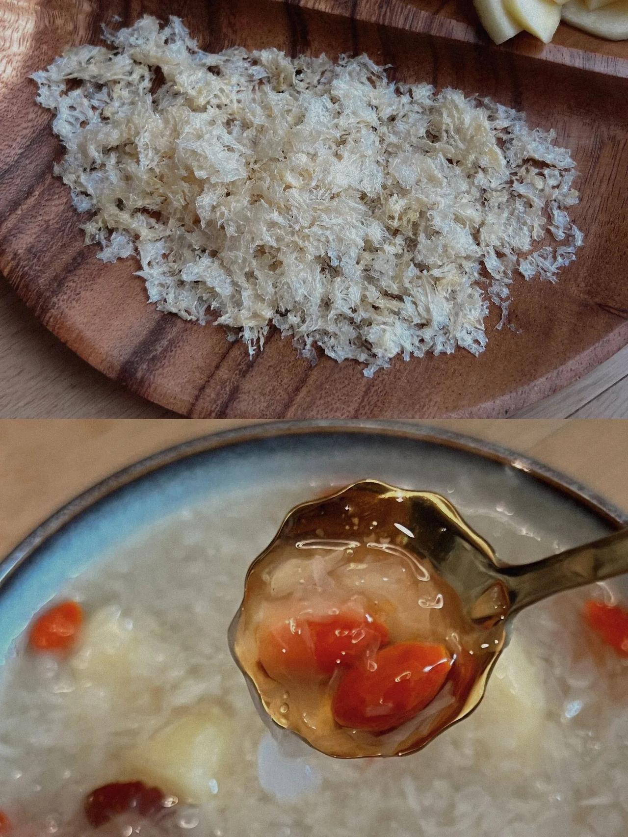 女子养生,多去大自然,多喝银耳汤!我喝银耳汤四年真实感受,总结出的经验: 养生就是养生活 刚柔并济 动静相宜! 去大自然 接触太阳 感受风 触摸花草 在家里煲一锅汤 煮一碗面 泡一杯花茶 良好的心态 自然饱满的脸蛋 清澈的眼睛 都是免费的 💐多去户外接触大自然 花花草草 蓝天白云都很治愈 能量低的时候就去户外走走满眼绿色 闻着花香 让人身心放松 眼神也会变得清澈明亮 橘子 鲜花比香水更好 💐多喝银耳汤 女孩子要常吃清淡柔软好消化的食物 常喝银耳汤,脸蛋水润心灵甜美 食疗方:银耳5g 苹果1个 枸杞 红枣 桂圆肉少许 做法:冷水放入银耳 苹果 红枣 桂圆肉煮20分钟 再放入枸杞 闷5分钟即可 这样很容易出胶 胶质满满 细腻软糯 可以煮水来喝(银耳2g)也可以像我一样煮银耳羹 银耳汤当早餐/午后甜羹/夜宵都可以 银耳润而不寒 甘而不腻 补而不滞 一年四季都适合吃 皮肤的光润 有弹性, 对皮肤都很好 适量调整 长期来喝 养心灵 养皮肤 把自己养的温温柔柔