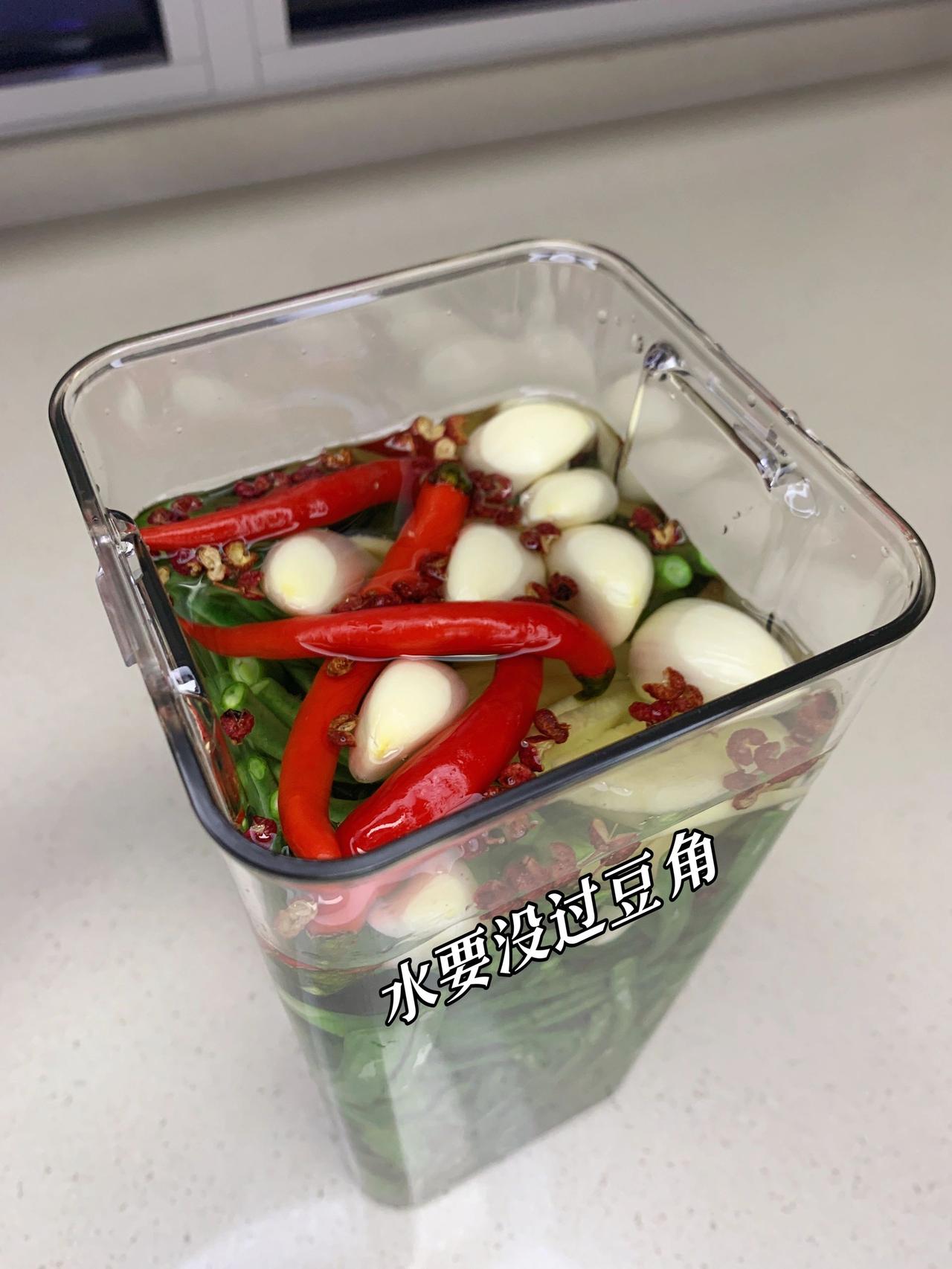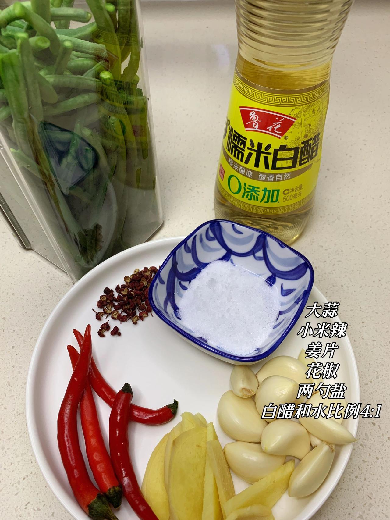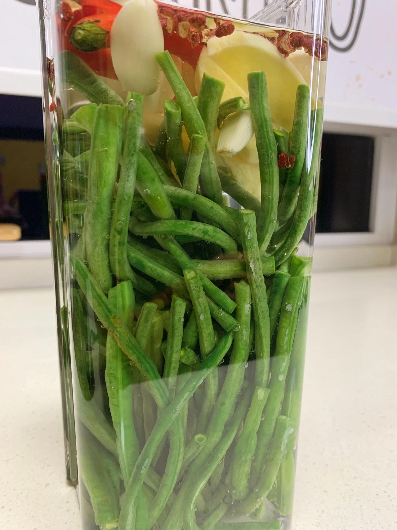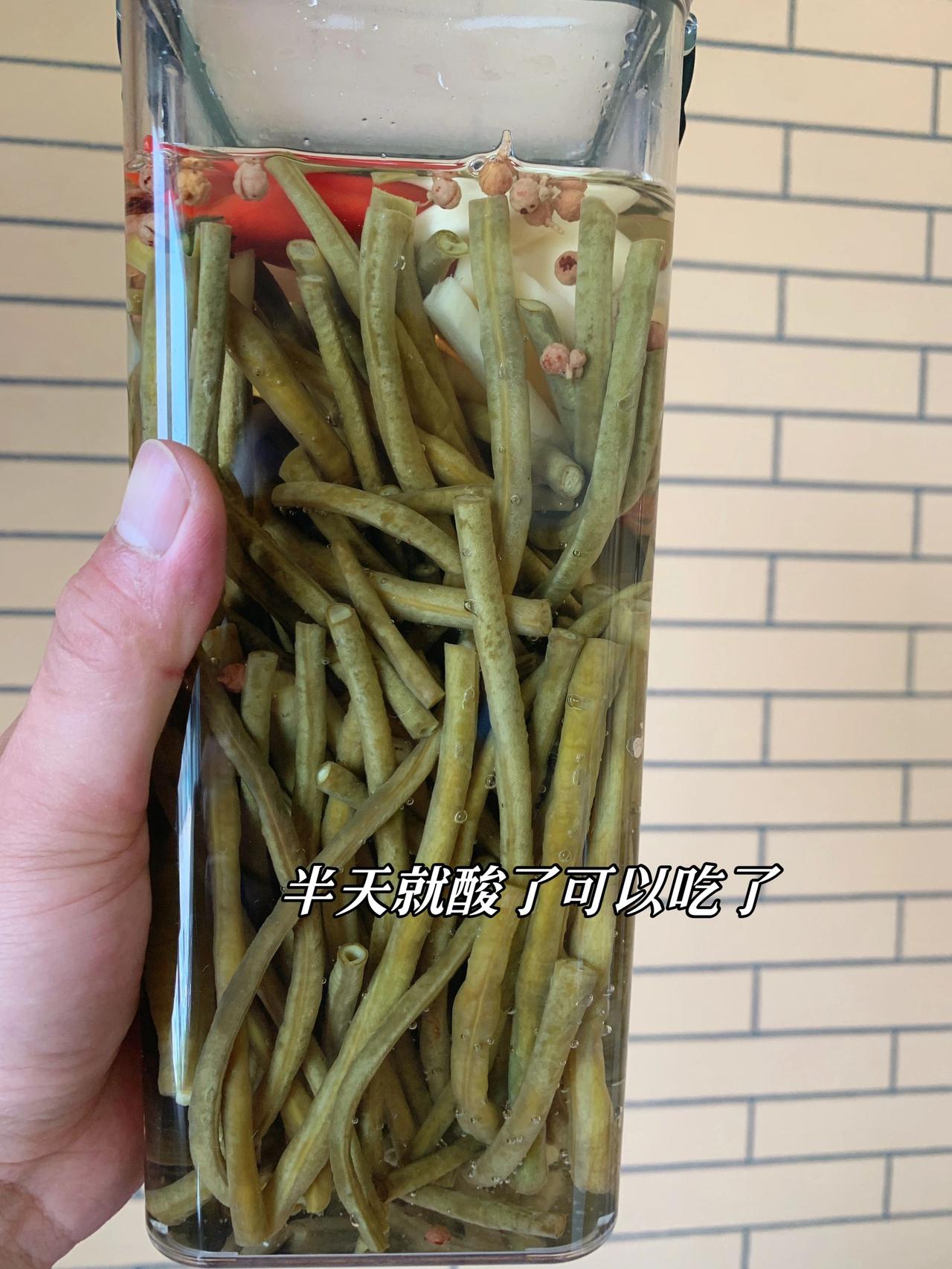 外面的不卫生,教你在家做酸豆角,简单又快速 有多少同学喜欢吃酸豆角举个爪爪,记得上大学时,每次去学校附近的一家成都小吃必点的肯定是肉沫酸豆角盖饭。如今已经而立之年却时常怀念那个味道,感谢网友分享终于实现了酸豆角自由!按照这个方法做,半天就能吃上,味道酸酸脆脆,非常开胃 食材:豇豆角一斤、大蒜、小米辣、花椒、姜片、白醋、盐三克左右 方法:1、选新鲜硬实的豇豆掐头去尾洗净,切成想要的大小。烧开水下锅,焯水10秒即可,捞出放凉 2、找一个容器,罐子、保鲜盒都行,只要干净无油就可以! 把焯好的豆角放进去,放三克盐,花椒大蒜小米辣姜片,倒入凉白开,倒入白醋即可 (白开水和白醋比例是4:1,水要完全没过豆角) 半天时间豆角就变色可以吃啦,如果想要更入味一点就头天晚上做,放一宿第二天就可以放心吃了 可以直接吃,清脆解腻;也可以做肉沫酸豆角,不好吃你来打我! 下一篇更新肉末酸豆角的做法