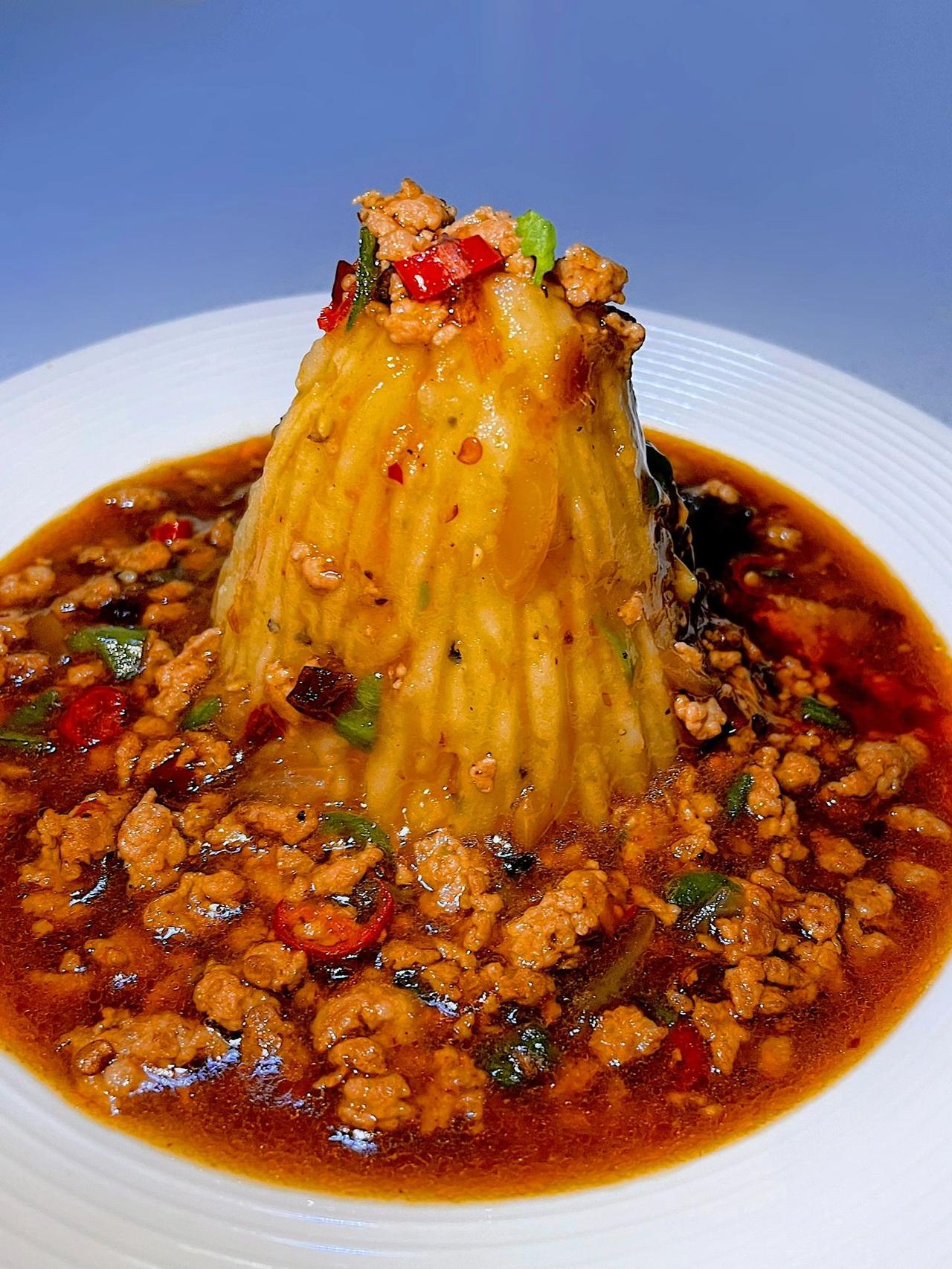 颜值爆表的土豆泥/好吃到流眼泪 2元的土豆一样可以做出高颜值的菜 土豆泥细腻柔软搭配浓稠的肉酱,口感不要太好 喜欢土豆的小伙伴一定不能错过 食材:土豆、肉末、青椒、小米辣、洋葱、辣椒酱、生抽、蚝油、鸡精、淀粉、盐、黑胡椒 做法:土豆切片冷水下锅,煮软后捞出来放少许盐和黑胡椒按压成泥,然后放盘子里面摆好造型,热油下猪肉末,炒熟放入青椒,小米辣和洋葱翻炒均匀之后放入一勺辣椒酱,一勺生抽、一勺蚝油、一勺鸡精和半碗淀粉水,勾芡之后淋在土豆泥上面即可