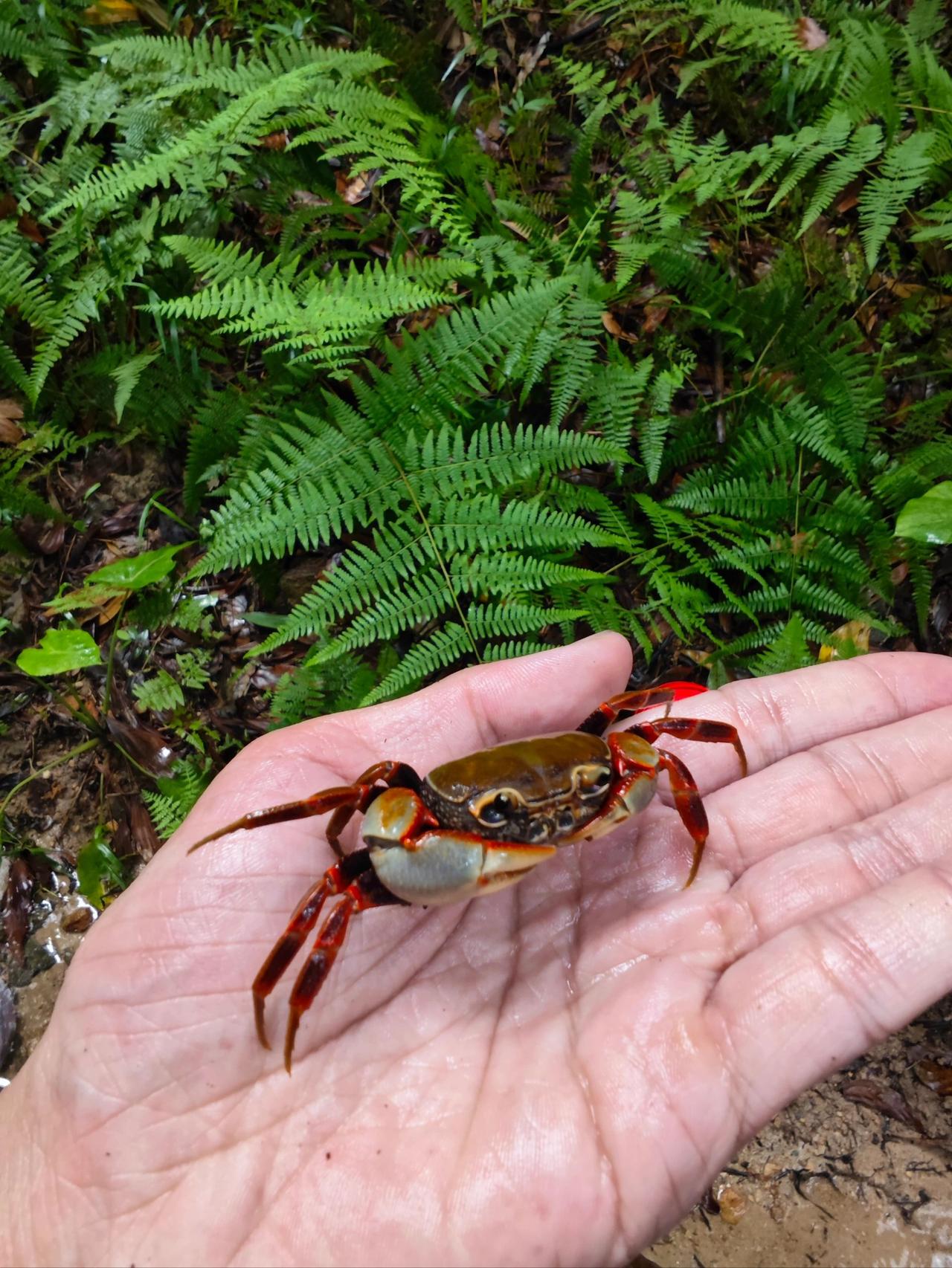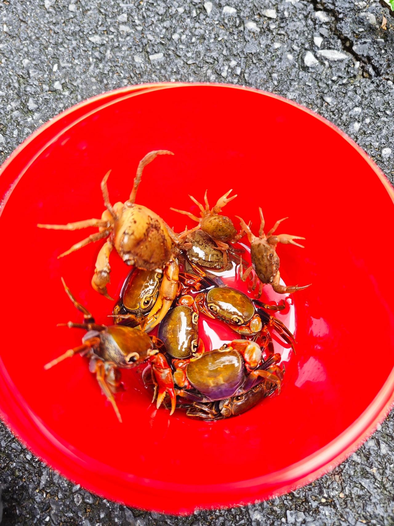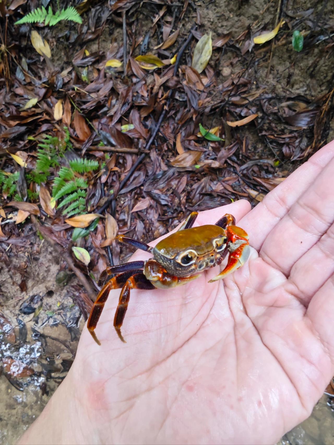 爬山的另类玩法:小溪抓螃蟹 在本地山上某处人迹罕至的小溪里匿藏着一个螃蟹窝,感觉啥螃蟹都有。我也不怎么认识,反正都是螃蟹[大笑] 为保护生态可持续发展,把玩了一会儿后已放回原位。感受抓螃蟹的乐趣就可以啦,想吃了再从海鲜市场买吧[呲牙];毕竟现在小溪里面能有螃蟹已经十分不易啦,我就不干坏事了[灵光一闪]