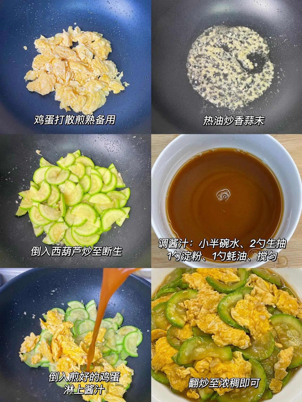 后悔没早点做,巨好吃,巨下饭! 今天来做一道西葫芦炒鸡蛋,西葫芦清甜爽口,配上鸡蛋真的好绝! 做法: 1、调酱汁:碗中放小半碗水、2勺生抽、1勺淀粉、1勺蚝油搅匀; 2、鸡蛋打散煎熟盛出备用; 3、热油炒香蒜末,倒入西葫芦炒至断生,倒入煎好的鸡蛋,淋上酱汁翻炒至浓稠即可。