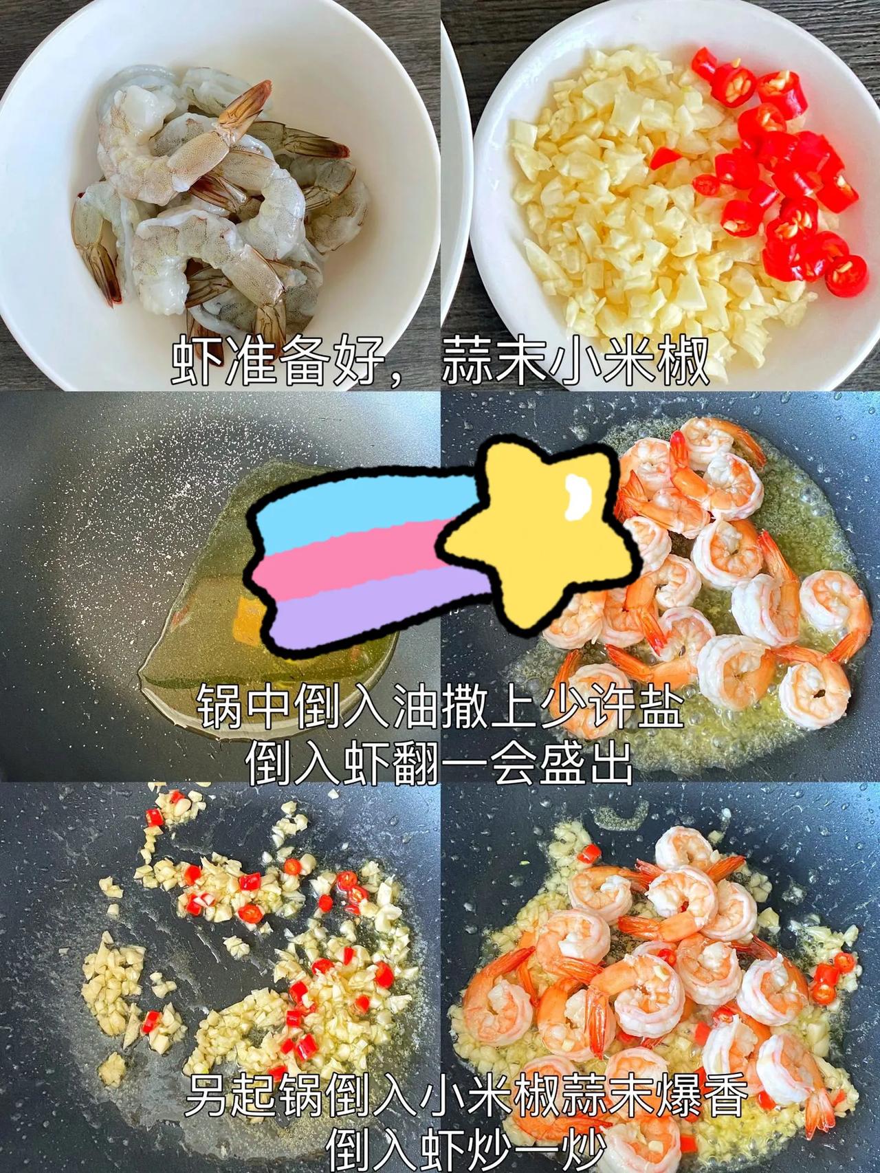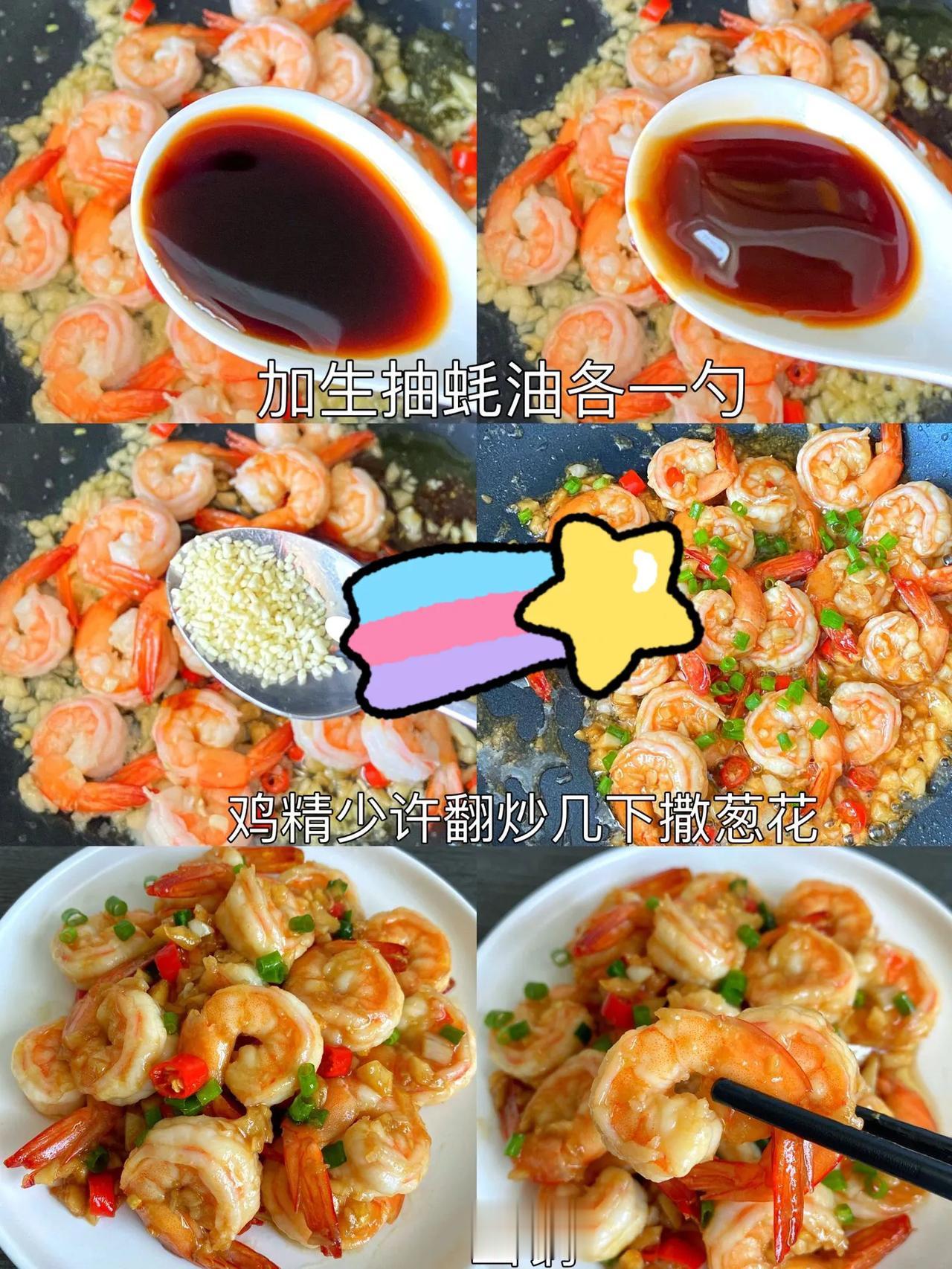 好吃到跳脚的~蒜蓉炒大虾有手就会! 虾这么做真是天天吃都吃不腻,超级入味, 大人小孩都超爱赶紧学起来! 做法: 做法: 1、锅中倒入油,撒上少许盐,倒入虾翻一会盛出备用; 2、另起锅倒入小米椒、蒜末爆香,倒入虾翻炒一下,加生抽,蚝油各一勺、鸡精少许翻炒几下,出锅前撒葱花即可。