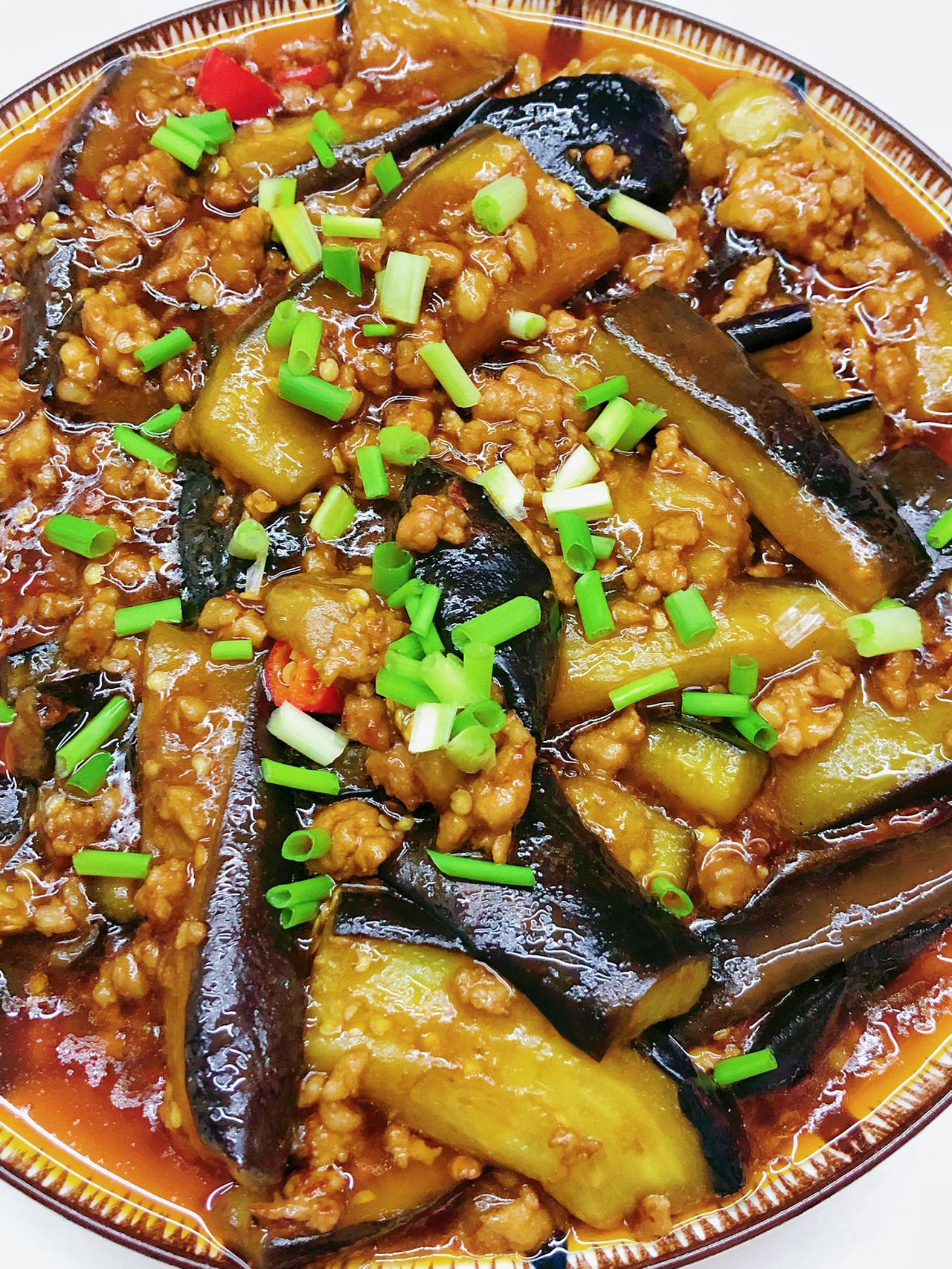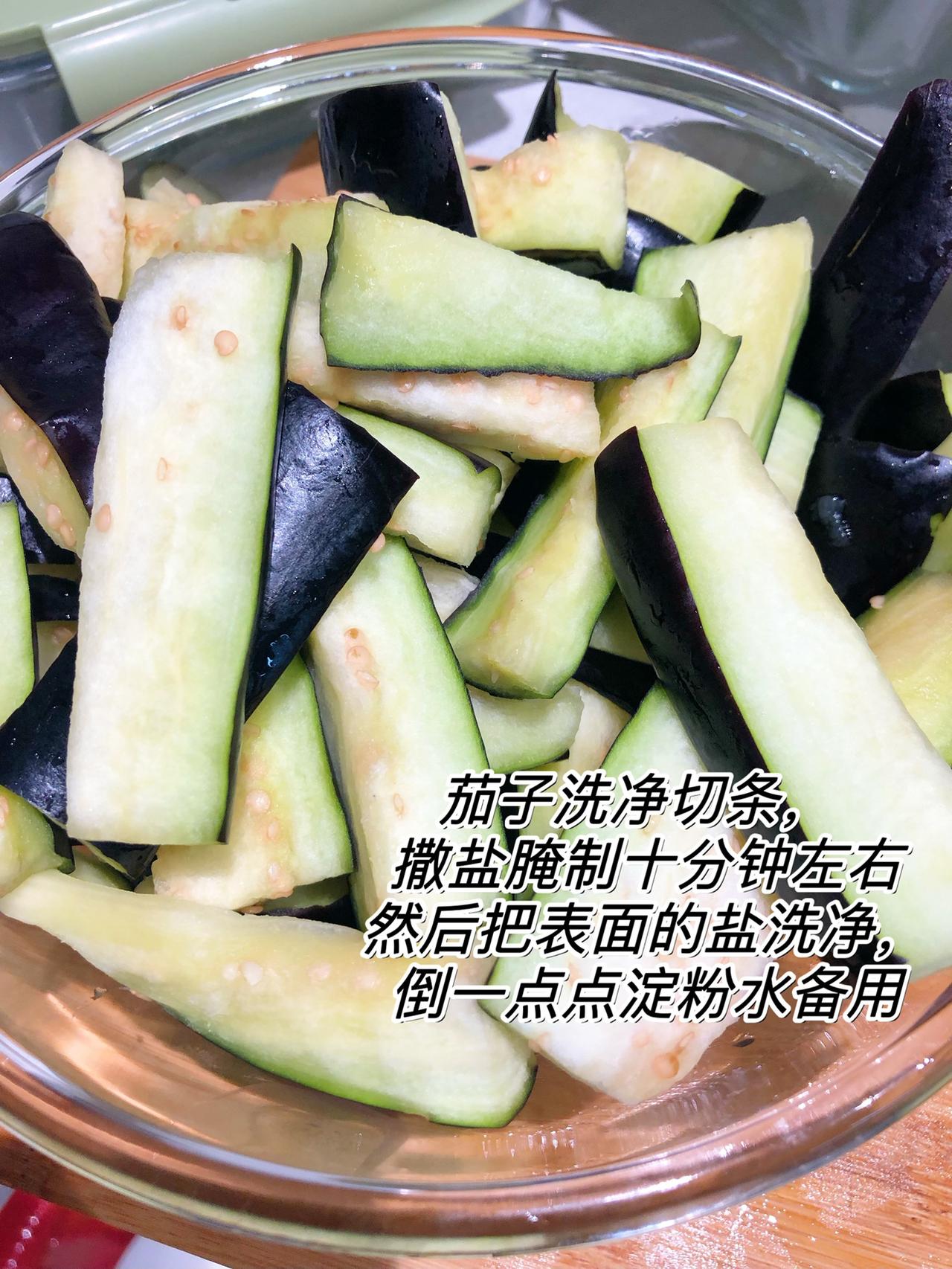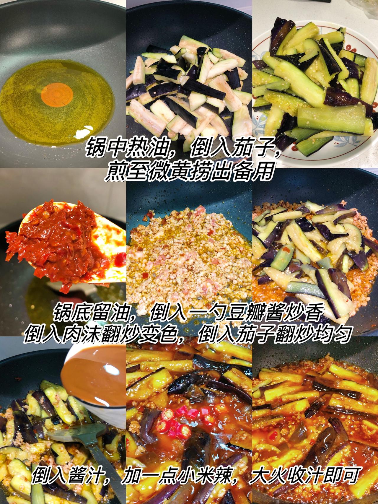 毫不夸张,逢人就安利的下饭菜,肉沫茄子 超级合我的胃口!太爱吃的!不好吃来找我 食材准备:肉沫、茄子、小米辣 酱汁准备:两勺生抽、一勺老抽、一勺蚝油、一小勺白糖、一勺淀粉、半碗清水搅拌均匀备用 1、茄子洗净切条,撒盐抓匀腌制十分钟左右,然后洗去表面的盐分,将水挤干,倒入一点点淀粉水抓匀备用 2、锅中热油,倒入茄子煎至微黄捞出;锅底留油,加一勺豆瓣酱炒香,倒入肉沫炒至变色 3、倒入茄子翻炒均匀,加入准备好的酱汁,加一点点小米辣,大火收汁,撒上葱花即可食用 总结:亲测好吃,色香味俱佳!直接炫完两碗大米饭的程度!