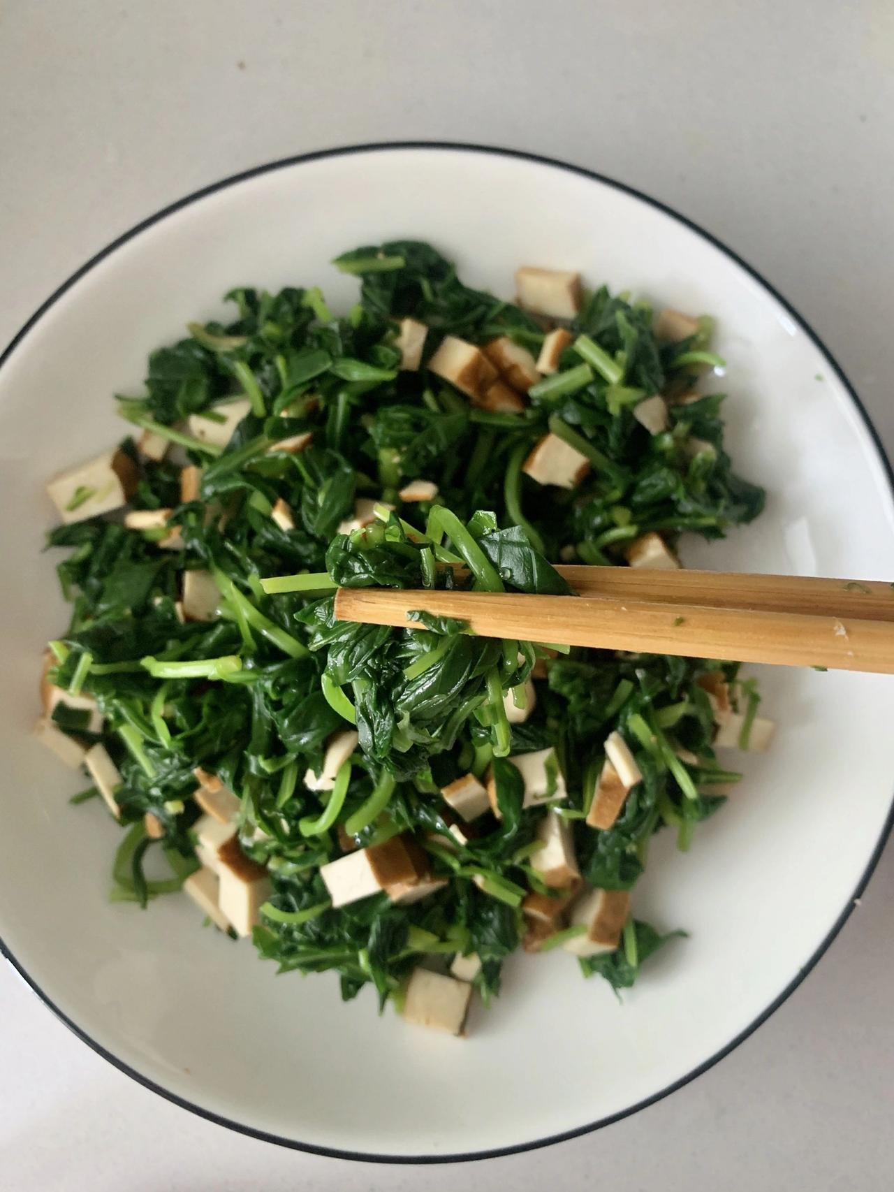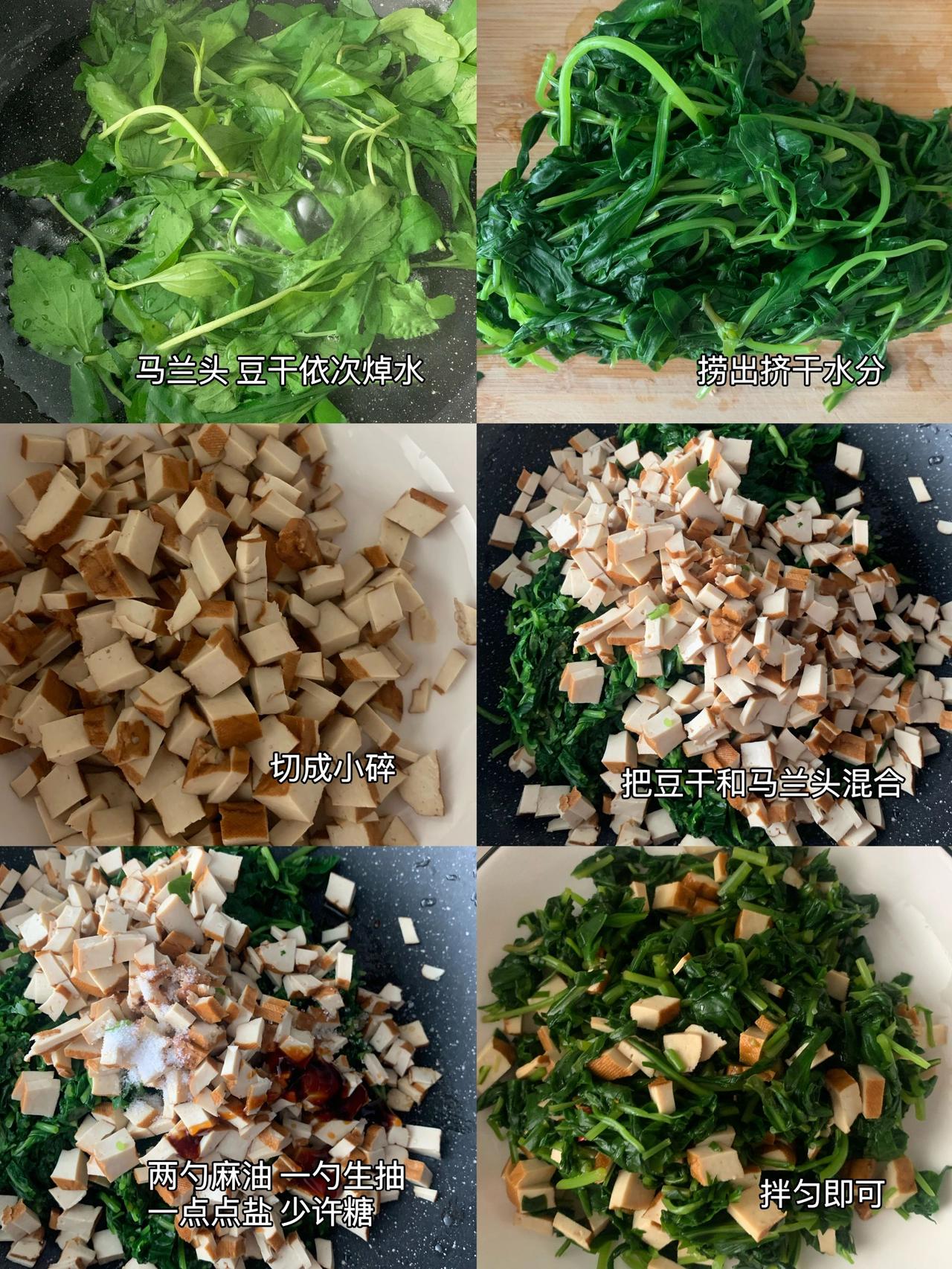 凉拌马兰头,夏天清热降火的凉拌菜 马兰头应该是清明左右的时令菜,最完美的搭配是和豆腐干一起凉拌,如果你有香菇,加一点进去也会很搭。 材料:马兰头、豆腐干 做法:1、马兰头洗净,一锅开水分别焯一下马兰头和豆干(不需要很久,1-2分钟) 2、用凉白开过一遍降降温,然后挤干马兰头。 3、马兰头和豆腐干切细,加生抽、盐、糖、麻油拌匀即可。