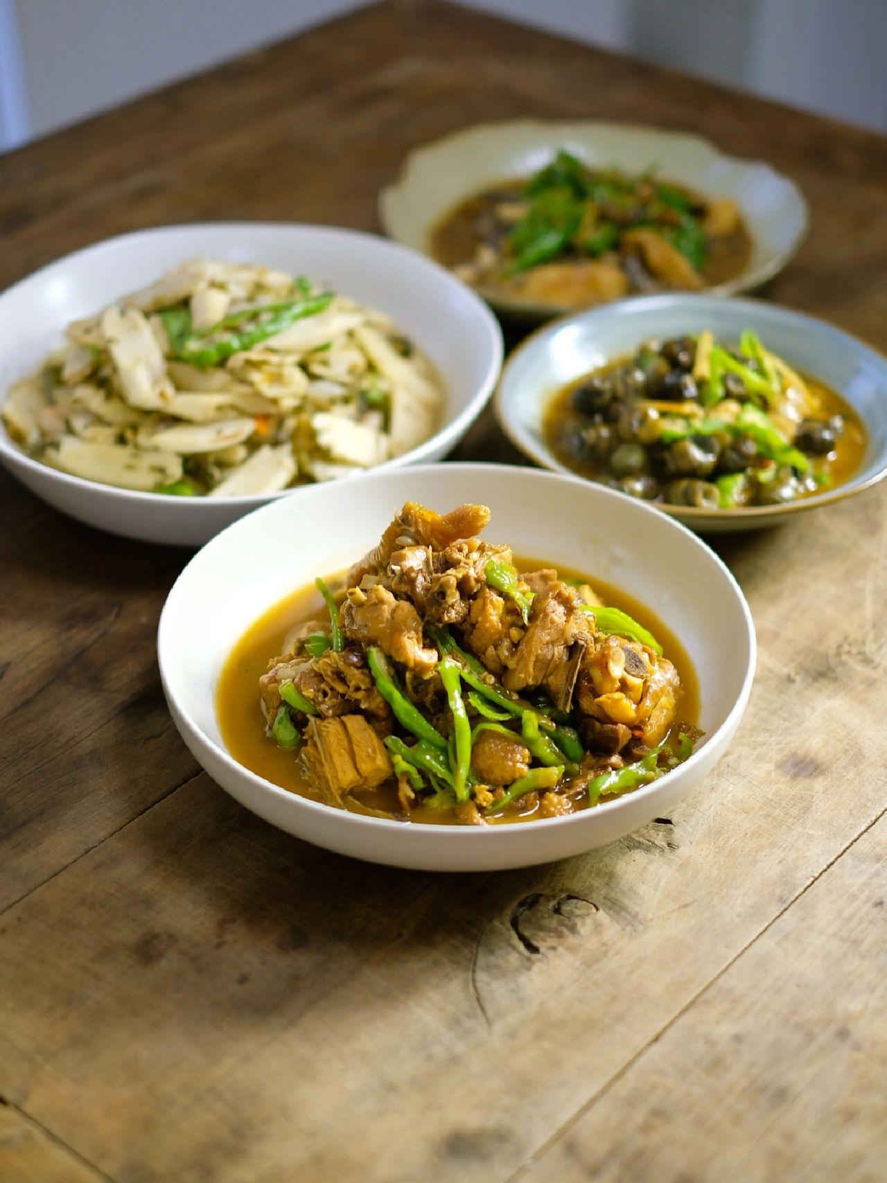 不知道为什么,我总会回忆起过往。从小到大,我一直都是长辈眼中的乖宝宝,老师眼中的好学生。也时常会想起孩提时代,长辈们做的某个食物,让当时的我觉得好惊艳。 印象中,那会儿还是黑白电视机,有个广告,不晓得大家有没有印象。就是一个小朋友端着一个碗,舔着碗里的芝麻糊(表示很好吃的样子)。 后来,那年春节,某个亲戚拜年就带了这个礼品,当时馋的我,后来母亲给我泡了一碗,那个感觉真的不是装的,真的要把它舔完。 一到冬天,我还爱用米花+白糖不知道为什么,我总会回忆起过往。从小到大,我一直都是长辈眼中的乖宝宝,老师眼中的好学生。也时常会想起孩提时代,长辈们做的某个食物,让当时的我觉得好惊艳。 印象中,那会儿还是黑白电视机,有个广告,不晓得大家有没有印象。就是一个小朋友端着一个碗,舔着碗里的芝麻糊(表示很好吃的样子)。 后来,那年春节,某个亲戚拜年就带了这个礼品,当时馋的我,后来母亲给我泡了一碗,那个感觉真的不是装的,真的要把它舔完。 一到冬天,我还爱用米花+白糖,泡开水喝,这种美味,或许只有我自己能体会了。 不晓得你有什么印象中回忆里的美味呢?如果你方便,也可以与我分享下哇。 今天比较匆忙,但也要与大家分享下今天的晚餐。 醋炒鸡:我之前也做过醋炒鸡。这么做的原因源自于我今天这半只鸡是菜场买的,品质不是那么优秀,所以做醋炒鸡会把它的味道最大程度上发挥出来。将鸡肉下油锅干煸至鸡皮焦黄,放姜片,大蒜子,干辣椒同炒出香味,加第一遍醋,加适量料酒,生抽,老鸡的话没办法还是要加点水,嫩鸡的话无需加水也无妨。因为我要将其小火慢炖,所以我把炒制过的鸡肉放到了奶锅里中小火慢炖,快熟的时候大火收汁,加适量杭椒,淋点锅边醋,就可以出锅装盘了。无论是下饭还是下酒,都是好吃的。 雪菜炒鞭笋:鞭笋放着容易老,本来就没有太多能吃的部分。所以今天多剥了些,抱腌了一些些肉同炒,放了点雪菜增加鲜味。整道菜调料只加了盐和些许白砂糖,辅料除了雪菜还有适量杭椒,我觉得凭食材本身的味道,我也感受到了鲜。 紫苏清炒螺蛳:我炒螺蛳不爱放酱,炒这盘螺蛳的原因,也是因为门口的紫苏肆无忌惮的长。紫苏真的和螺蛳好配,也确实鲜美。就是这个季节的螺蛳,吃着小螺蛳有些多了。 红烧ya片鱼头:这鱼头,平时家里来客人忙的时候都是上锅蒸的。今天还是想着给它红烧下,虽说是红烧,但没有放老抽。再加上冰冻过的食材,虽然味道还是挺好,但这个菜的