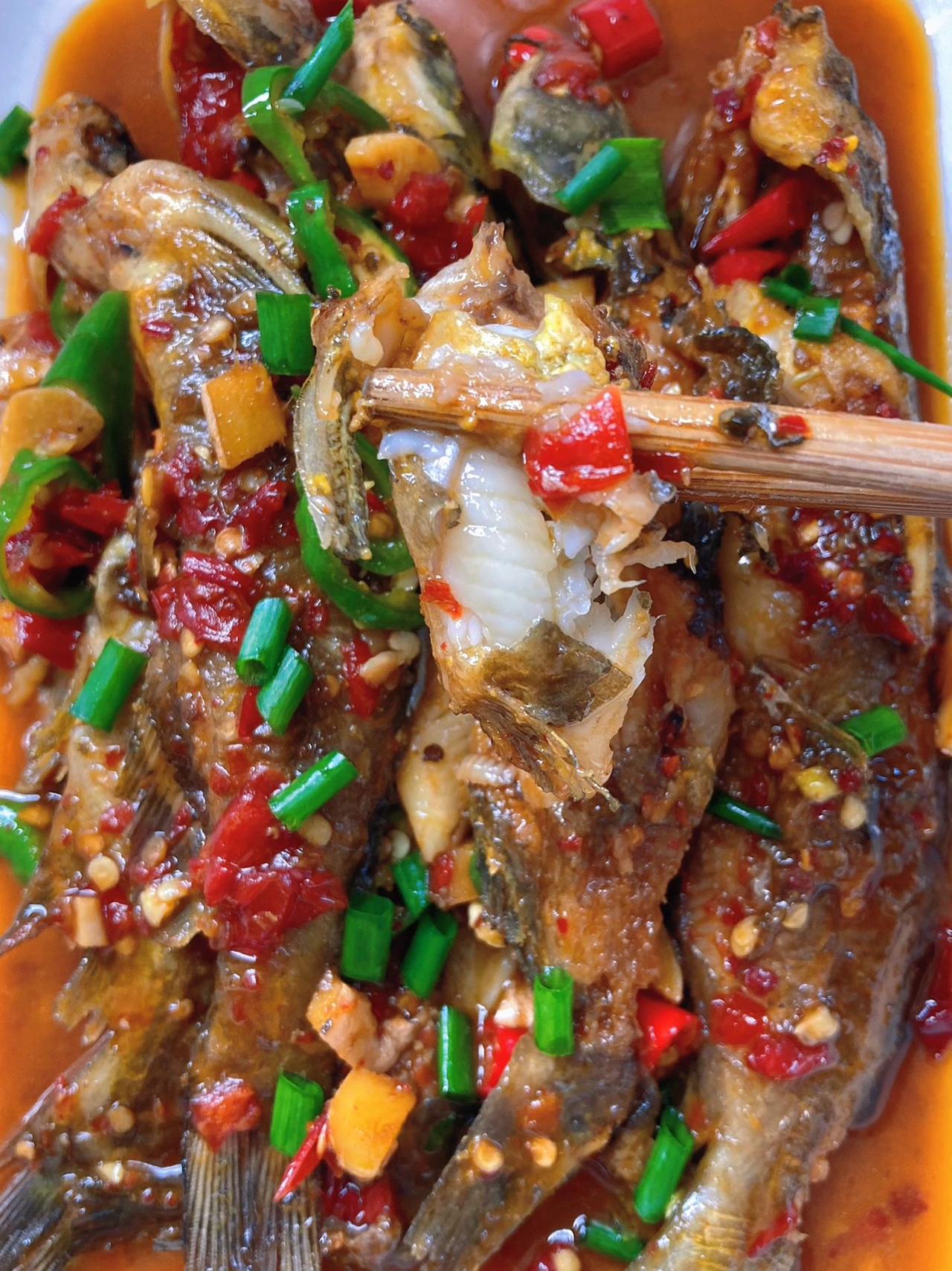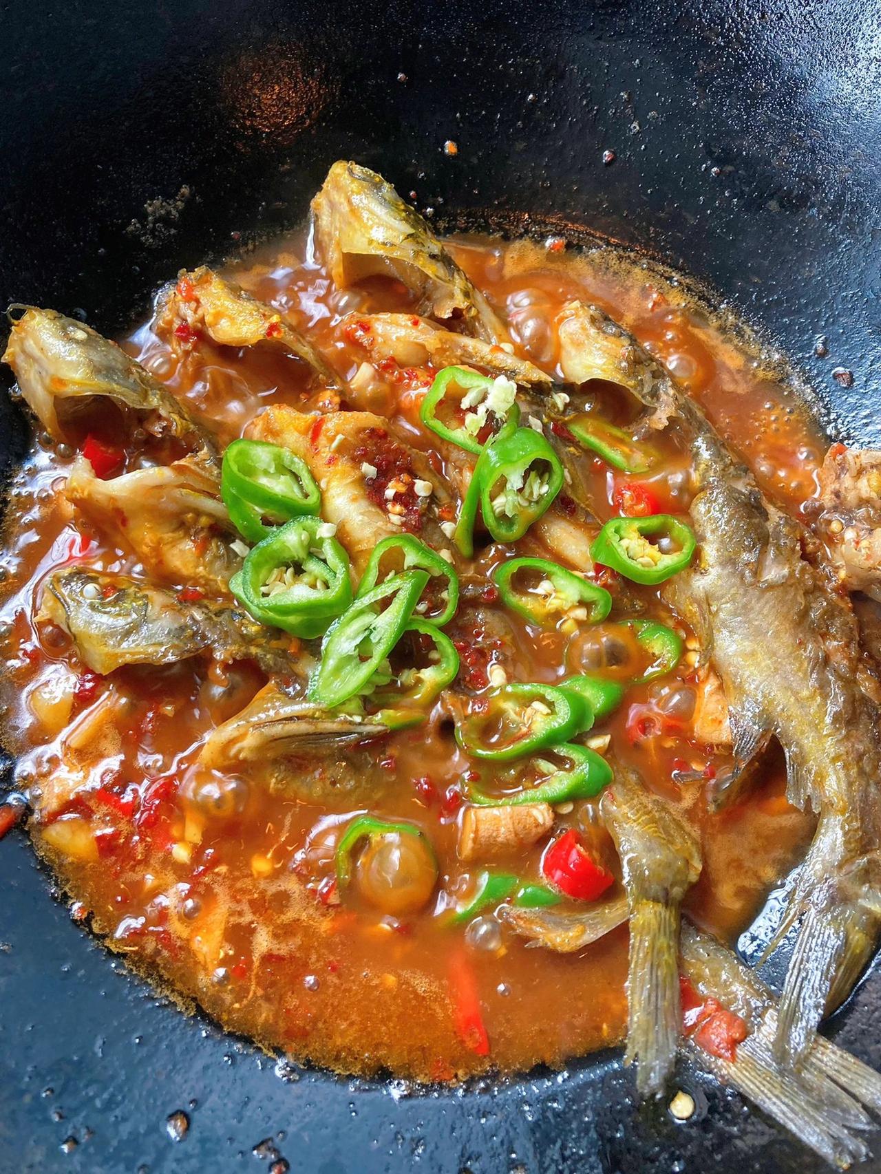 不骗你,真的超下饭,红烧黄丫头 有小伙伴跟我一样爱吃黄丫头的嘛!这种鱼肉质鲜嫩,没什么小刺,老人小孩都能吃!处理鱼的时候一定要注意不要被它扎伤哦 食材准备:新鲜黄丫头、青椒、小米椒、姜蒜 1、先把鱼去除内脏处理干净,比较大的鱼需要改一下刀方便入味 2、辣椒切圈,姜蒜切丁 3、热锅凉油沿锅边再撒点盐防止粘锅,缓慢倒入沥干水分的黄丫头,煎至金黄色金黄,下姜蒜、小米辣炒香,烹入半勺米酒,再倒入没过鱼的开水 4、加2勺生抽、半勺老抽、1勺蚝油、少许食用盐调味,能吃辣的可以加一勺辣椒面,炖煮3~5分钟,汤汁收的差不多了下青椒圈煮至断生即可出锅~ 重点来咯:热锅凉油,锅边撒点盐再下鱼,可以防止粘锅,下鱼的时候要把盘子里的水都沥干一点,鱼放下去之后不要着急翻动,摇晃锅身使之受热均匀,一面煎定型后翻面继续煎 煮鱼的时候可以边煮边用勺子把汤汁舀在鱼身上,便于入味 煮鱼时建议倒入开水,这样煮出来的汤汁非常鲜美