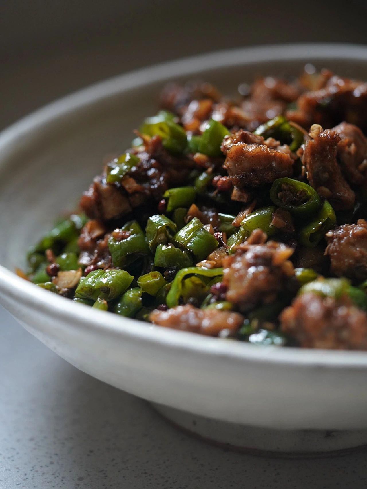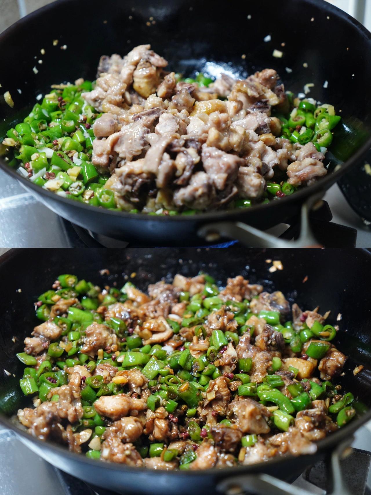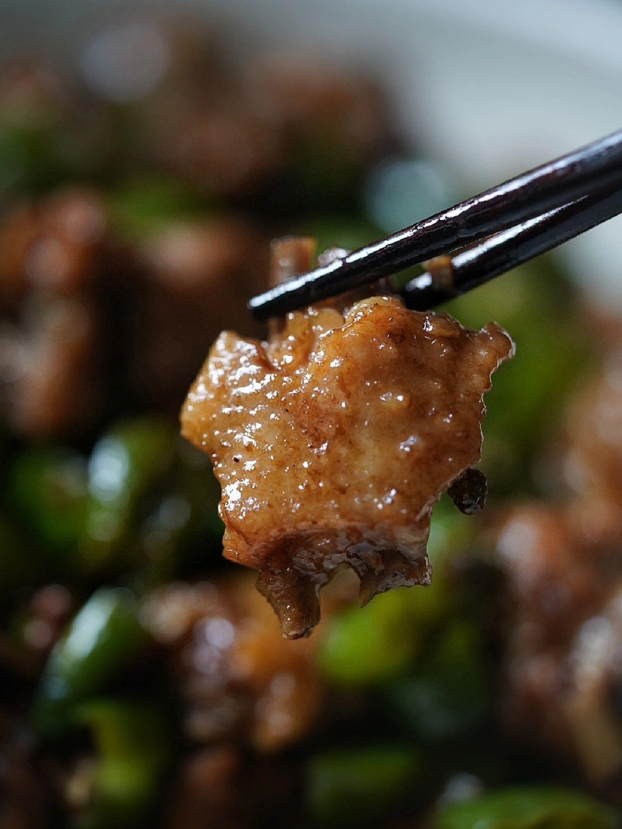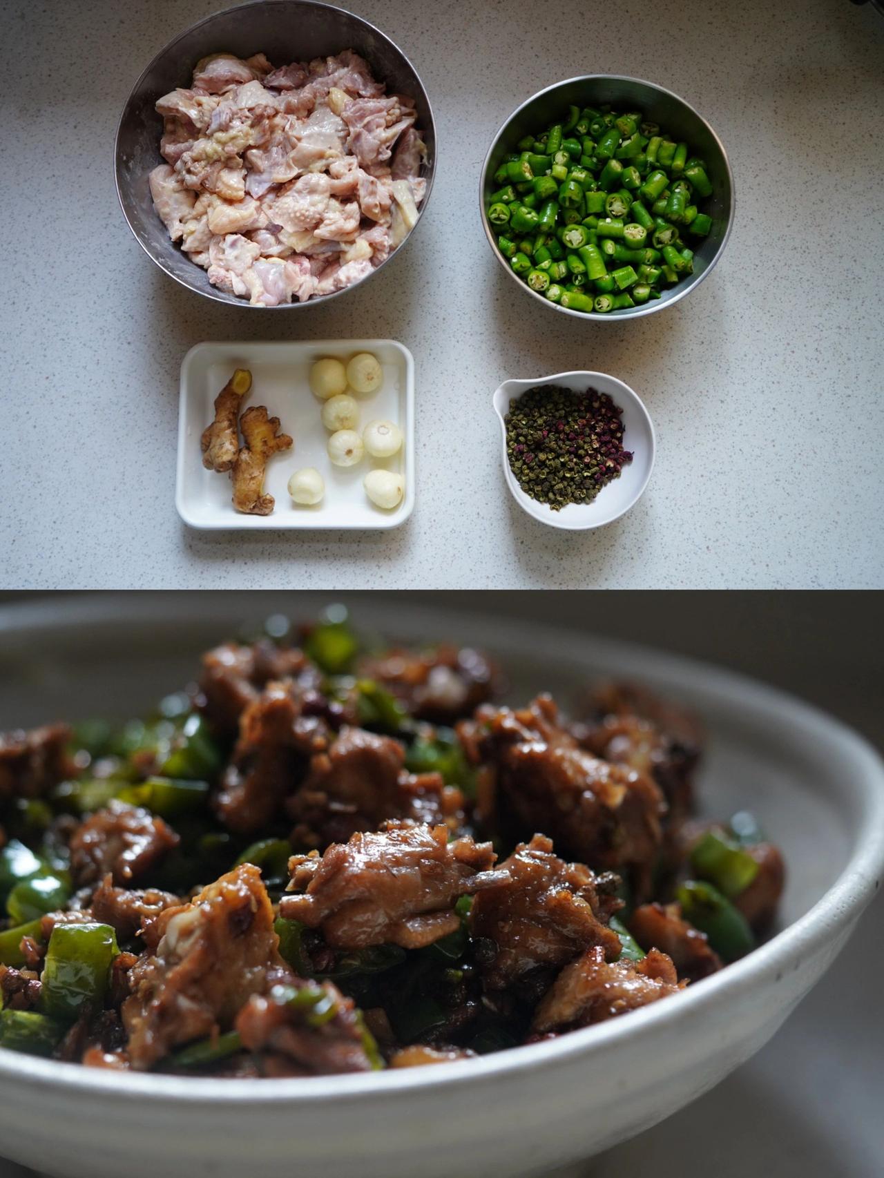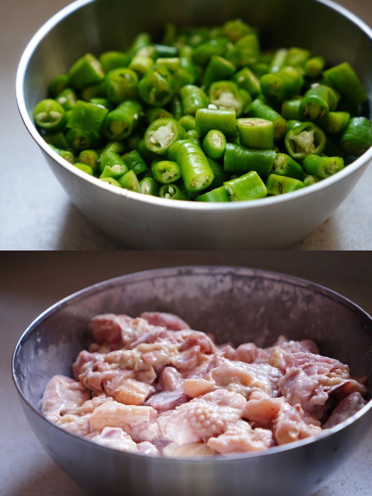 二荆条,大概是川渝最喜欢的辣椒。 要说和线椒最直观的区别,大概就是尾部带个小J吧 微辣带香,做烧椒酱或者炒菜都是巴巴适适的存在 夏天潮湿又热没胃口的时候,就更爱吃辣。 而今天鸡肉买的有点多,剁的个头还有点大,要做炸得干香十足的尖椒鸡好像不太行;那就换一种吃起来糯唧唧的尖椒鸡好了 食谱·尖椒鸡 1.带骨鸡肉反复淘洗几遍,擦干水分,剁小块(剪也行),先加料酒、盐rua匀,再加淀粉,继续rua匀,腌制20分钟左右 2.二荆条切小段,姜蒜切粒,红花椒和青花椒各一半清洗沥干备用 3.起油锅,宽油,油温7成左右(木筷子放进去冒泡泡)下码好味的鸡肉,中火慢慢炸,油变清澈即可捞出备用 4.起油锅,最好是猪油菜籽油的混合油,加入二荆条段、花椒翻炒均匀,加入姜蒜粒,继续爆香 5.加入炸好的鸡肉,加适量生抽、蚝油,一小勺白糖提鲜,翻炒均匀入味,烹入适量花椒油,扒拉几下出锅开吃吧~ 这也太好吃了,感觉自己需要一大罐冰镇啤酒 码过淀粉的鸡肉,炸的时候会有点糊锅,但这样处理后的鸡肉会更嫩,有糯唧唧的口感,只是中途洗锅会有点麻烦