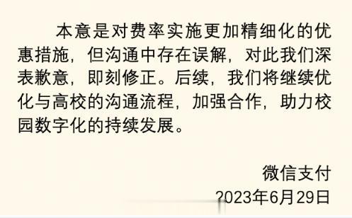 #微信官方致歉# 这道歉,只想和大学讲道理啊,没有实惠。看来垄 断地位让微信,根本不怕高校闹情绪。看来只有数字人民币,才能让微信支付低下高贵的头颅。