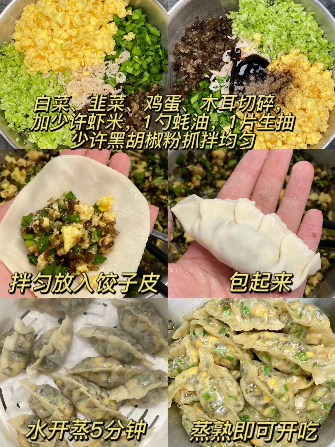 破防了!这个低脂蒸饺巨好吃 ! 给自己安排一顿减肥减脂餐,饱腹感还很强 无需揉面,就能做出个低卡素菜蒸饺,真的要向全世界安利这个减脂餐,皮薄馅儿多一口一个 做法: 1、碗中放白菜、韭菜、鸡蛋、木耳碎,加少许虾米、1勺蚝油、1勺生抽、少许黑胡椒粉抓拌均匀; 2、放到饺子皮里 包起来; 3、水开蒸5分钟,蒸熟即可。