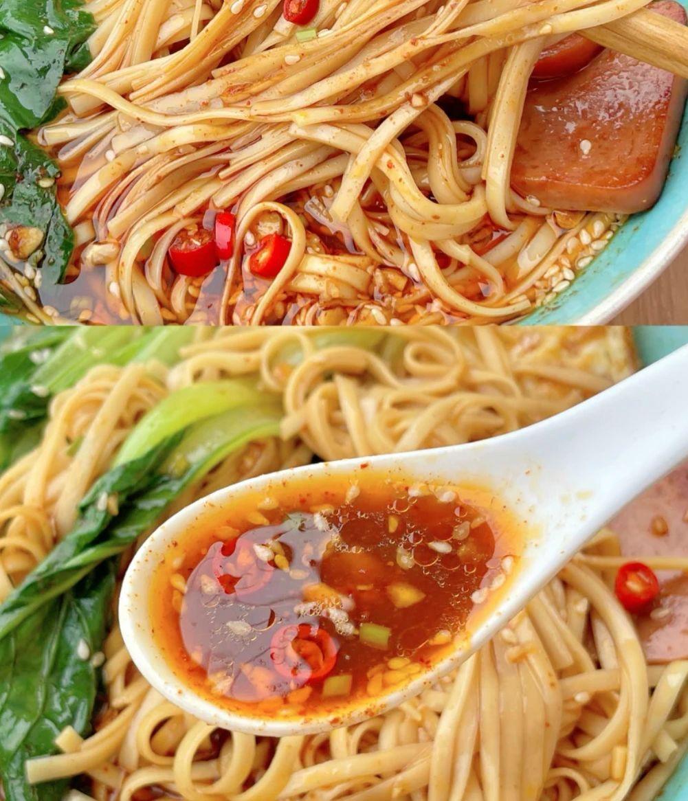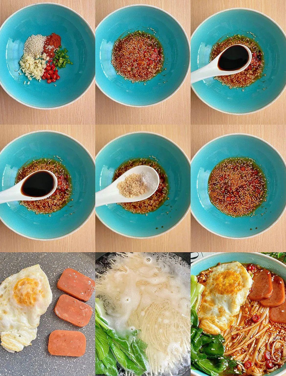 酸辣开胃,好吃到连汤汁不剩~酸汤面 今日份美食了吃一次就爱上的酸汤面—酸辣巨开胃,好吃到连汤汁都喝光光啦 零厨艺~小白的你快来安排吧。 用料:挂面,火腿,鸡蛋,小米椒,蒜末,芝麻,辣椒面,生抽,香醋,盐,鸡精 做法:1、碗里放蒜末、葱花、小米椒、芝麻、辣椒粉淋上热油。 2、加入 3勺生抽、2勺香醋、盐、鸡精各适量混合均匀待用。 3、煎熟一个荷包蛋和火腿片待用 4、锅中水开放入青菜、面条煮熟捞出来放入酱汁面碗中。 5、放上荷包蛋和火腿片、舀入适量面汤即可。