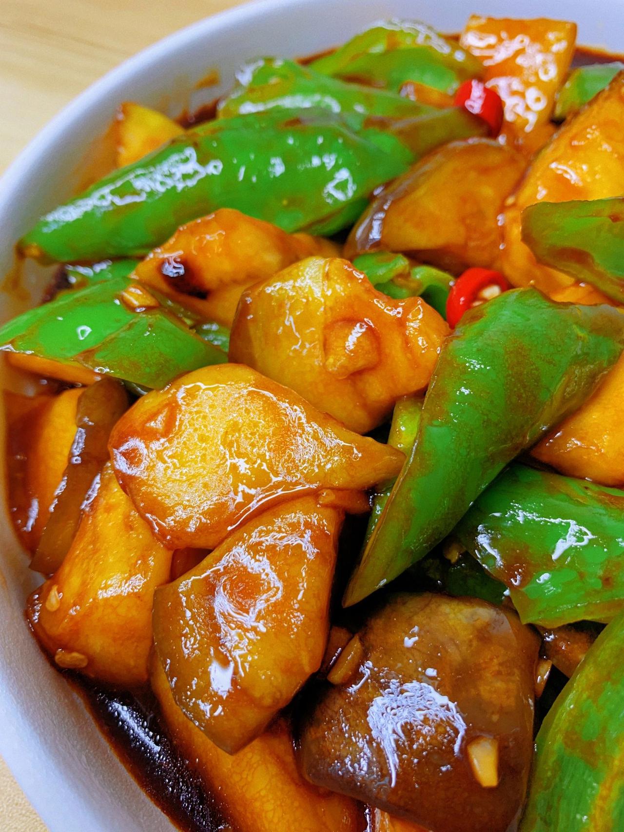家常红烧茄子,妈妈的秘制配方!简单美味 茄子红烧比肉还好吃,酱香浓郁太费米饭啦!不用油炸,营养美味又健康,上桌秒光!快手做法,浓郁酱汁盖在米饭上简直yyds! 食材:茄子,辣椒,蒜末,小米辣 料汁:2勺生抽,1勺老抽,1勺蚝油,半勺白糖,半勺盐,1勺淀粉,加半碗水搅拌均匀 做法:1、茄子滚刀切成块,加1勺盐腌制10分钟,然后清水洗净后挤出水分,加1勺淀粉抓拌均匀。 2、锅中热油下茄子、蒜末,有豆瓣酱的可以加半勺,但不宜过多,翻炒均匀后倒入料汁,中火下辣椒和小米辣翻炒,待汤汁收浓即可。