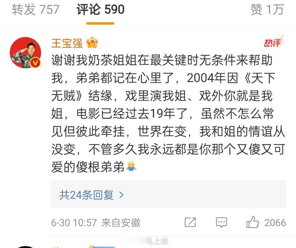 #王宝强 谢谢我奶茶姐姐#刘若英说,“世界复杂,人与人更复杂,所幸有像宝强这样的弟弟,让情感单纯简单。”我竟被她这段文字,看的有些感动。可惜善良的人,容易被人背叛!单纯的人,容易被人狩猎!简单的人,也不会为自己的电影找噱头炒作…不像消失的她,找准了性别这个大题,拼命营销,让人唾弃!《八角笼》这部宝强导的电影,有空我会去看看。