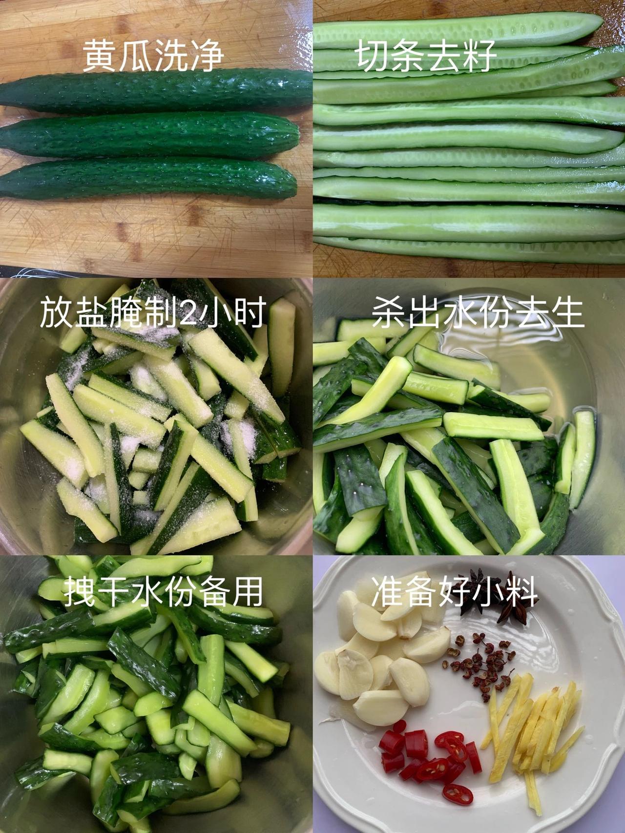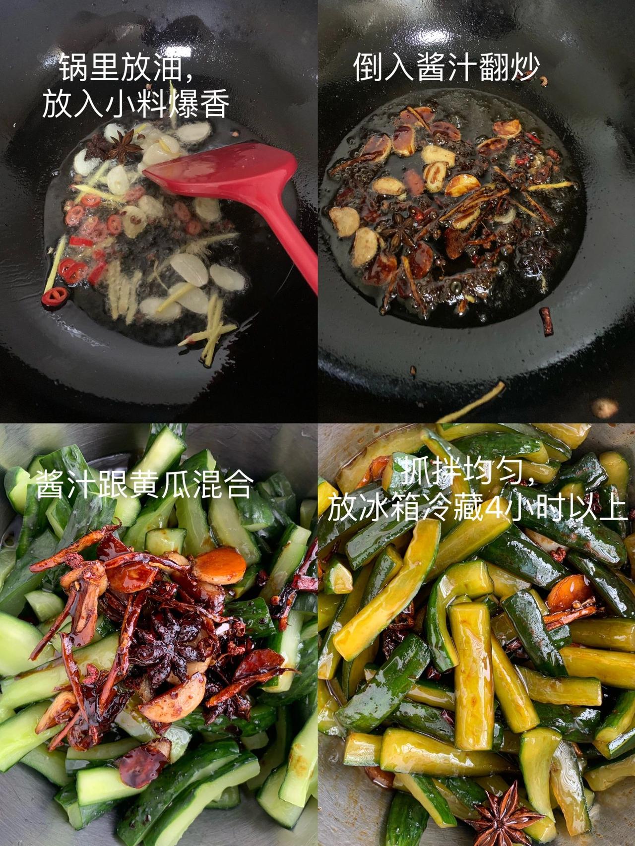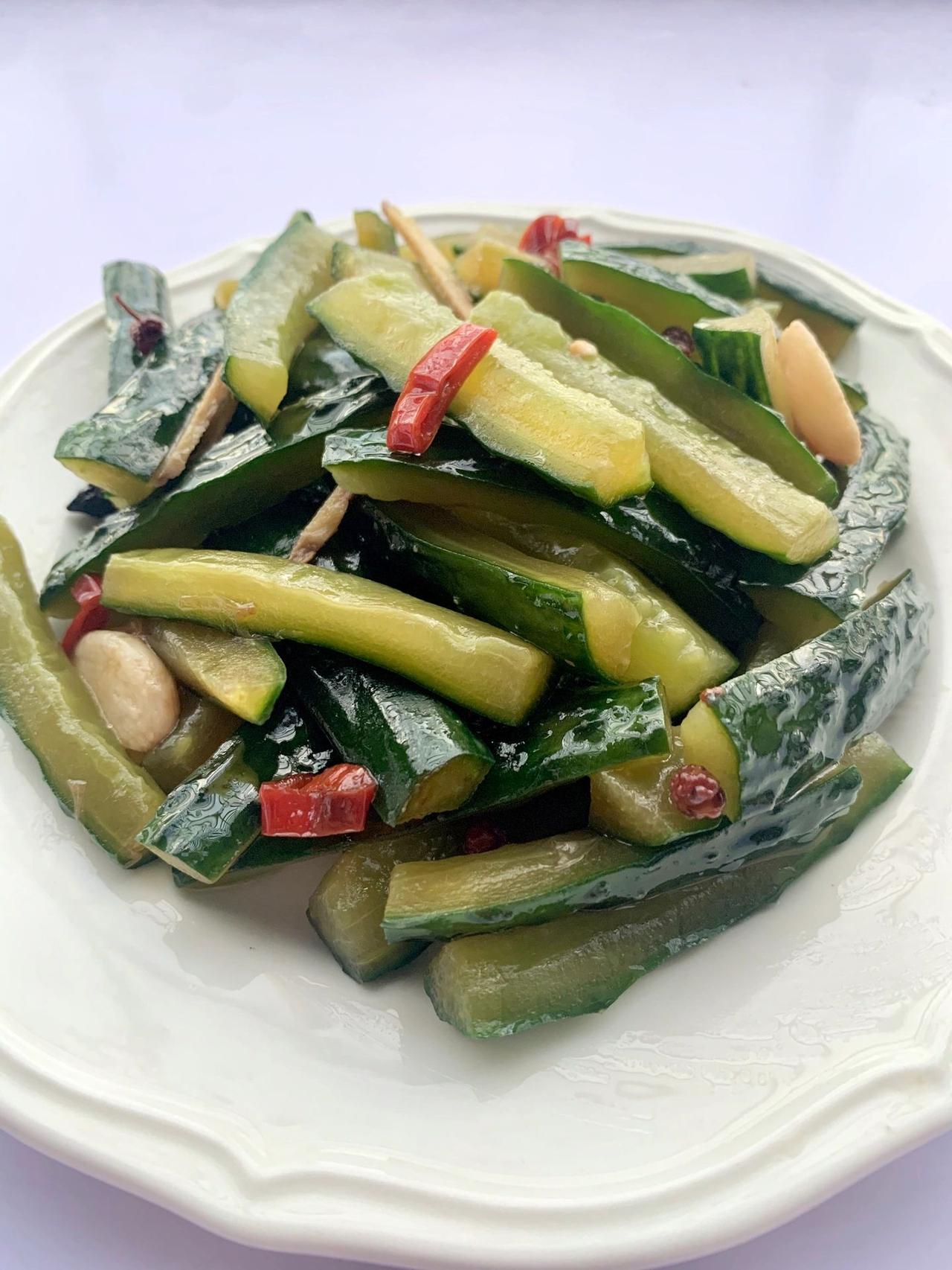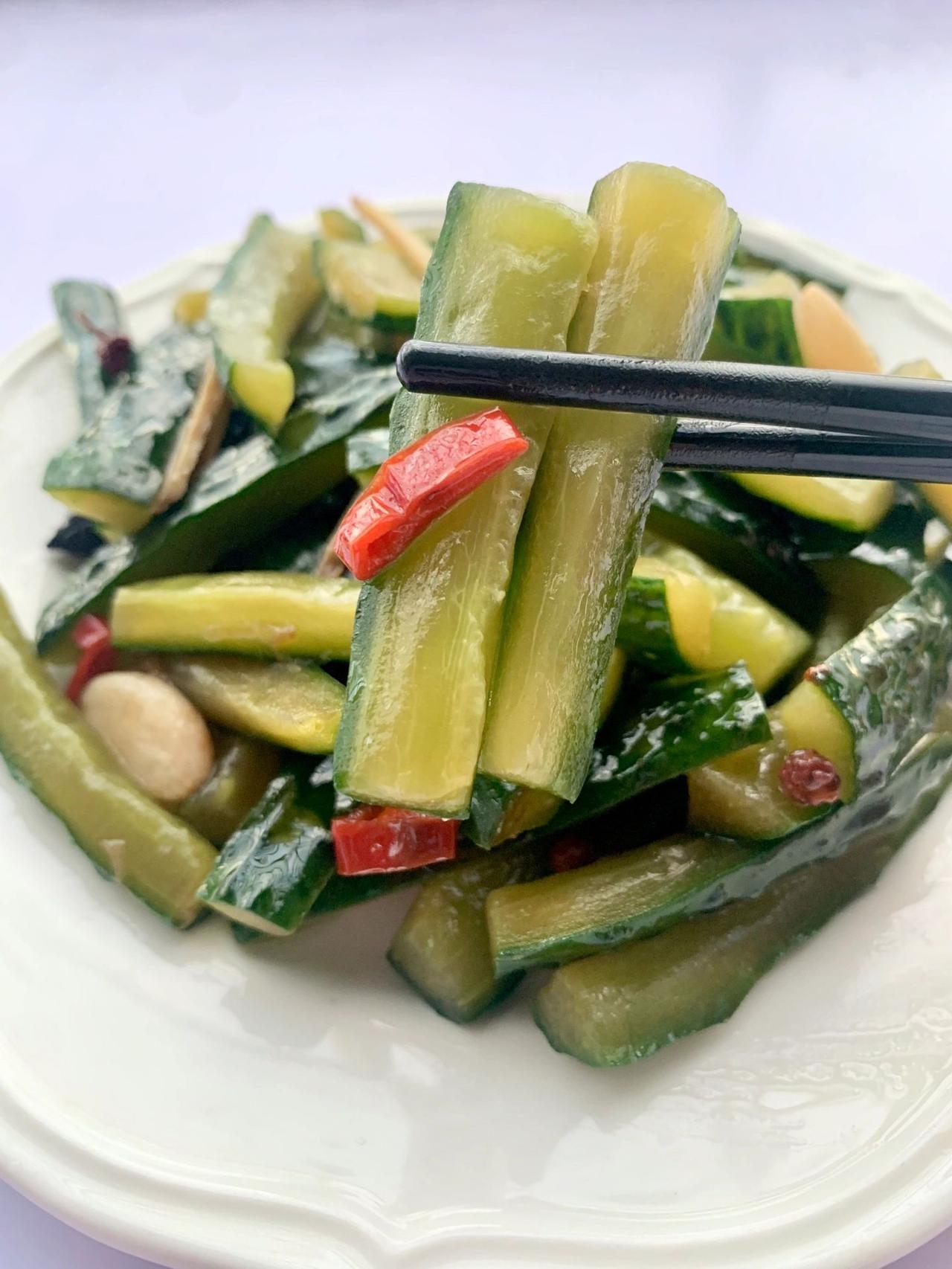 有了这个开胃解腻酱黄瓜,一口气喝了三碗粥 酸辣开胃,爽脆可口,超级下饭神器 材料:黄瓜3条,红椒1根,蒜头5瓣,姜片3片,花椒小把 做法:1.黄瓜洗净切开,去掉籽,切成指头大小的小段,下盐巴腌制2小时去生,然后再用水清洗干净,拽干水份备用 2.准备蒜头,姜,花椒,红椒备用,准备酱汁:醋3勺,生抽3勺,老抽1勺,蚝油1勺,白糖1勺备用 3.锅里放油烧热,放入蒜头,姜,花椒,红椒爆香,放入酱汁爆香,关火让其自然冷却 4.酱汁倒入黄瓜中,抓拌均匀,放入冰箱冷藏4小时以上即可,也可以晚上做,隔天早上吃 5.入味后也可以清洗,也可以直接吃
