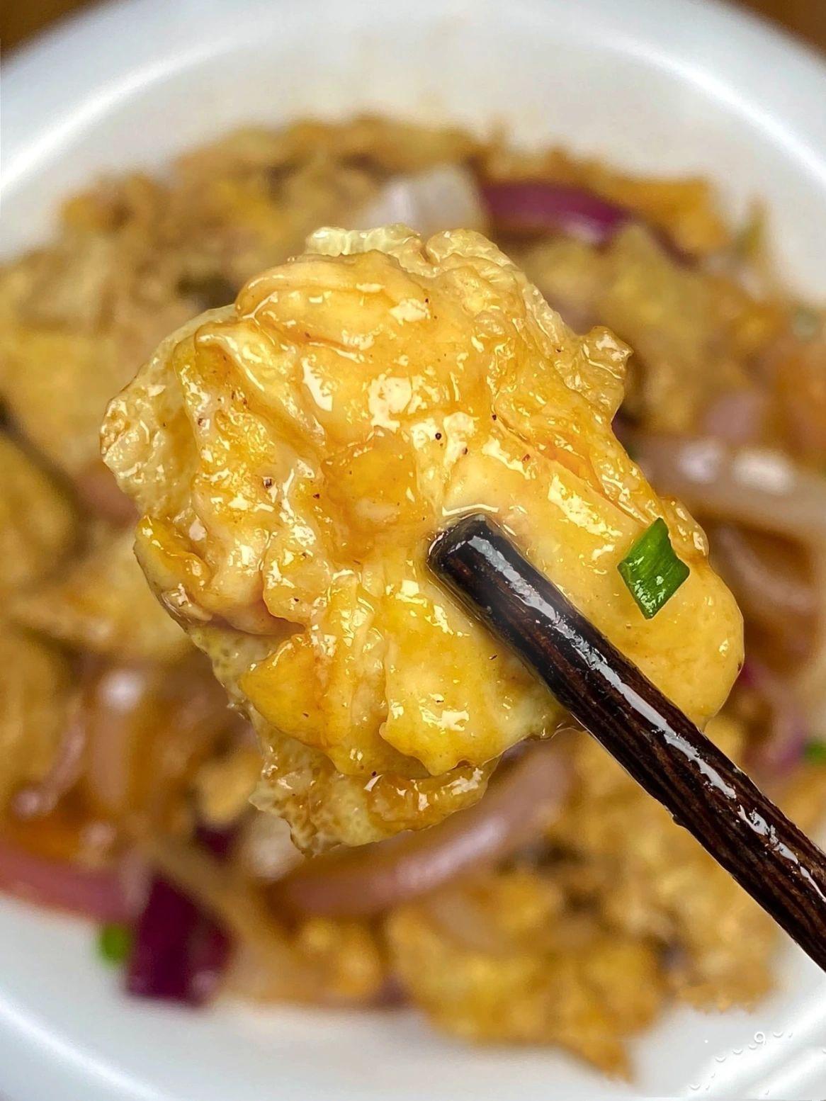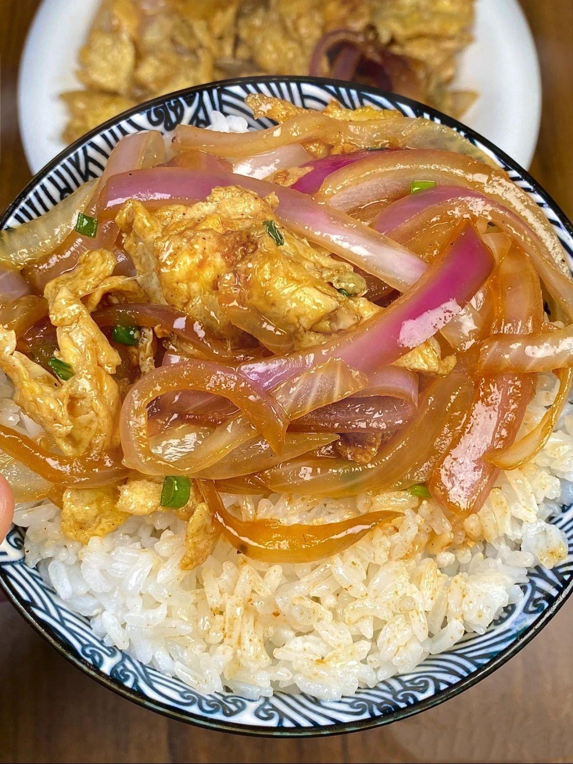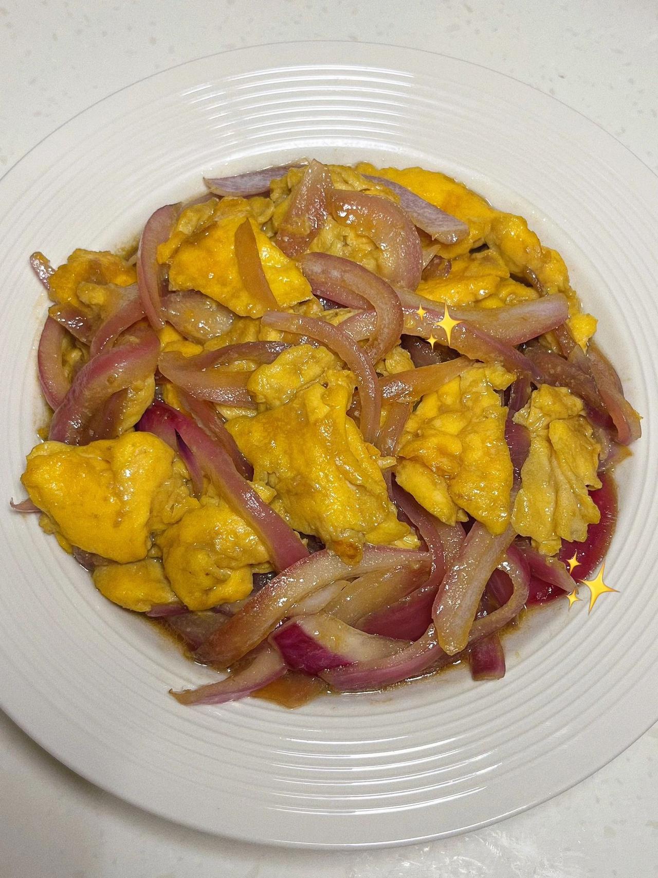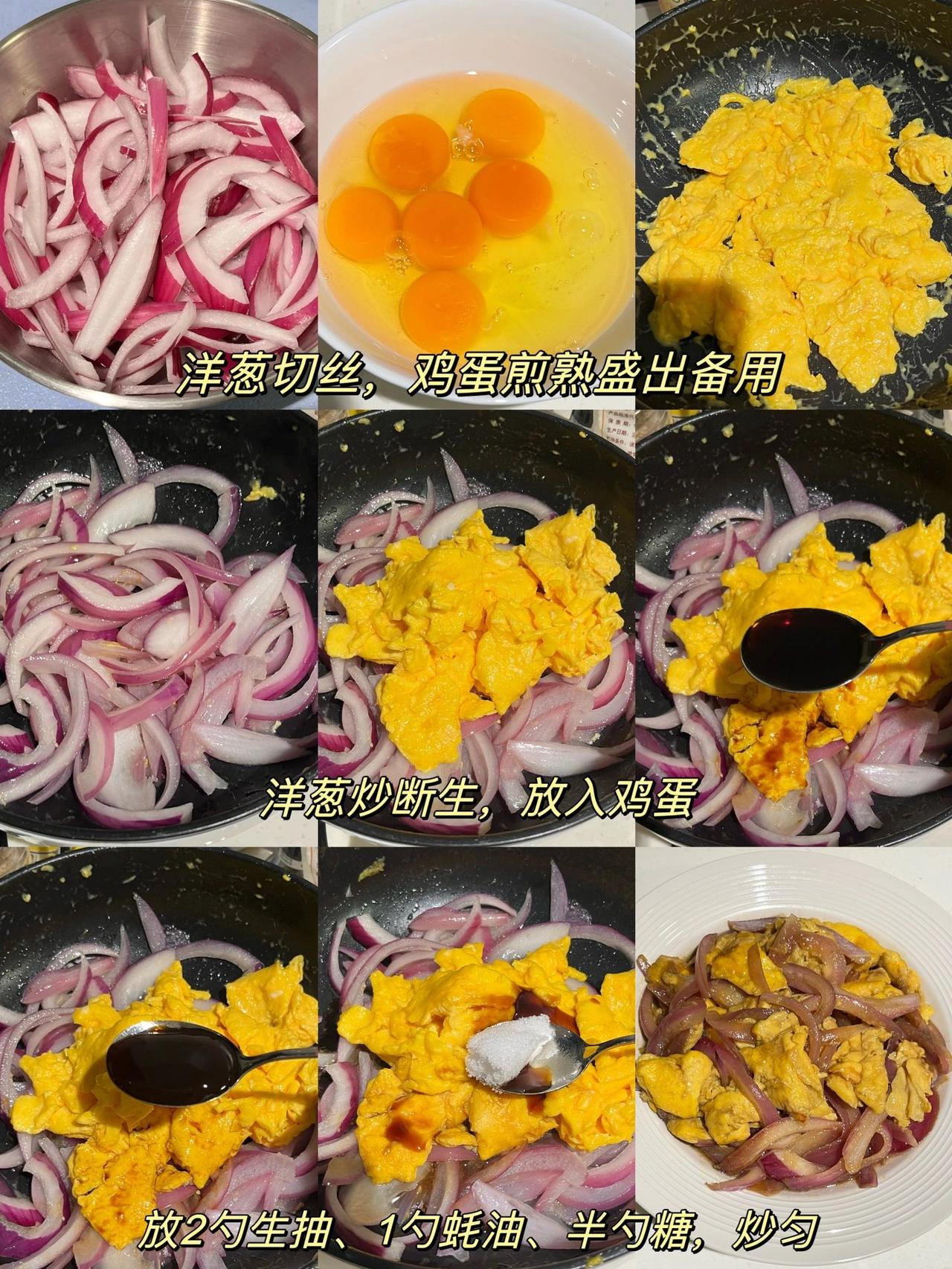 洋葱炒蛋好吃到破防!家里的米饭又遭殃 洋葱和鸡蛋搭配在一起真的泰香啦,巨下饭! 酱汁浓郁拌米饭,泰好吃啦,洋葱吃起来很鲜甜,快试试吧~ 食材:鸡蛋4个、洋葱1个 做法:1、洋葱切丝,鸡蛋煎熟盛出备用,洋葱炒断生,放入鸡蛋 2、加2勺生抽、1勺蚝油、半勺糖,炒匀即可,出锅撒上葱花 如图所示哦个~几分钟搞定