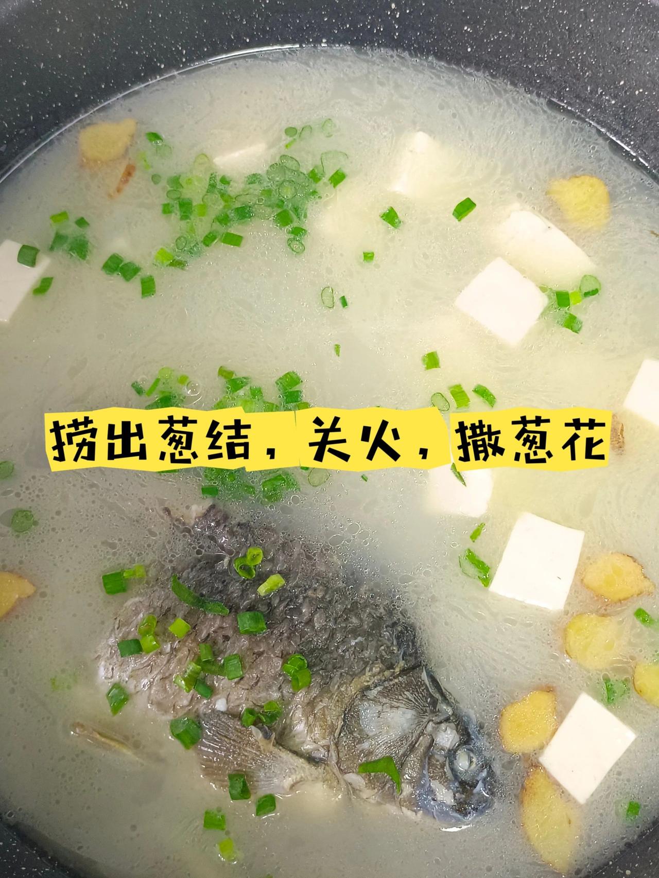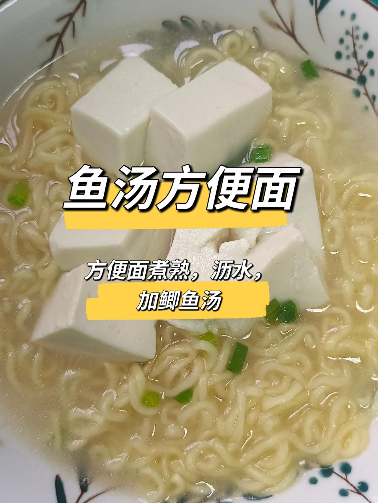 一条鱼最后的温柔,奶白鲫鱼汤 第二次做鱼汤,也是跟着网上学的菜谱,比第一次做的好看些,不过水放多了,盐放少了,天热了,多喝点鱼汤,挺好,清淡不油腻。 需要的食材见图2 制作过程: 1、煎鱼:鲫鱼两面中小火煎至金黄,为了保证鱼的完整,煎完一面再煎另一面,然后丢入姜片,小火炒香 2、倒开水:倒入一壶热开水,没过鱼身几厘米(汤汁奶白的关键),放葱结。加盖大火焖煮5分钟,转中火继续焖煮10分钟 3、加豆腐:加入豆腐,中小火煮10分钟,出锅前3分钟左右加盐 4、收尾:捞葱结,关火,撒葱花 因为煎鱼的时候到处溅油,所以没有拍照了,注意煎鱼之前一定要用厨房纸吸干表面的水分啊;加完盐可以试喝一下,觉得淡了可以再加一点,但是注意少量多次,汤还是喝清淡点比较好。 最后一张图是鲫鱼汤方便面,味道一般