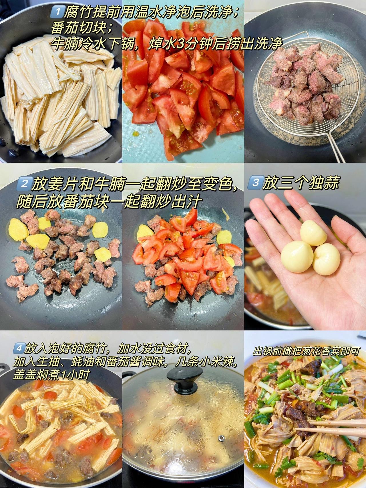 周末上岗的家庭主夫,花点时间的二人食 周末了,家庭主夫总算上岗了,不得不说厨艺这玩意是真的需要天赋,论家里有一位无师自通的狗子 1、番茄腐竹牛腩煲 周末适合搞点花时间但又简单的菜,新鲜牛腩炖完之后还是有股很香的奶味,搭配上番茄和小米辣,酸酸辣辣很开胃,如果不是专门的炖锅,水就要放多点,因为很容易蒸发干,下锅焖煮后设定好时间就可以去煲剧了~ 2、白灼花螺 吃过很多种花螺的做法,最喜欢的还是白灼,能够尝到新鲜海鲜的鲜甜,搭配芥末酱油真的一绝 白灼花螺的时间控制在5-10分钟之间,水开后放入焯水5分钟是我喜欢的程度~ 3、蒜蓉炒通菜 真的很喜欢吃空心菜也就是通菜,只需要放蒜蓉和青菜大火爆炒,接着调味一点蚝油就可以炒的很好吃~