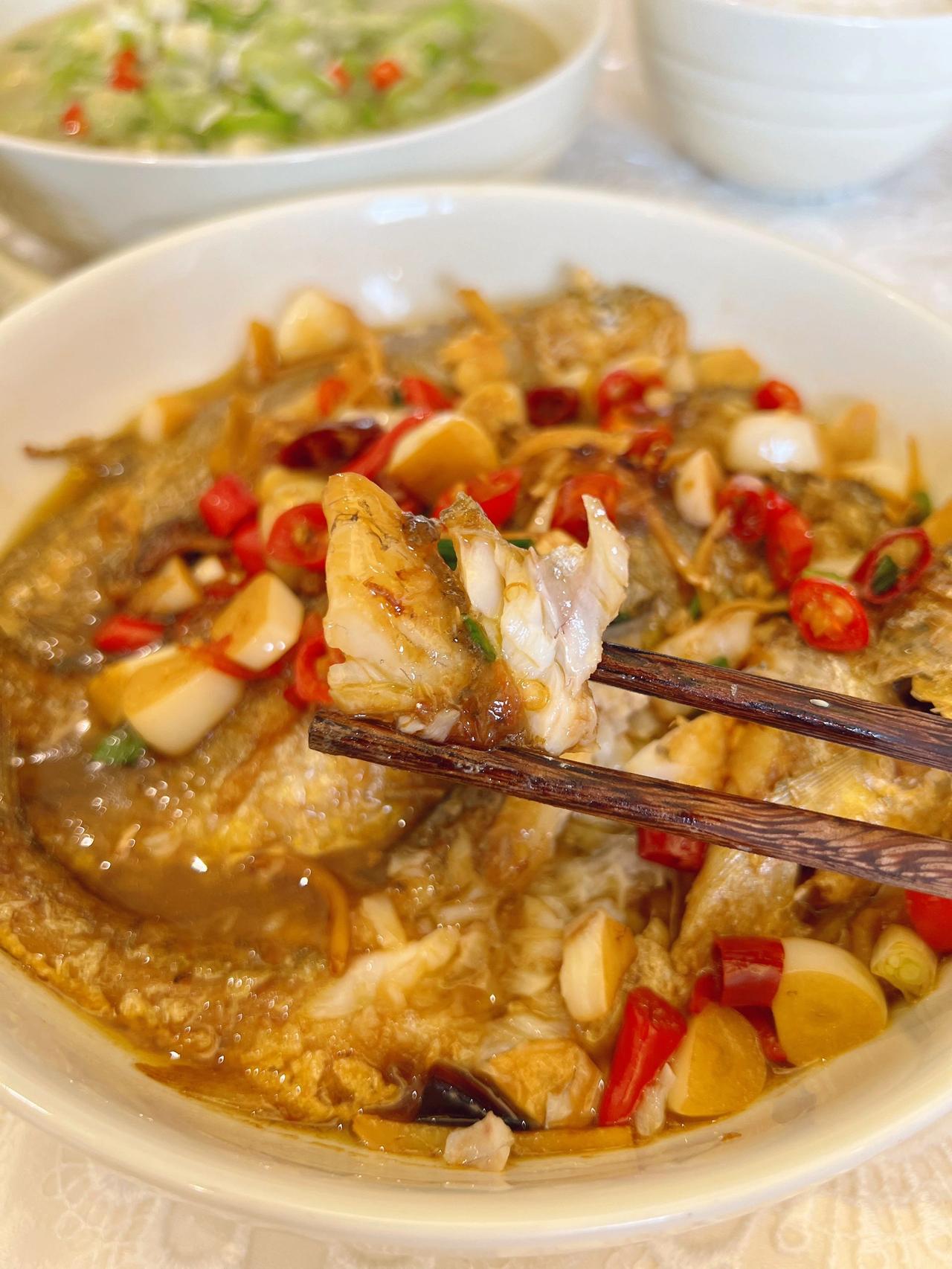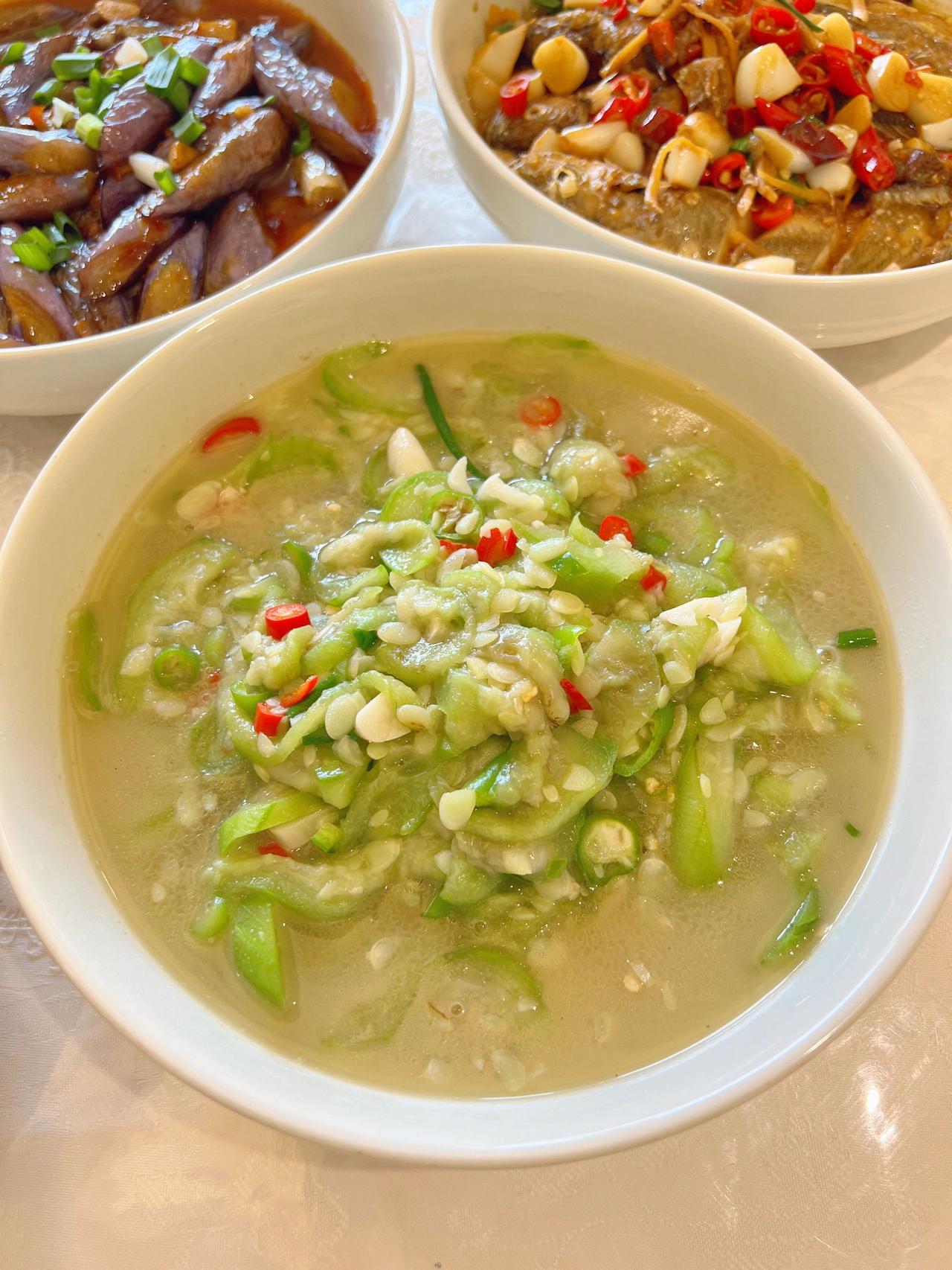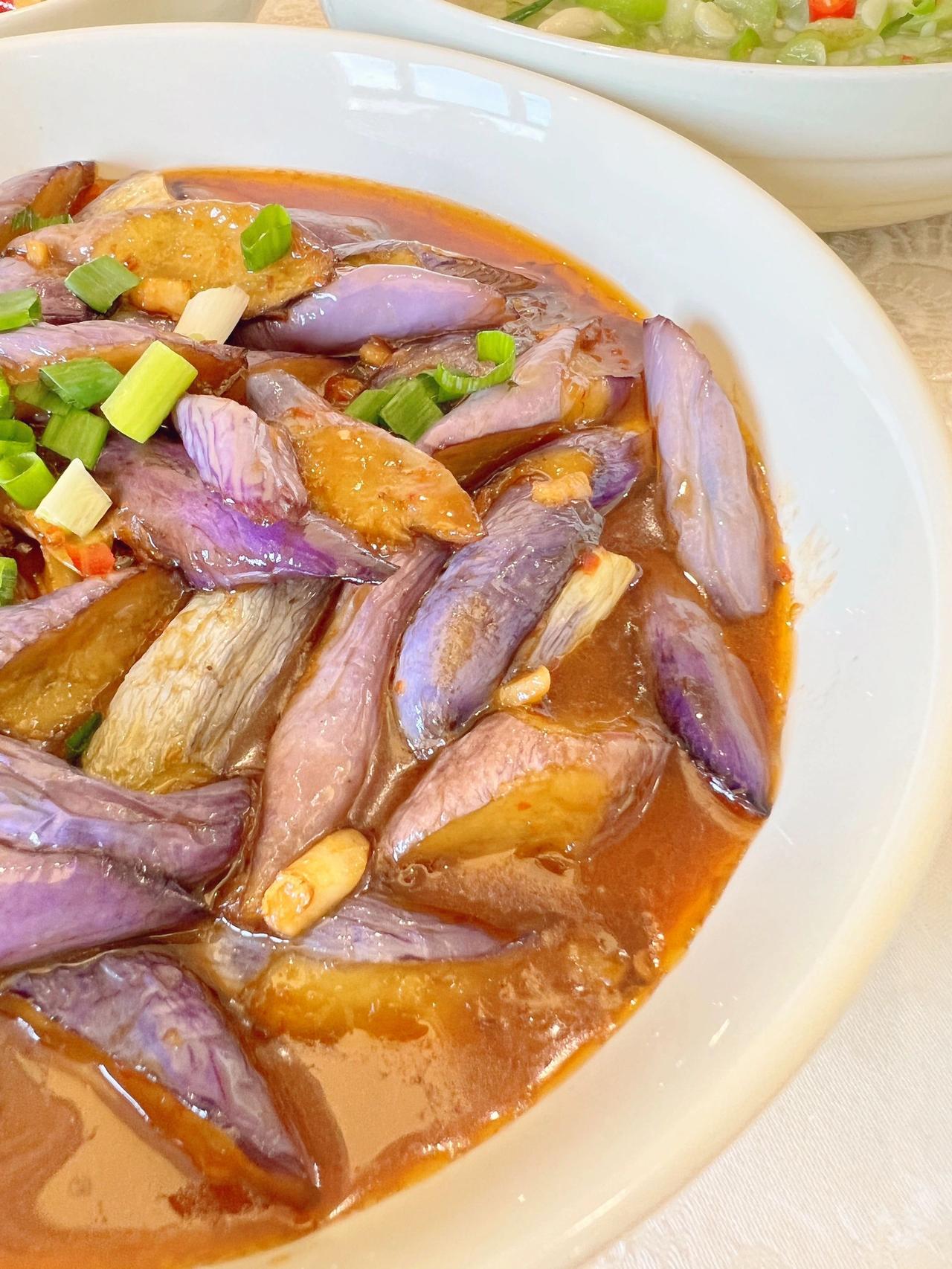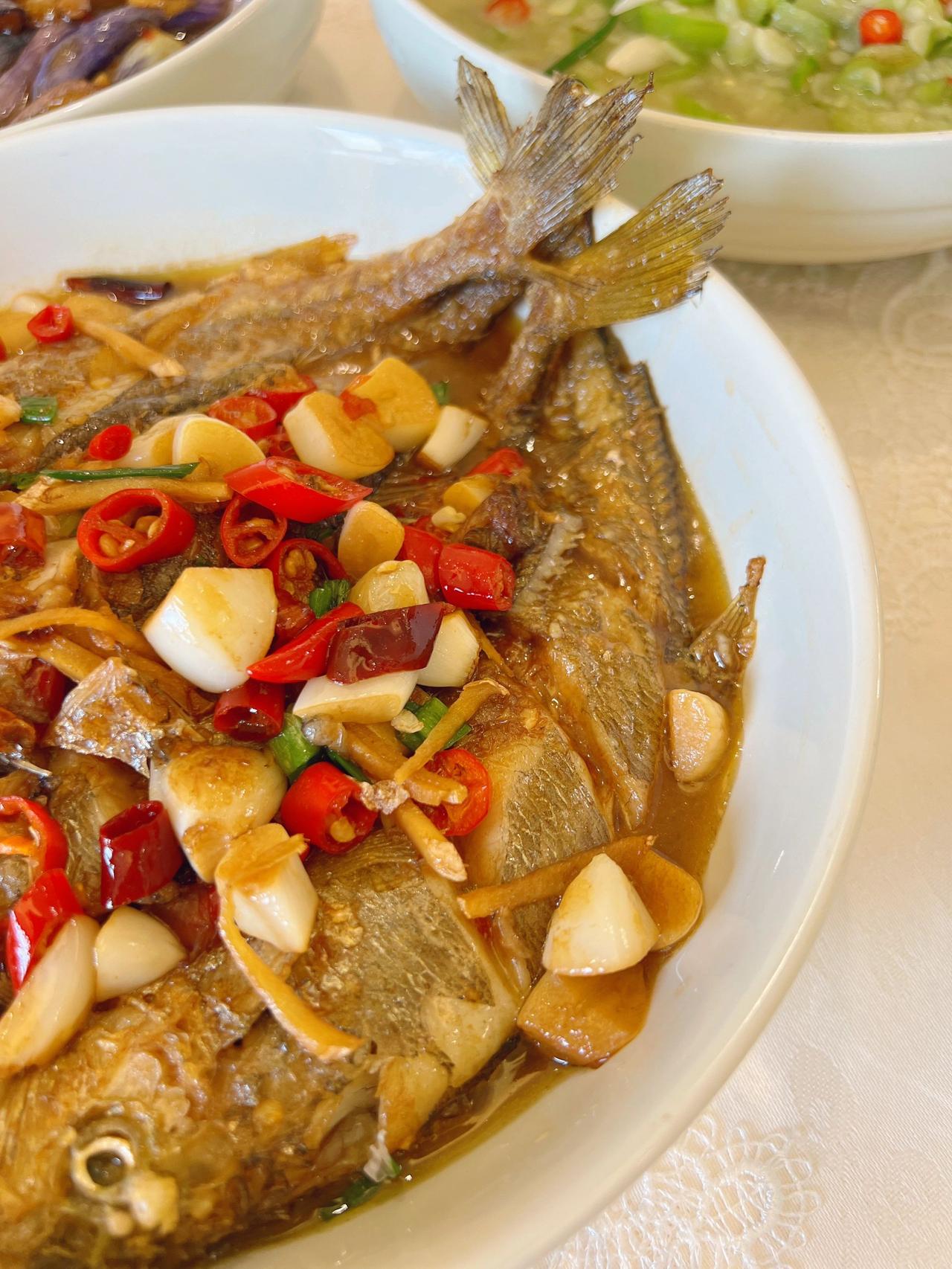 愿七月的你不纠结,少俗虑,随遇而安。 以一颗初心,安静地慢煮生活。口号还是茄子、豆角、丝瓜、葫芦和蕃茄!今天茄子换烧法了! 今日菜单! 酱爆茄子 主料:(茄子) 配料:(肥肉丁+蒜泥+姜丝) 1.茄子切滚刀块放生粉抓拌均匀! 2.油热放入炸8-10秒左右捞出备用! 3.肥肉丁爆出油放蒜泥、姜丝、一勺郫县豆瓣酱翻炒几下! 4.放茄子翻炒均匀,加料酒、盐、生抽、水焖煮3分钟左右 5.收汁放鸡精葱花即可! 盐要不要放根据自己的口味来,放了生抽和豆瓣酱咸度也差不多了!还有茄子可以不放生粉直接炸,我是放了,但炸之后看着感觉放了个寂寞,如果不放生粉,煮好收汁的时候放点红薯粉水芶个薄芡会看着味道更浓郁!我是炸的时候拌了生粉,所以煮好汤汁已经挺浓了,就不要再芶芡! 炒丝瓜 主料:(丝瓜) 配料:(青红椒+蒜泥) 1.丝瓜切薄片,猪油热放入丝瓜翻炒2分钟左右! 2.加盐、水煮3分钟,加青红椒、蒜泥、鸡精翻炒熟透即可 我个人烧菜喜欢放肥肉丁或猪油,不喜欢的直接换油即可!还有关于丝瓜放水煮的问题,可以直接炒熟不放水,我喜欢放是因为家里人喜欢用丝瓜汤拌饭,所以基本次次都加水煮一会! 红烧黄鱼 主料:(四条小黄鱼 ) 配料:(蒜仔+姜+干辣椒段+小米椒+葱花) 1.油热鱼煎至两面金黄!放入所有配料(除葱花外) 2.加料酒、盐、生抽、老抽焖半分钟! 3.加水煮 7-8分钟,收汁加鸡精、葱花! 今天鱼超市里买的29.8一斤,四条31块钱!鱼肉很嫩滑!煎鱼不碎,记得油热撒点盐,鱼放下去不要着急翻面!煎一两分钟动锅鱼动再翻面!