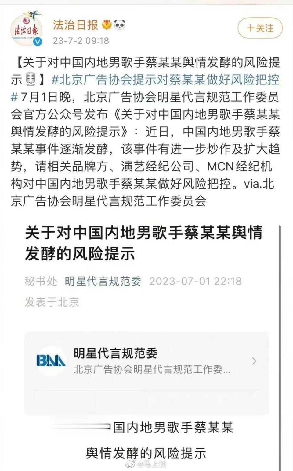 央视下架所有视频,偶像练习生跑男没了演员表,所有品牌广告被官方提醒做好风险把控…蔡徐坤到底是真犯事了?还是前面约会导致打胎事件的延续?感觉打胎这件事也不会引起这么大的反应啊,坤坤这情况似乎不妙啊[二哈]
