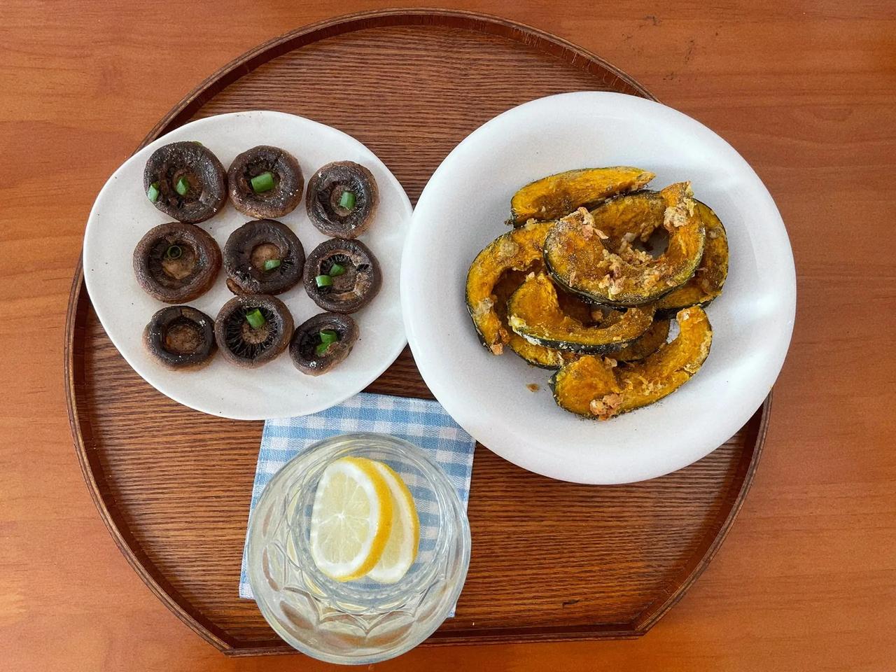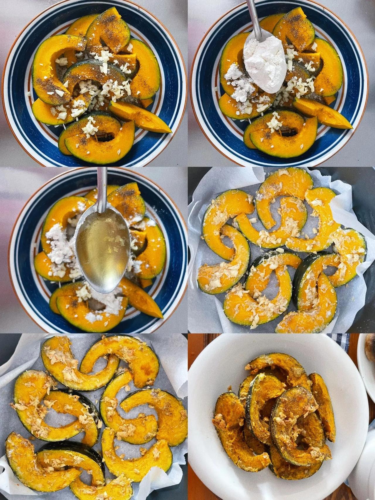 分享素食记·南瓜这么做太好吃了吧 买了个小南瓜,在想是做个南瓜炖土豆还是什么,最终懒了图方便做了个蒜香南瓜,超好吃! 蒜香南瓜🎃 🌟做法:把南瓜切成小块,放入蒜末、盐、一勺面粉、一勺油、胡椒粉拌匀。空气炸锅180度10分钟,翻面再烤5分钟,真的很好吃😃 香煎口蘑🍲 🌟做法 口蘑洗净去蒂,底部朝下煎2分钟,翻过来再煎3、4分钟左右,待口蘑煎出满满汁水,撒上黑胡椒、盐、葱末即可出锅。