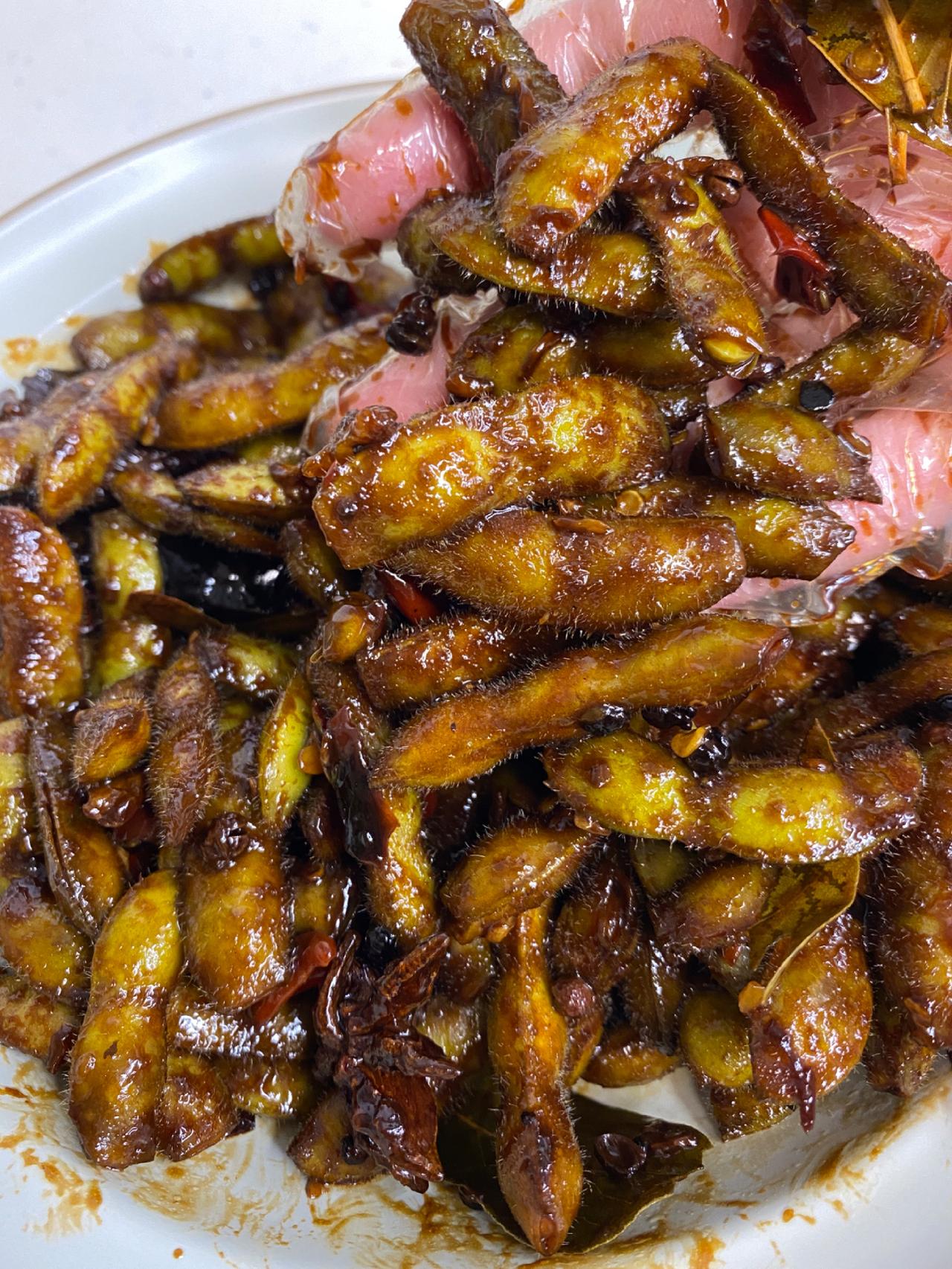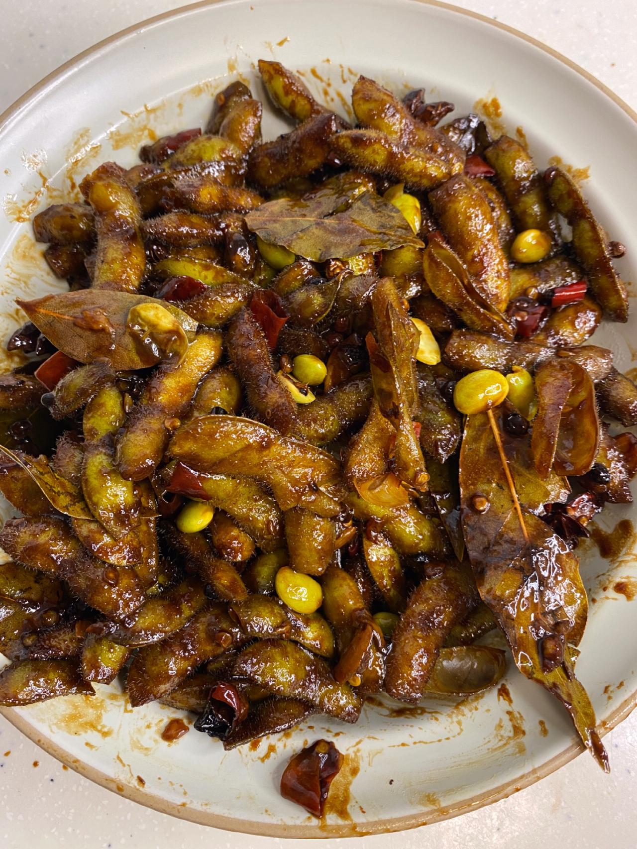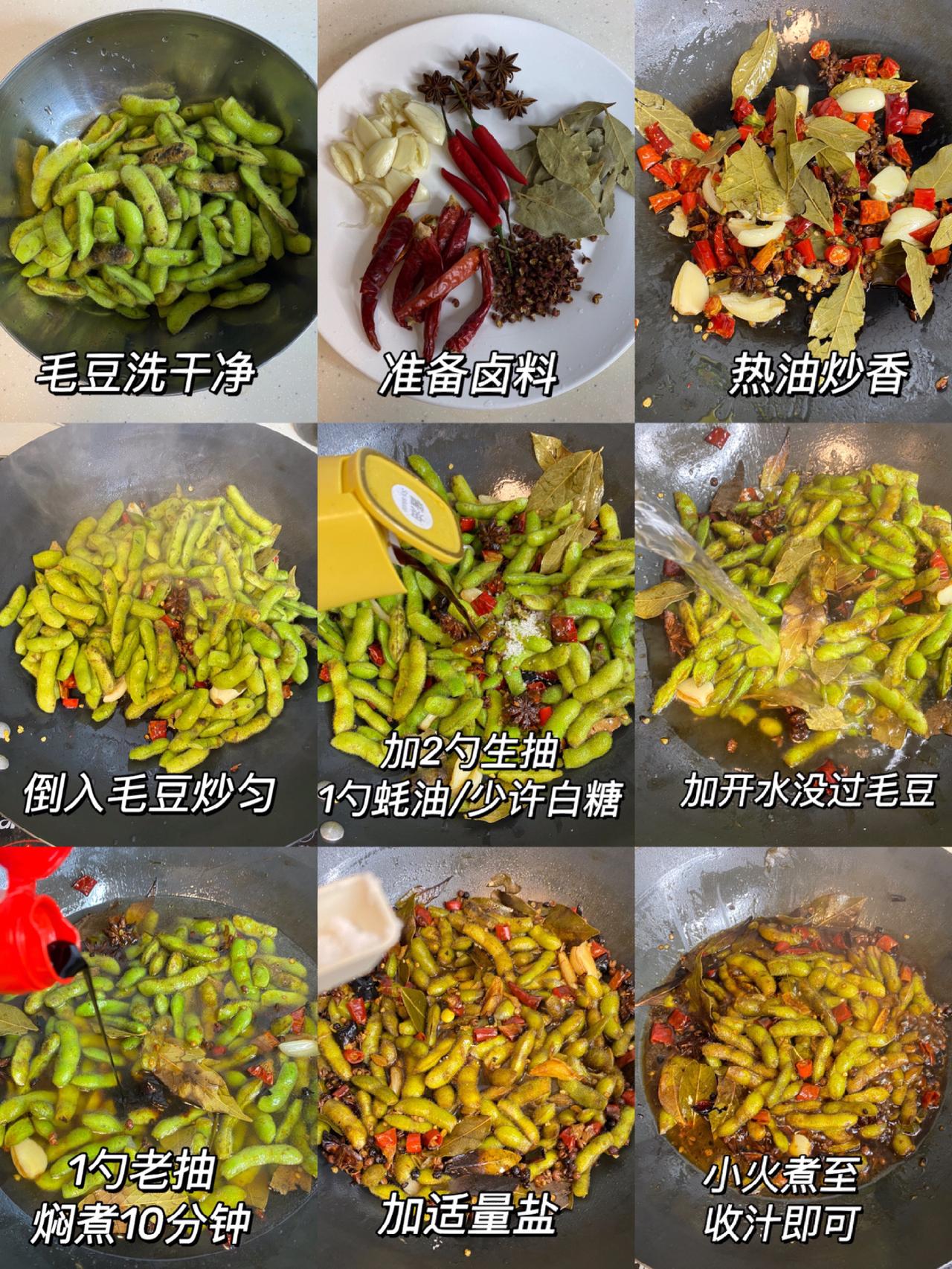 我妈做了半辈子的秘方,巨巨巨好吃!! 窝家煲剧必备的解馋香辣卤毛豆!颗粒饱满,香辣入味,比路边摊还好吃 姐妹们喜欢吃毛豆的一定得试试呀!! 食材:毛豆 做法:1、毛豆加清水盐搓洗干净备用 2、热油倒入香叶、八角、干辣椒、花椒、小米辣、蒜粒炒出香味 3、倒入毛豆翻炒匀,加一勺白糖,2勺生抽,1勺蚝油,倒入热水没过毛豆 4、加1勺老抽加盖焖煮10分钟,然后加盐转小火收汁即可 Tips:不喜欢吃辣得姐妹记得少放点小米辣!! 真的很香,喜欢更入味的话可以放一晚上再吃~