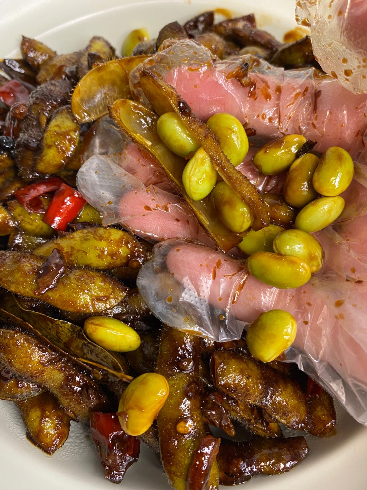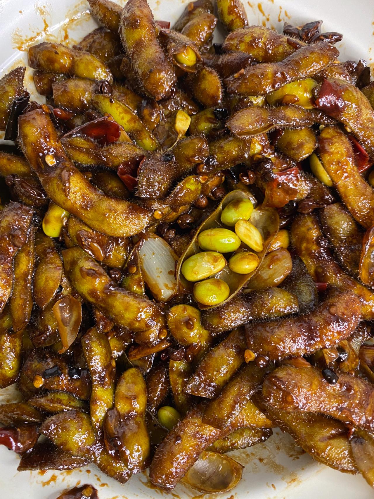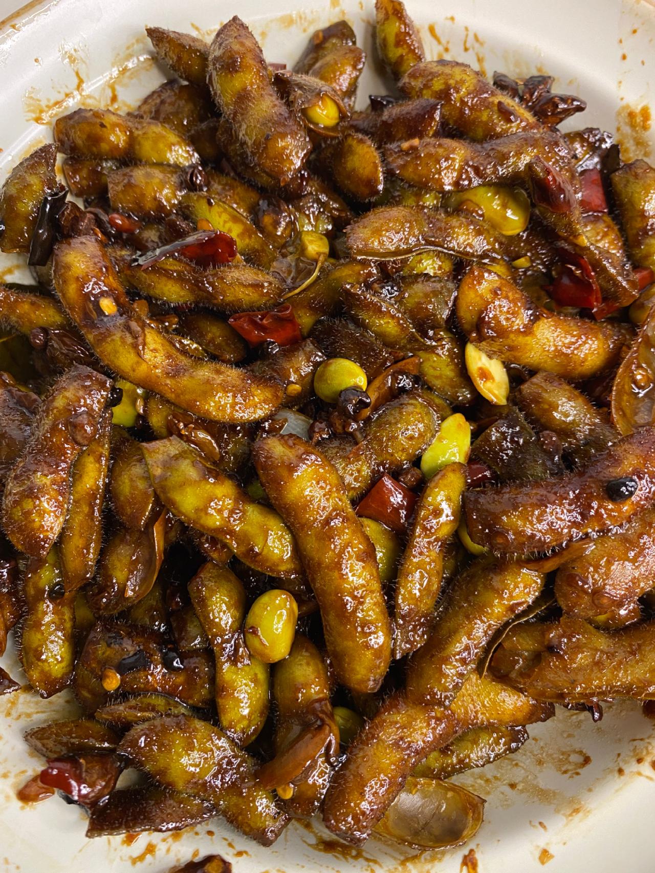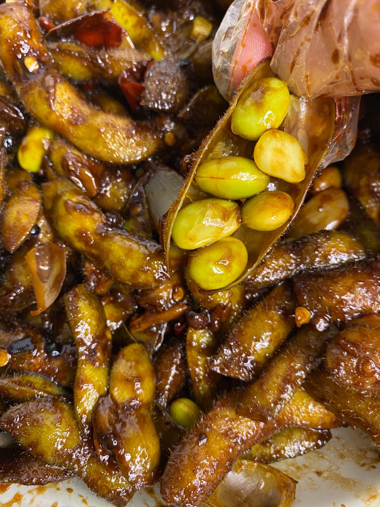 我妈做了半辈子的秘方,巨巨巨好吃!! 窝家煲剧必备的解馋香辣卤毛豆!颗粒饱满,香辣入味,比路边摊还好吃 姐妹们喜欢吃毛豆的一定得试试呀!! 食材:毛豆 做法:1、毛豆加清水盐搓洗干净备用 2、热油倒入香叶、八角、干辣椒、花椒、小米辣、蒜粒炒出香味 3、倒入毛豆翻炒匀,加一勺白糖,2勺生抽,1勺蚝油,倒入热水没过毛豆 4、加1勺老抽加盖焖煮10分钟,然后加盐转小火收汁即可 Tips:不喜欢吃辣得姐妹记得少放点小米辣!! 真的很香,喜欢更入味的话可以放一晚上再吃~