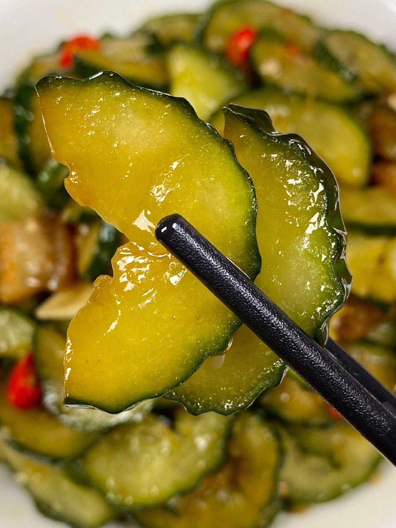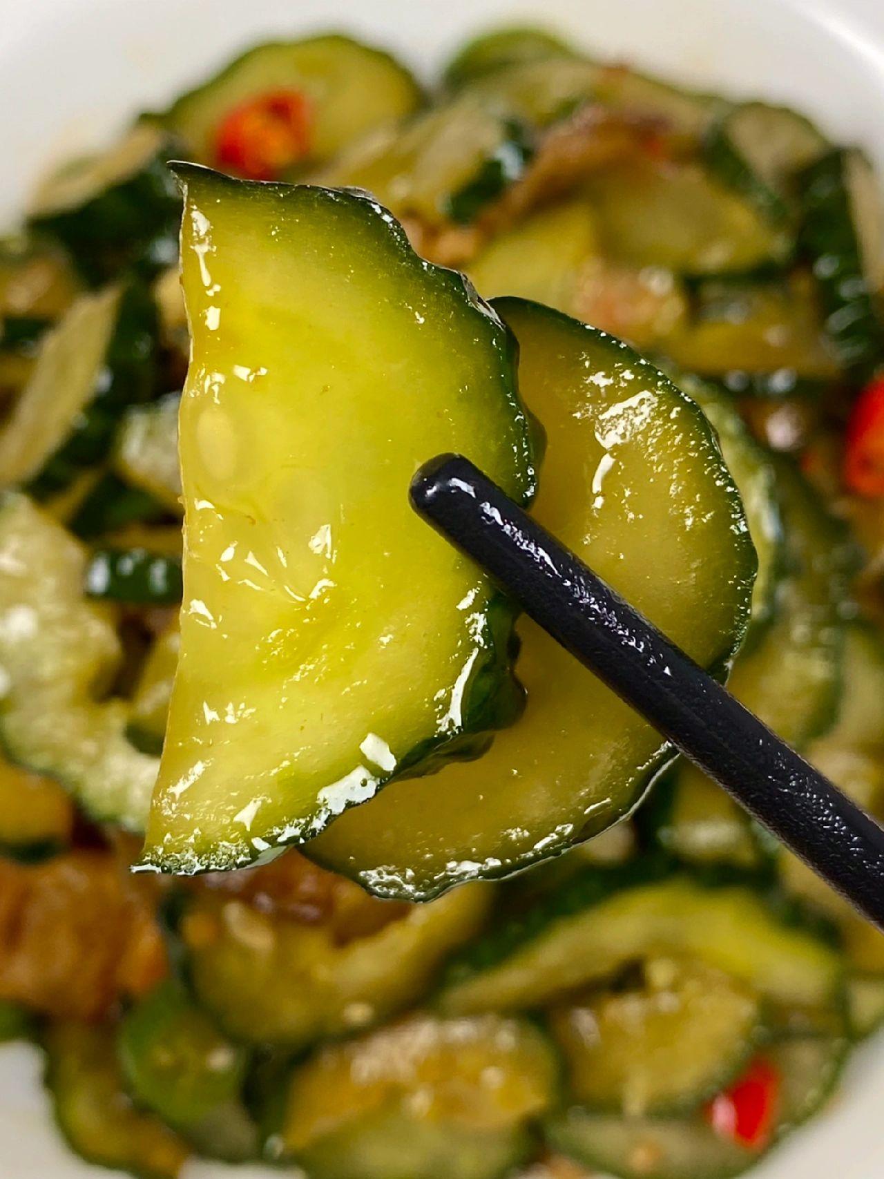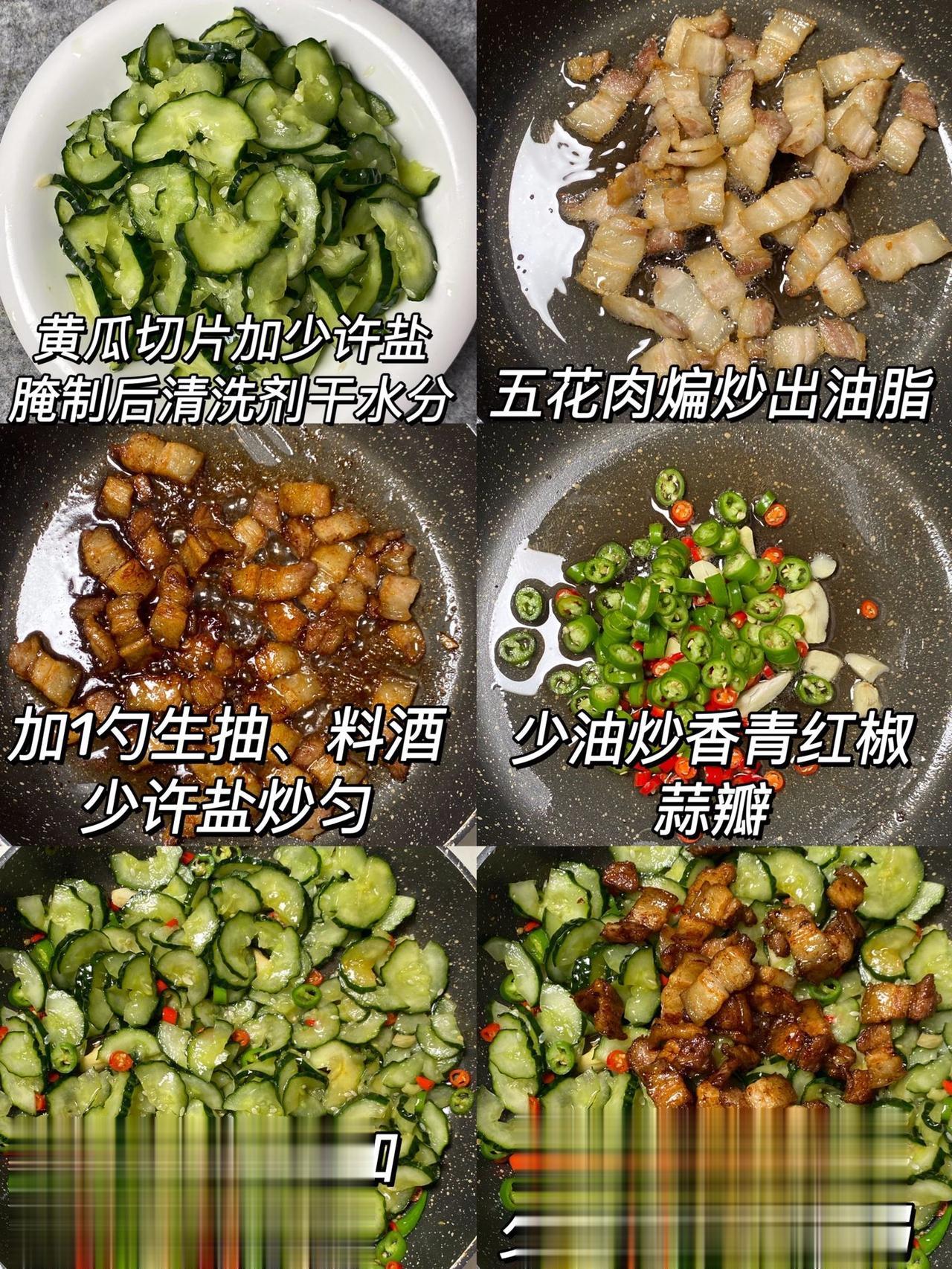 今天吃黄瓜小炒肉!这样做出来的黄瓜很脆,香辣下饭!就这一盘今晚又多吃了两碗饭哈哈 做法简单,大家快试试~ 食材:黄瓜、五花肉、青红椒、蒜 做法:1、黄瓜切片加少许盐腌一会,腌出水分后用清水清洗几遍,挤干水分 2、少油倒入五花肉煸炒出油脂,加1勺生抽料酒、少许盐炒匀盛出,少油倒入青红椒蒜瓣炒香 3、倒入黄瓜翻炒加少许盐,再倒入五花肉翻炒均匀加入少许白糖即可出锅