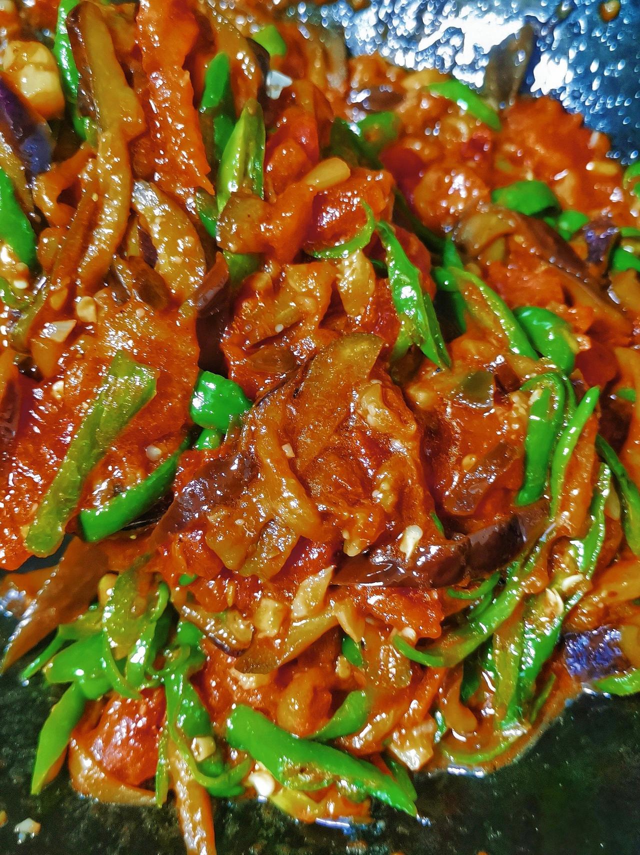 |最近看到一道山西菜—茄辣西 名字是真的很奇怪哈哈;但是真的!!出乎意料的好吃 食材:茄子,西红柿,青椒 步骤:1、茄子切丝,青椒切丝,番茄切滚刀块备用。 2、热锅烧油先把茄子炒软,捞出备用。 3、另起锅烧油放入蒜末炒香,倒入番茄,放少量盐,翻炒软烂,倒入炒软的茄子。 4、翻炒均匀后倒入青椒丝,放入老抽,生抽,蚝油,盐和味精调味,翻炒均匀,青椒丝断生即可出锅。 小贴士:翻炒西红柿放点盐更容易出沙。 想要汤汁拌饭可以在放入调味料后加点水,让他咕噜一会~ 看起来像是大乱炖,卖相也不好 但是!!超级下饭;比番茄炒蛋都更下饭! 用来拌面了,就馒头都巨好吃!