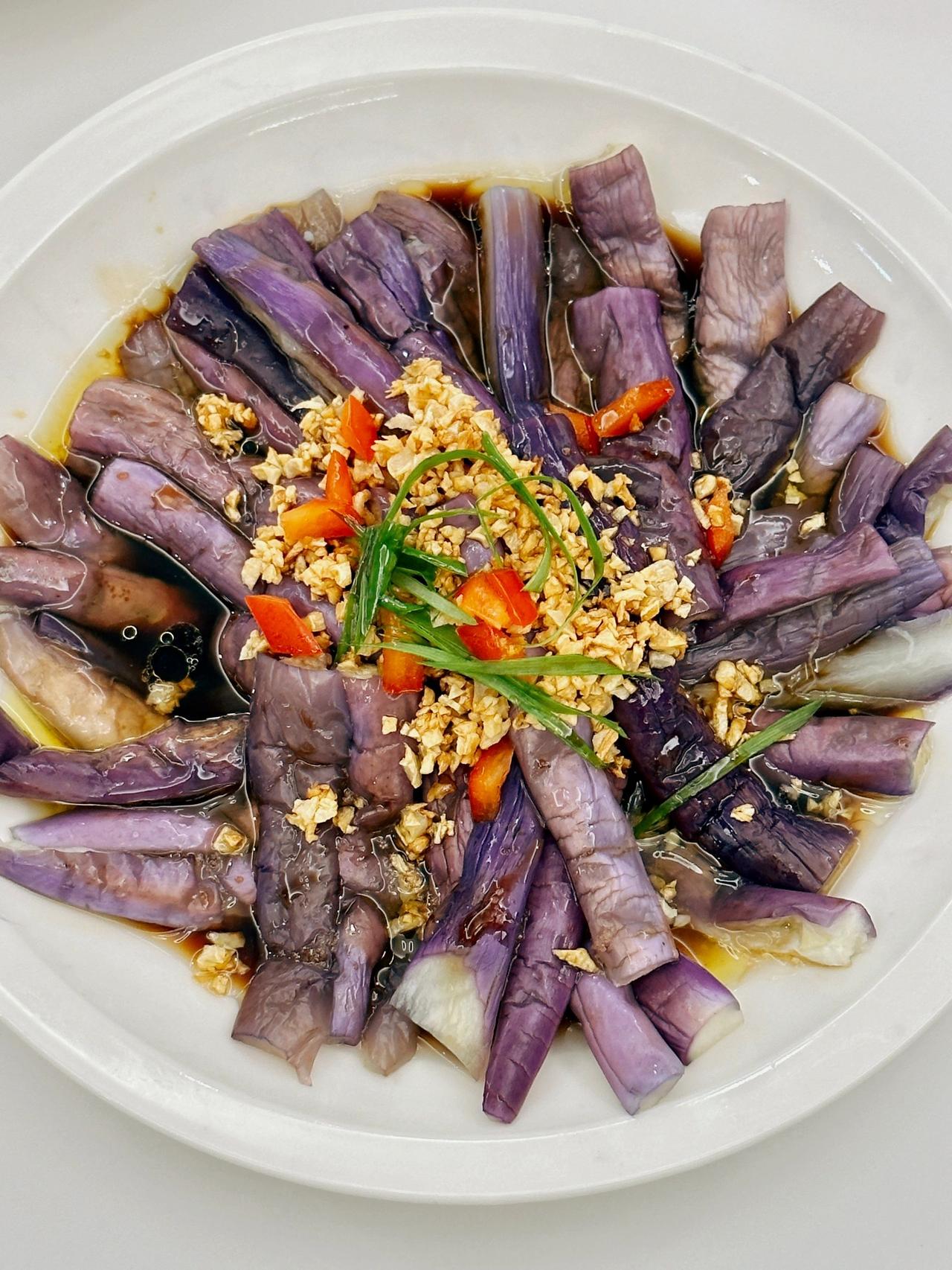 这么做茄子简单又好吃,教你做凉拌糖醋茄子 夏天不想炒菜怕油烟,不妨做个凉拌茄子,温州家常糖醋油口感,入口那一刻就会深深喜欢上这个道菜! 很多温州人都喜欢把茄子蒸起来吃,那么酱汁就是最关键的一步了,怎么做出不会变色的茄子又好吃,做法在图片里,收藏起来吧 凉拌茄子 材料:长茄子 酱汁:酱油,白糖,米醋,香油,(麻椒油可不加) 做法:1、长茄子切三段对半后再对半开 2、泡冷盐水10分钟取出 3、水开后放上蒸架,将茄子摆入锅内,大火蒸8-10分钟 4、用油炒点蒜末,切点葱椒一起撒在茄子上 5、把酱汁淋上去即可