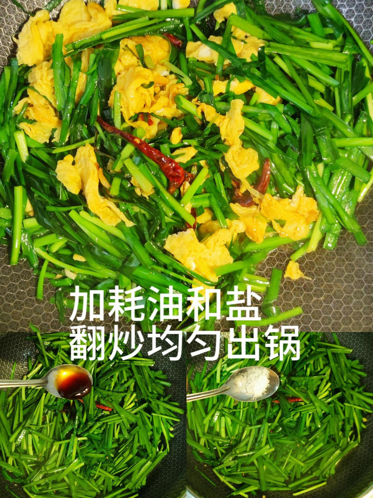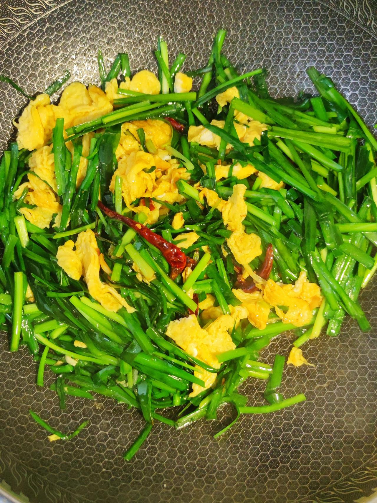 养肝菜!韭菜炒鸡蛋,赞 肚子饱了,心情就好啦!愉快周末,由韭菜炒鸡蛋开始啦! 韭菜炒鸡蛋是一道简单易学的家常菜品,口感鲜美,营养丰富,我不敢说我的做法就是最好的,但是每次炒出来圆酱都光盘,直呼美味。 韭菜鲜嫩入味不出水,鸡蛋滑嫩超好吃,赞! 所需食材:准备韭菜1把,鸡蛋3个,大蒜2瓣,干辣椒段适量。 具体做法:1、韭菜苔洗干净切段备用。 2、鸡蛋打散在碗里,加入适量盐。调成鸡蛋液。 3、锅里放入适量油,油热后放入鸡蛋液炒成鸡蛋块,盛出备用 4、用锅底余油爆香干辣椒和大蒜丝 5、放入韭菜翻炒均匀,加入蚝油,翻炒至韭菜断生。 6、倒入之前炒好的鸡蛋块翻炒均匀,加入适量盐出锅 咕嘟咕嘟,香气十足,入味还不腥,鲜嫩可口,特别好吃 小tips:1.做韭菜炒鸡蛋时,等韭菜炒到半熟时放食盐,就可以防止韭菜发黄出水 2.炒韭菜时,一定要大火爆炒,而且还需要持续不断地翻炒,这样可以防止少许韭菜炒得过老,而多大量的水! 3.蛋液里面加少许料酒,可以起到去腥的功效。