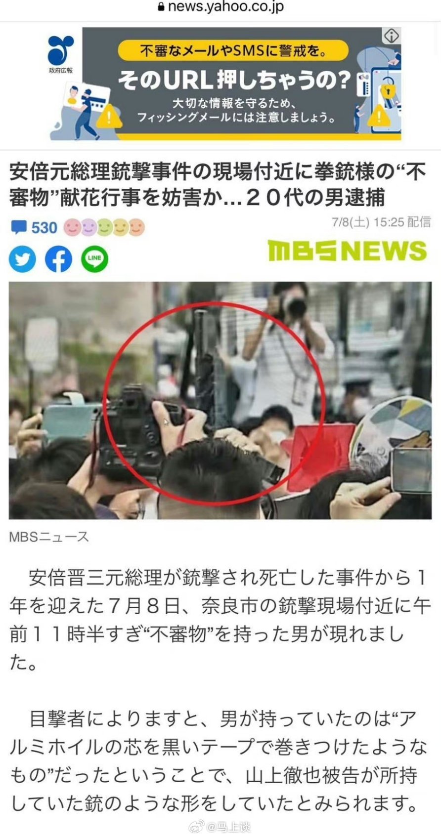 安倍被枪杀一周年仪式上,一男子手持酷似山上彻也所使用的枪械出现,引发现场人群骚乱…别说,完全一模一样……[笑cry][笑cry][笑cry]