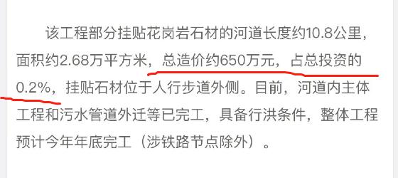 #郑州通报河道贴砖事件# 金水河综合整治工程总造价34.02亿元,河道挂贴花岗岩造价约650万元,占总工程投资0.2%,主要作用是为抵挡百年一遇洪水流速的冲刷。