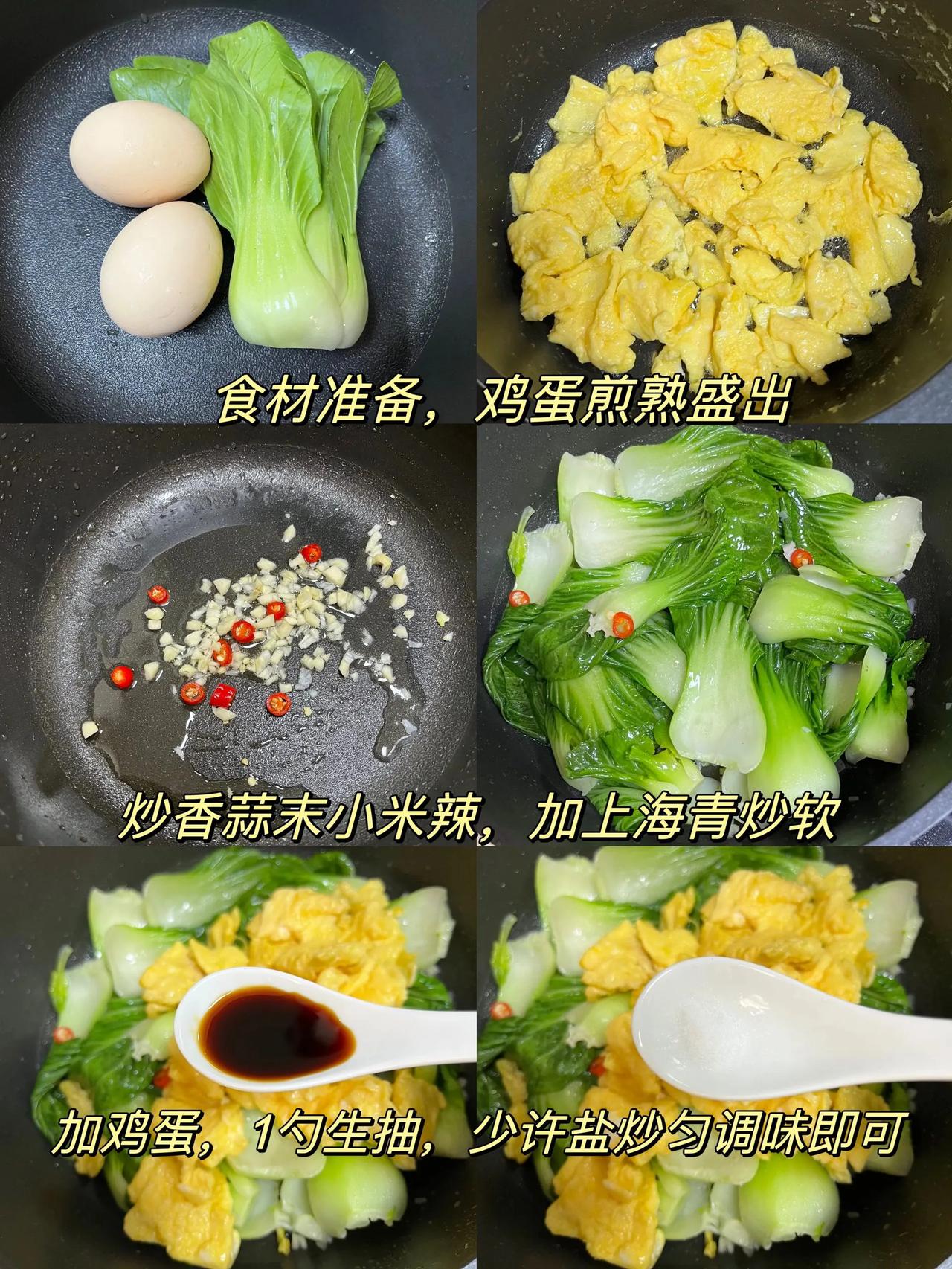 在邻居家吃过一次,唯一的缺点就是太废米饭! 做法: 1、鸡蛋煎熟盛出备用; 2、炒香蒜末、小米辣,加上海青炒软,加鸡蛋、勺生抽、少许盐炒匀调味即可。